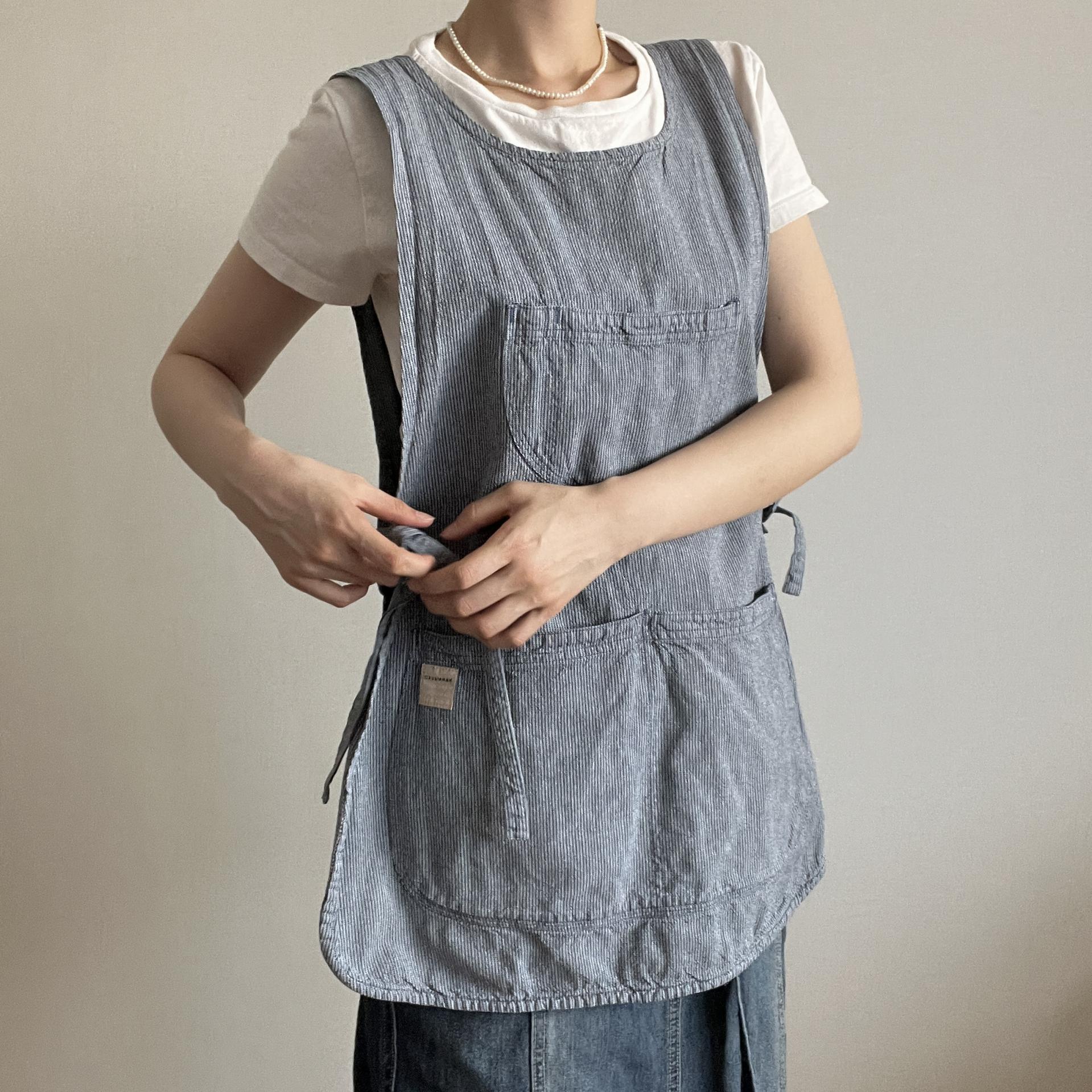주머니가 많아 실용성이 좋은 상품입니다. 양쪽 끈으론 리본으로 묶어 착용할 수 있으며