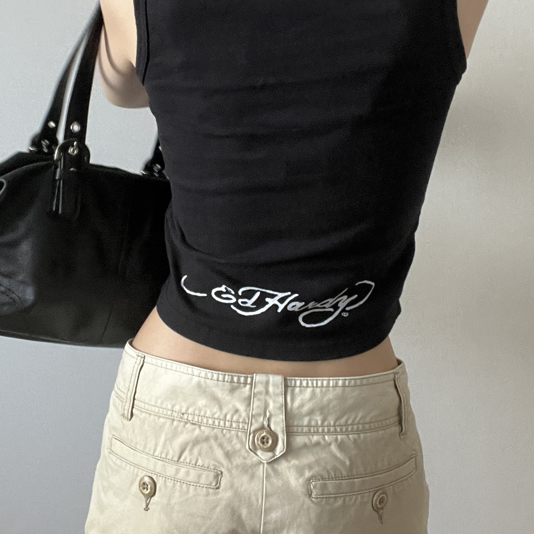 에드 하디는 미국 타투 아티스트 Don Ed Hardy의 작품에서 영감을 받아 브랜드가 시작되었습니다. 그의 디자인 특징 중 하나는 과감하고 화려한 타투 스타일의 이미지입니다.