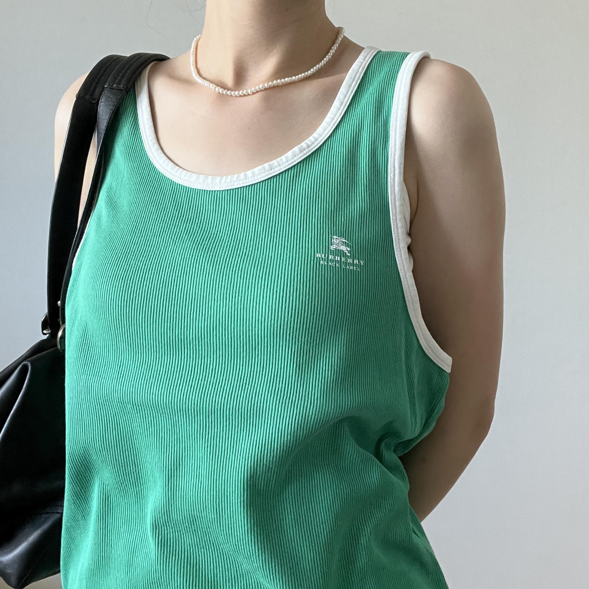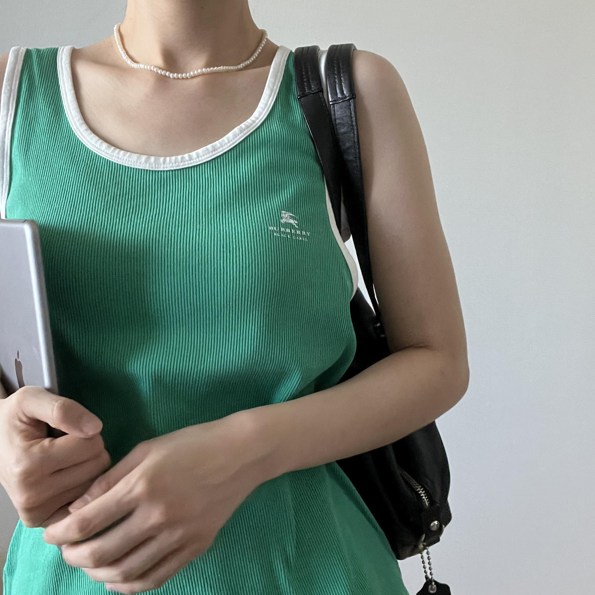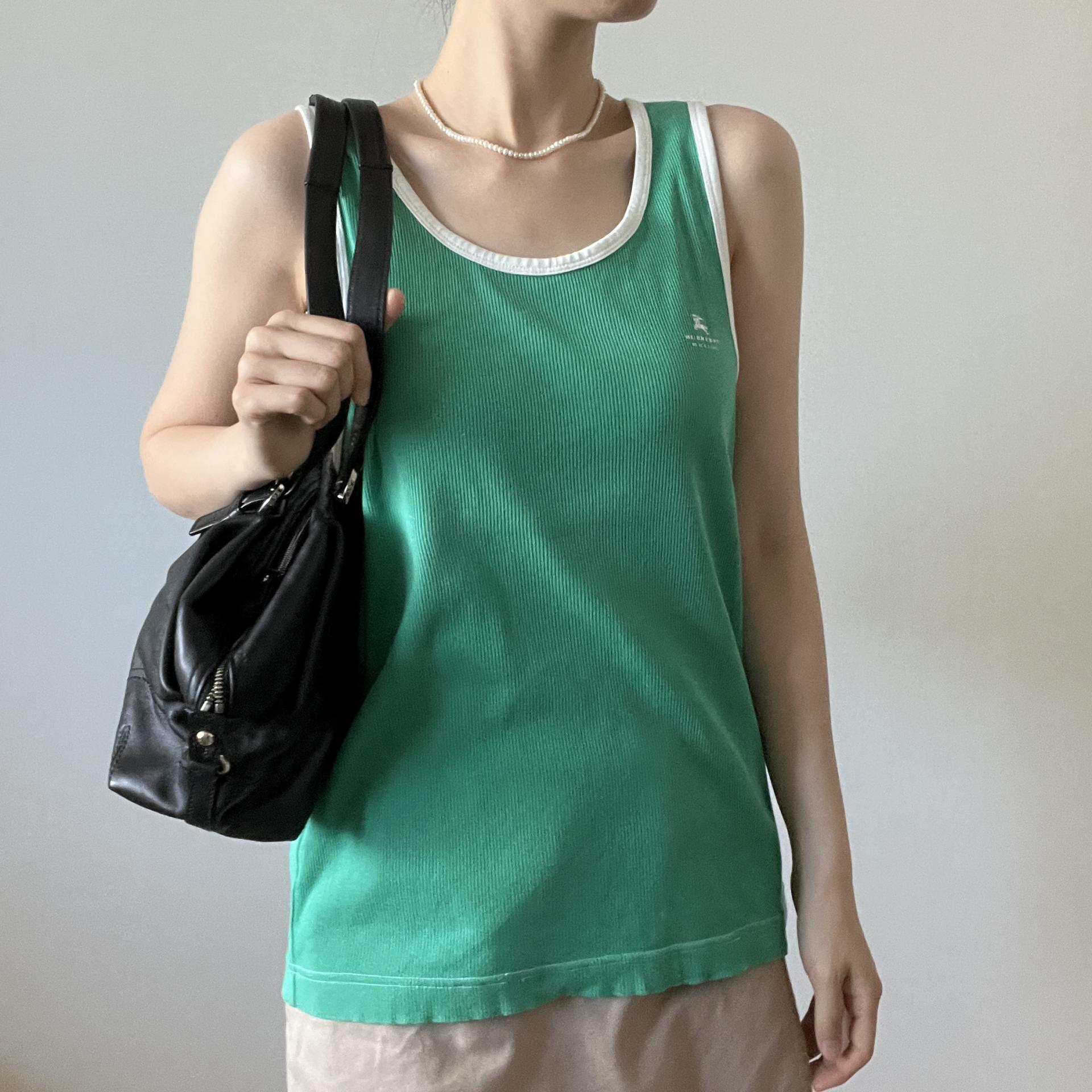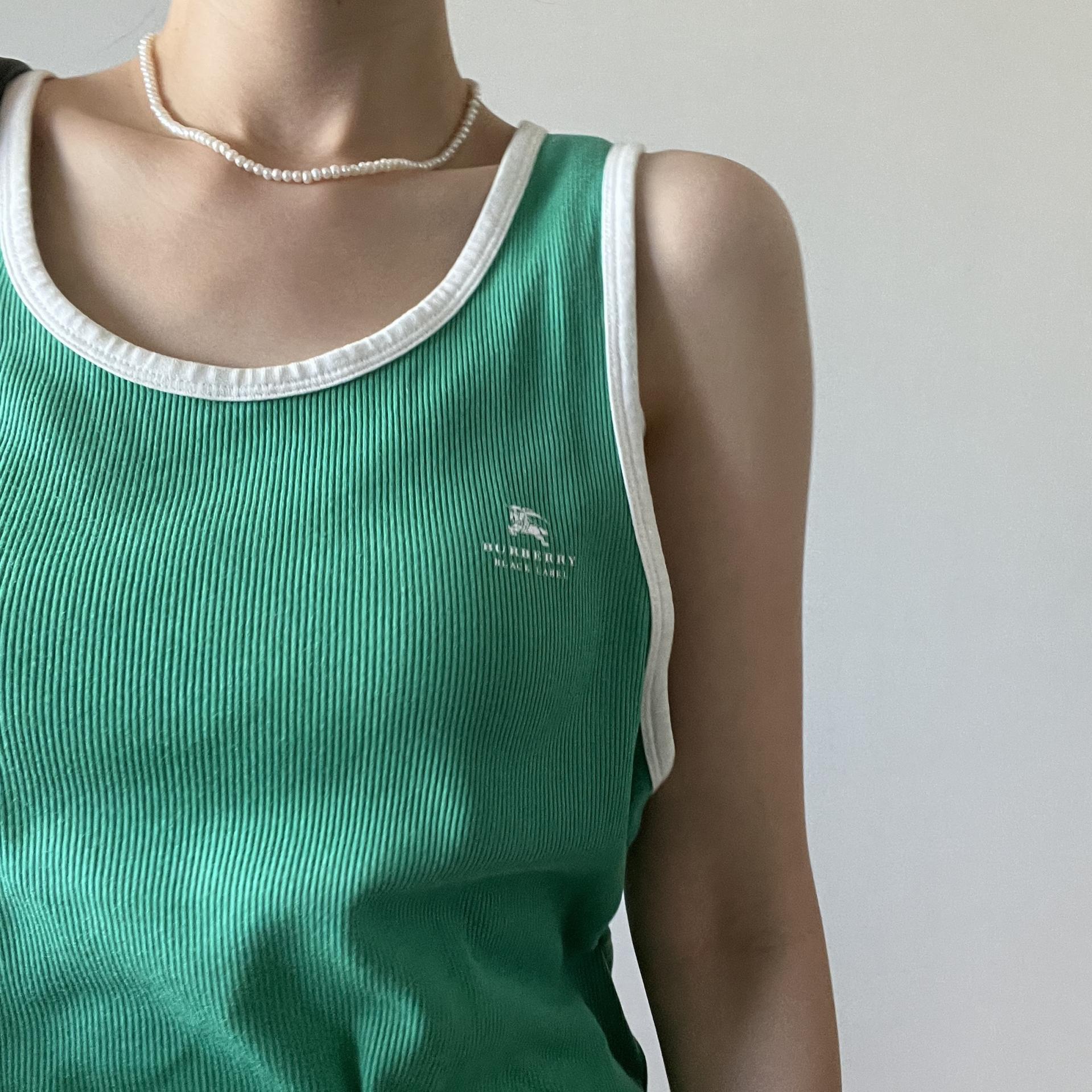버버리 블랙라벨의 그린컬러 슬리브리스 제품입니다.
