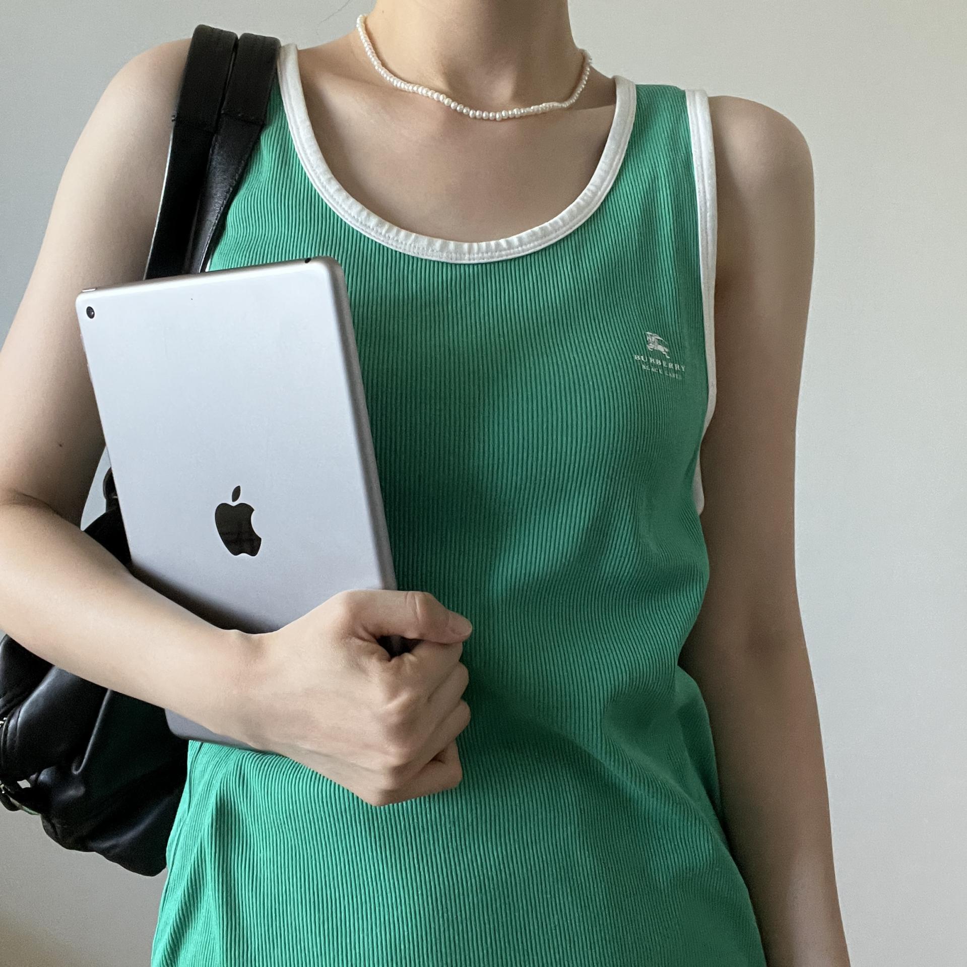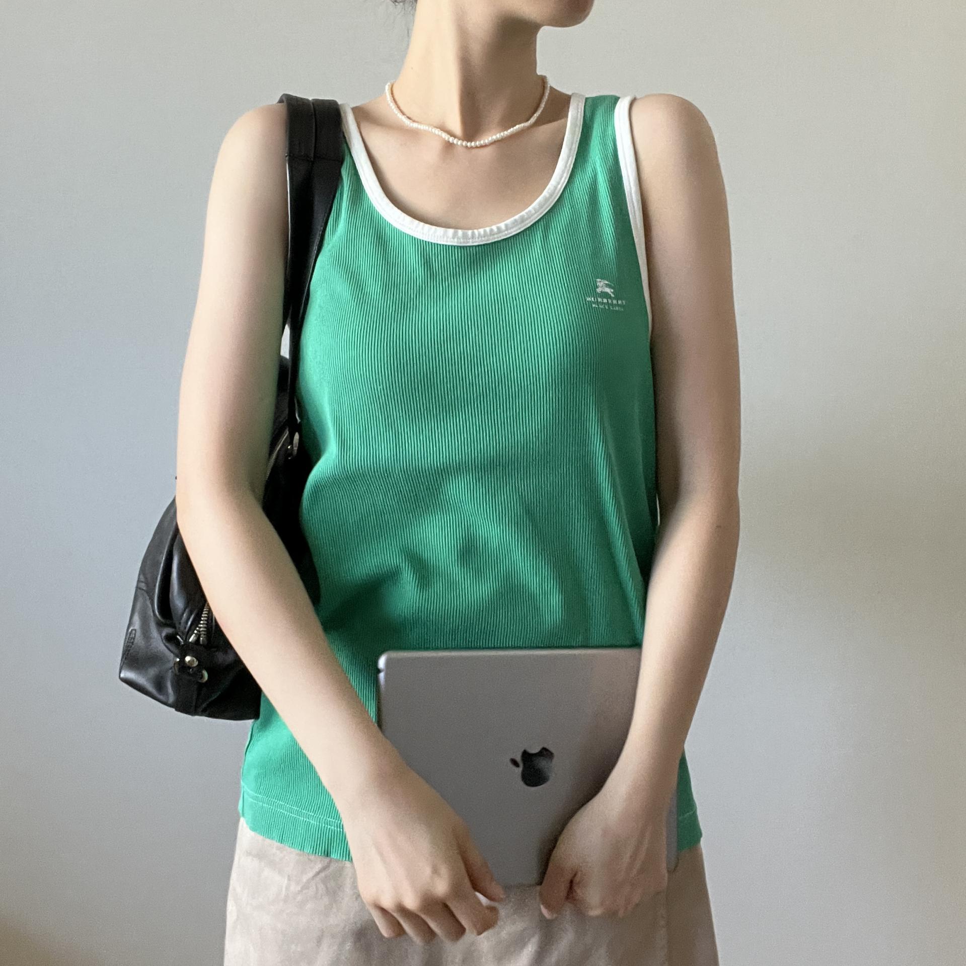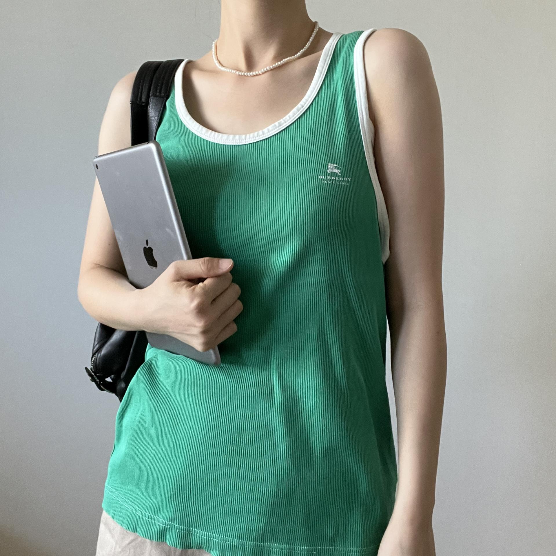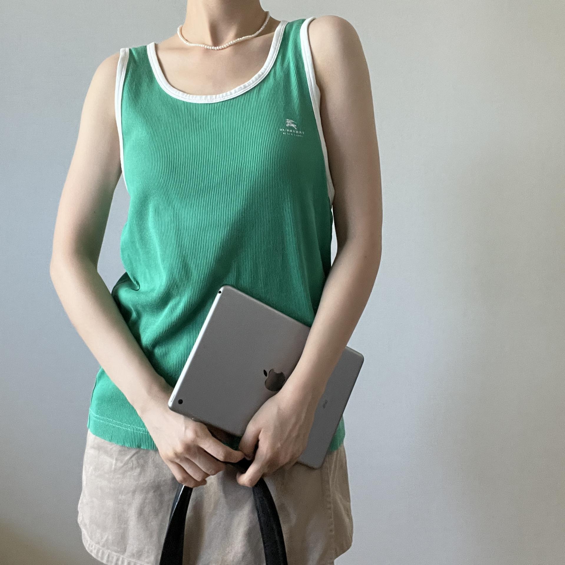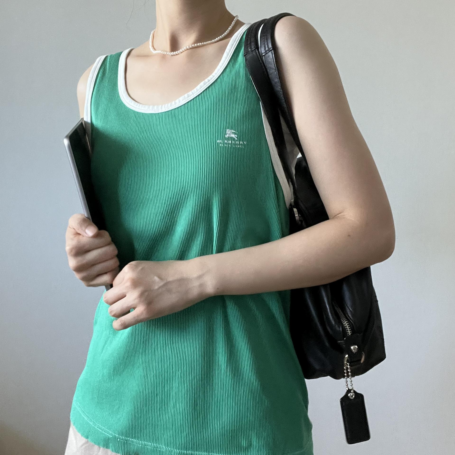 버버리 블랙라벨의 그린컬러 슬리브리스 제품입니다.