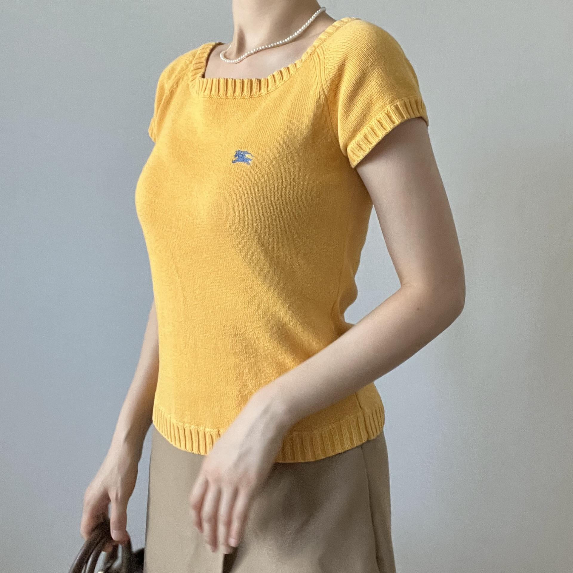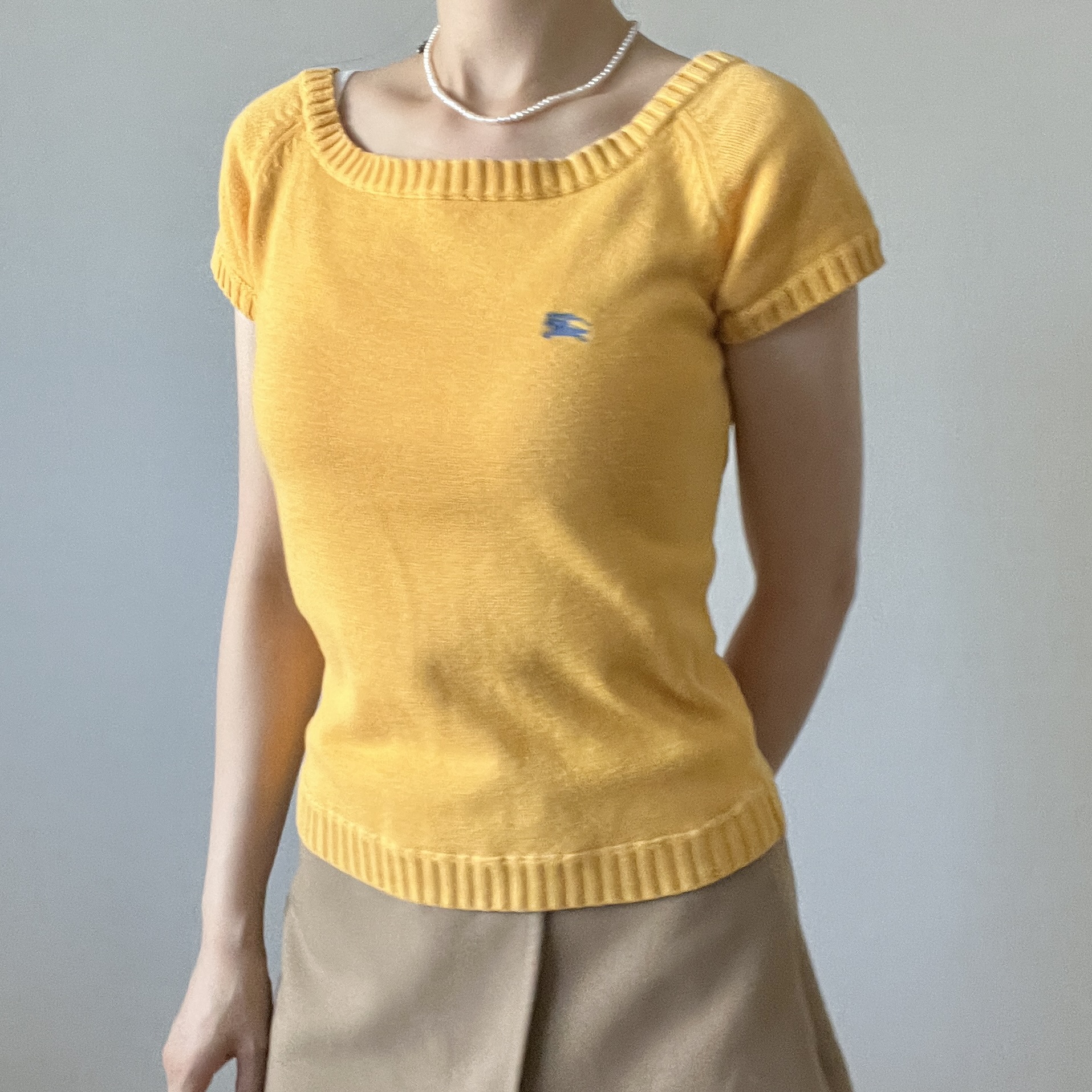 버버리 블루라벨의 옐로우 반팔 니트 상품입니다.