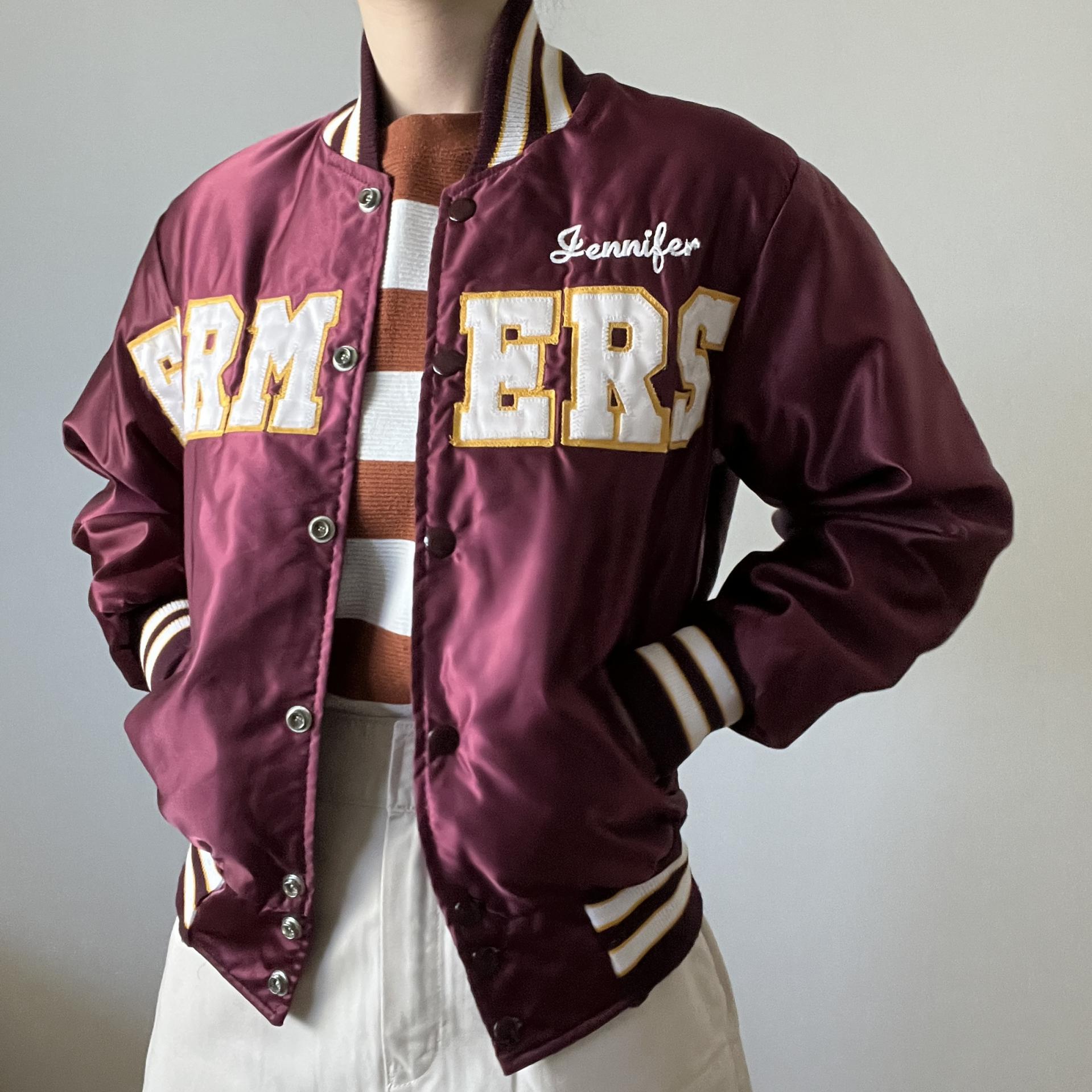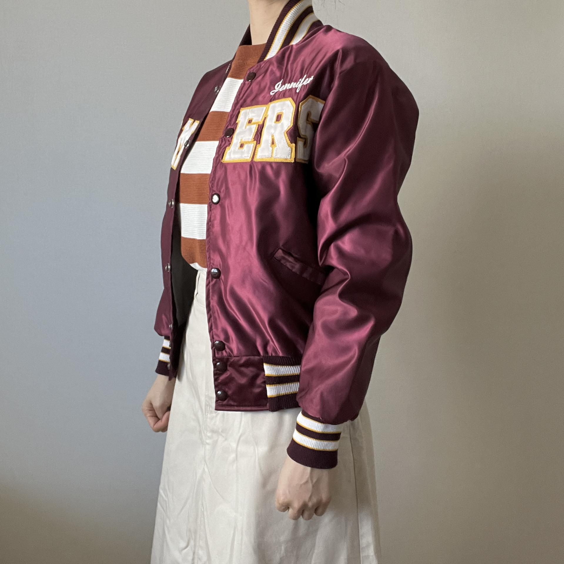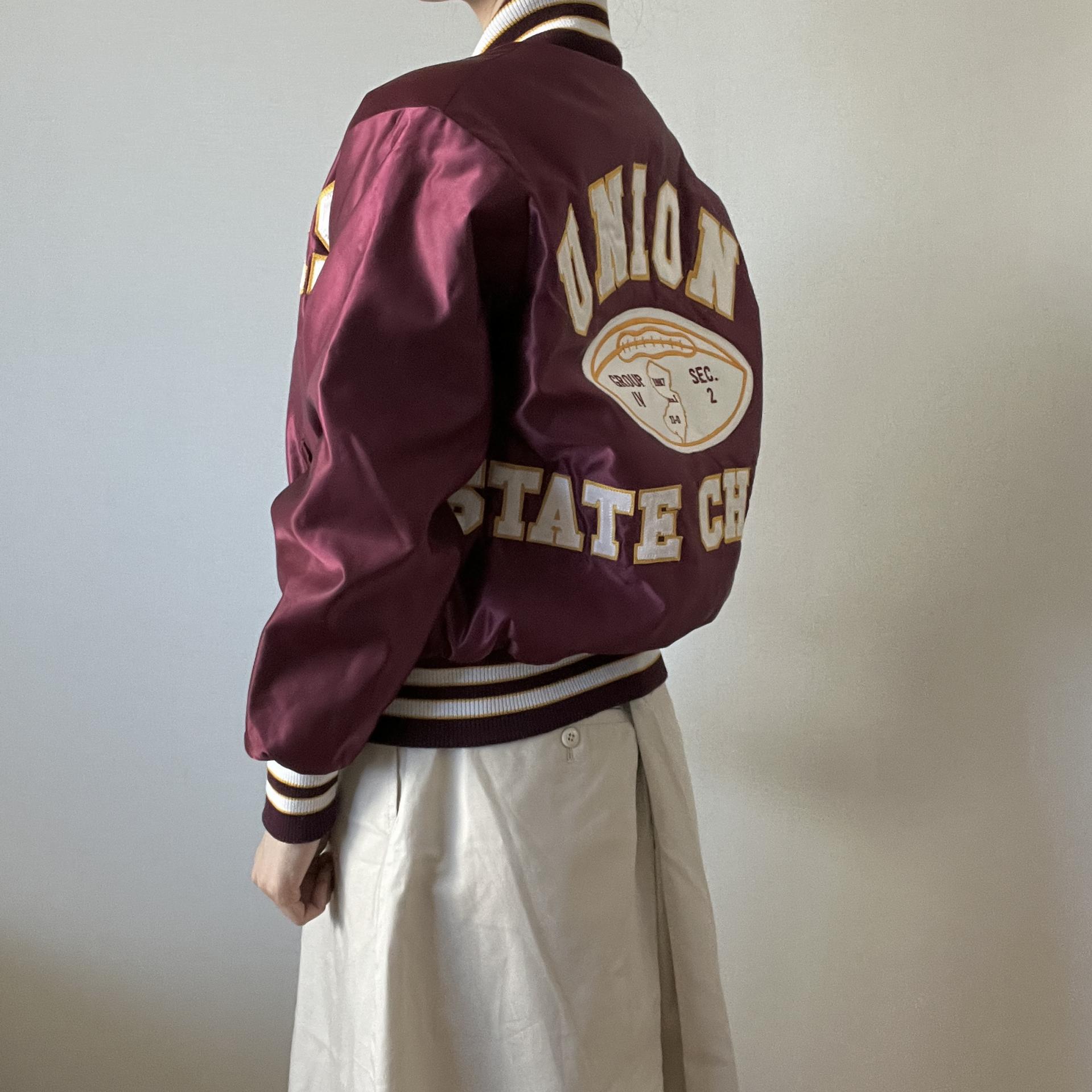 드롱의 버건디컬러의 바시티 자켓상품입니다.