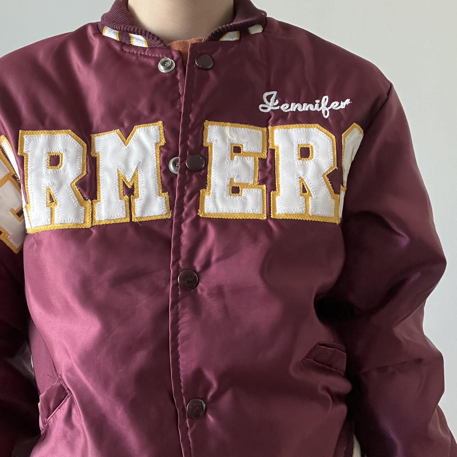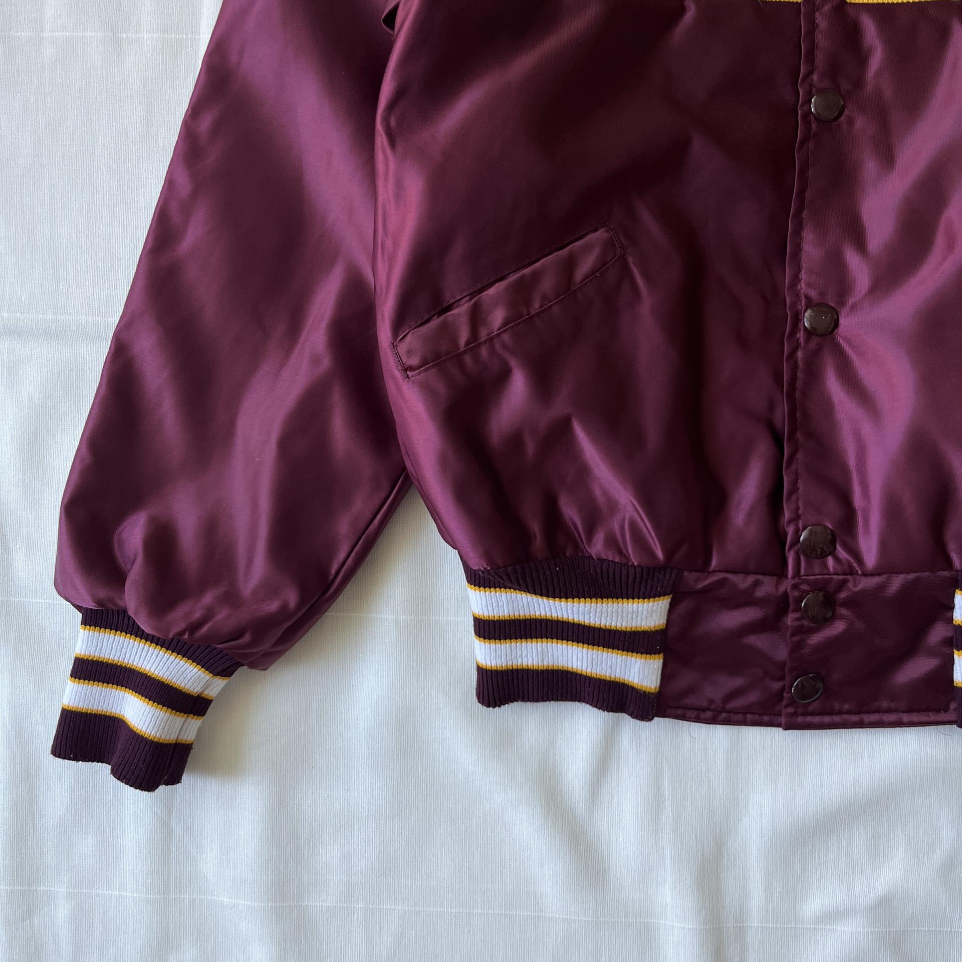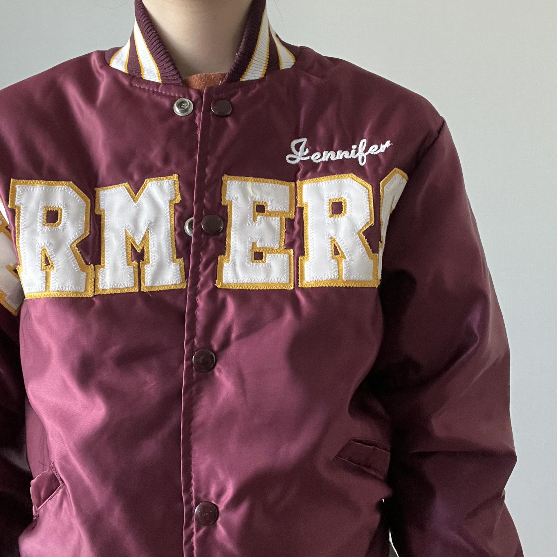 드롱의 버건디컬러의 바시티 자켓상품입니다.