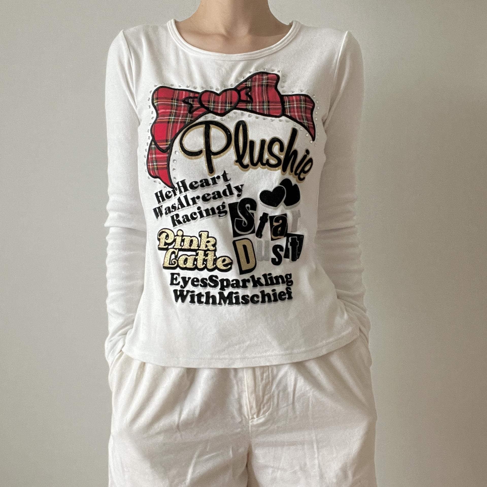PINKLATTE 브랜드의 리본 큐빅 롱 슬리브 제품입니다.