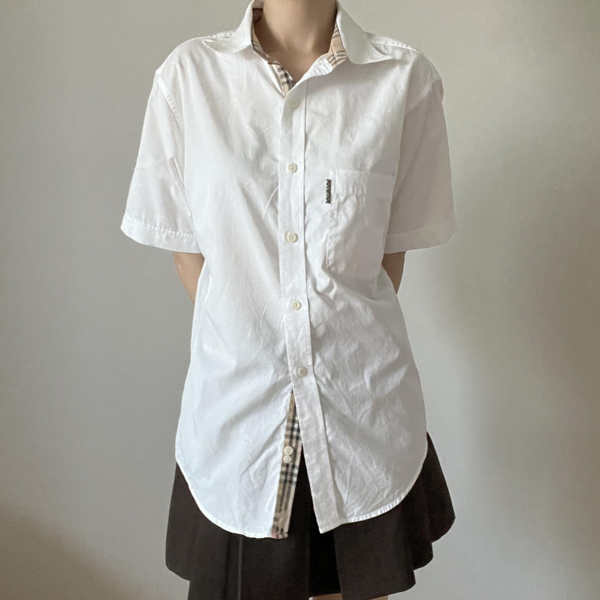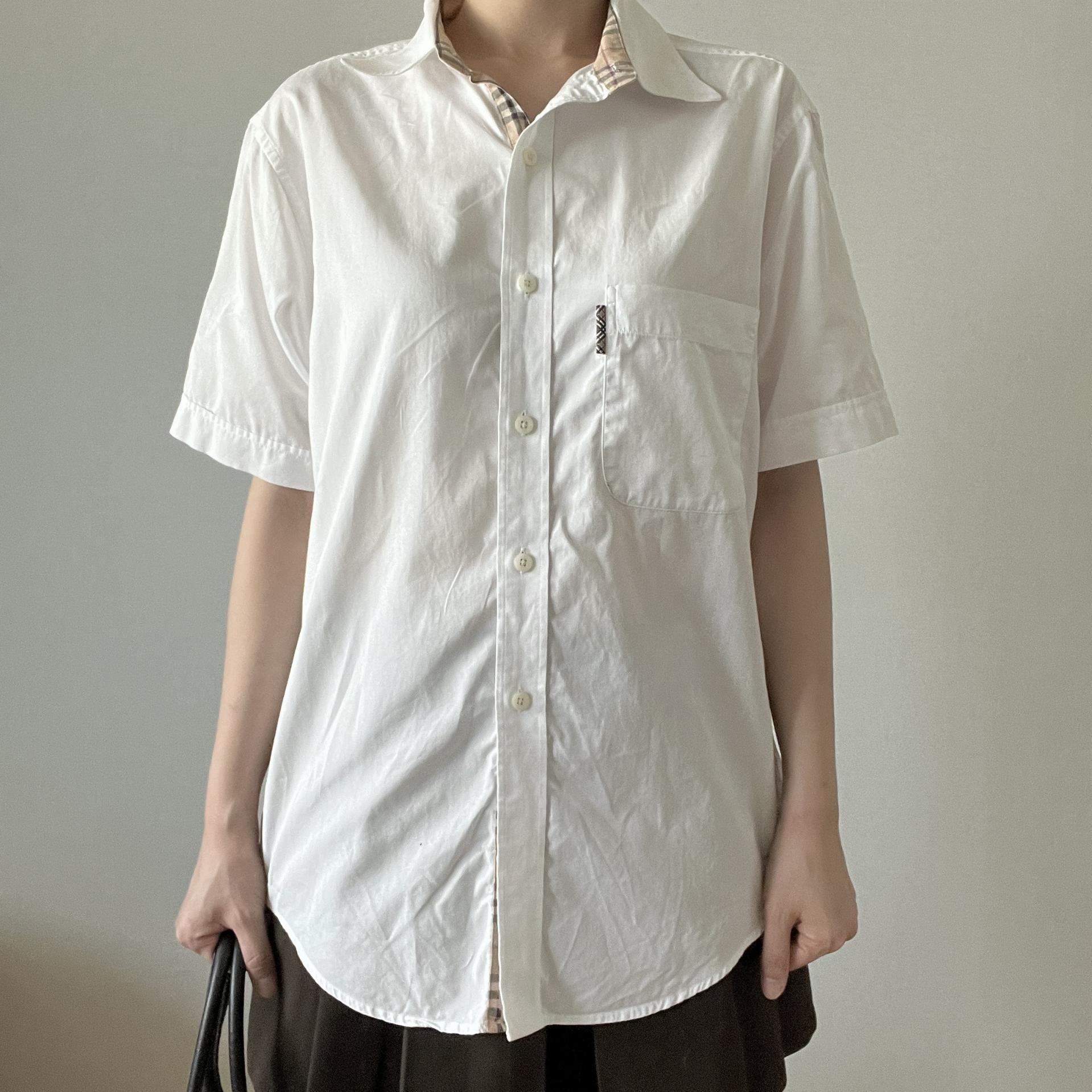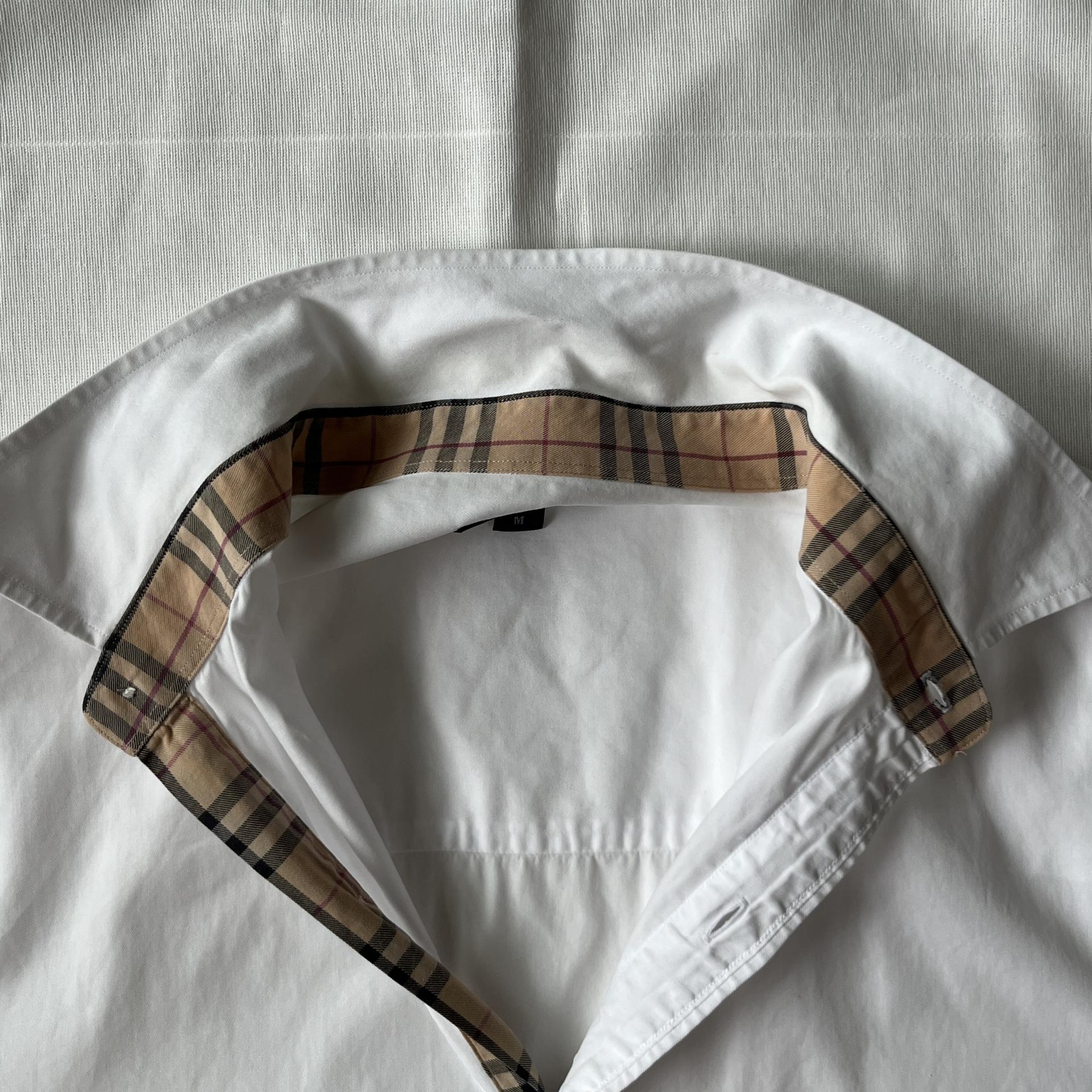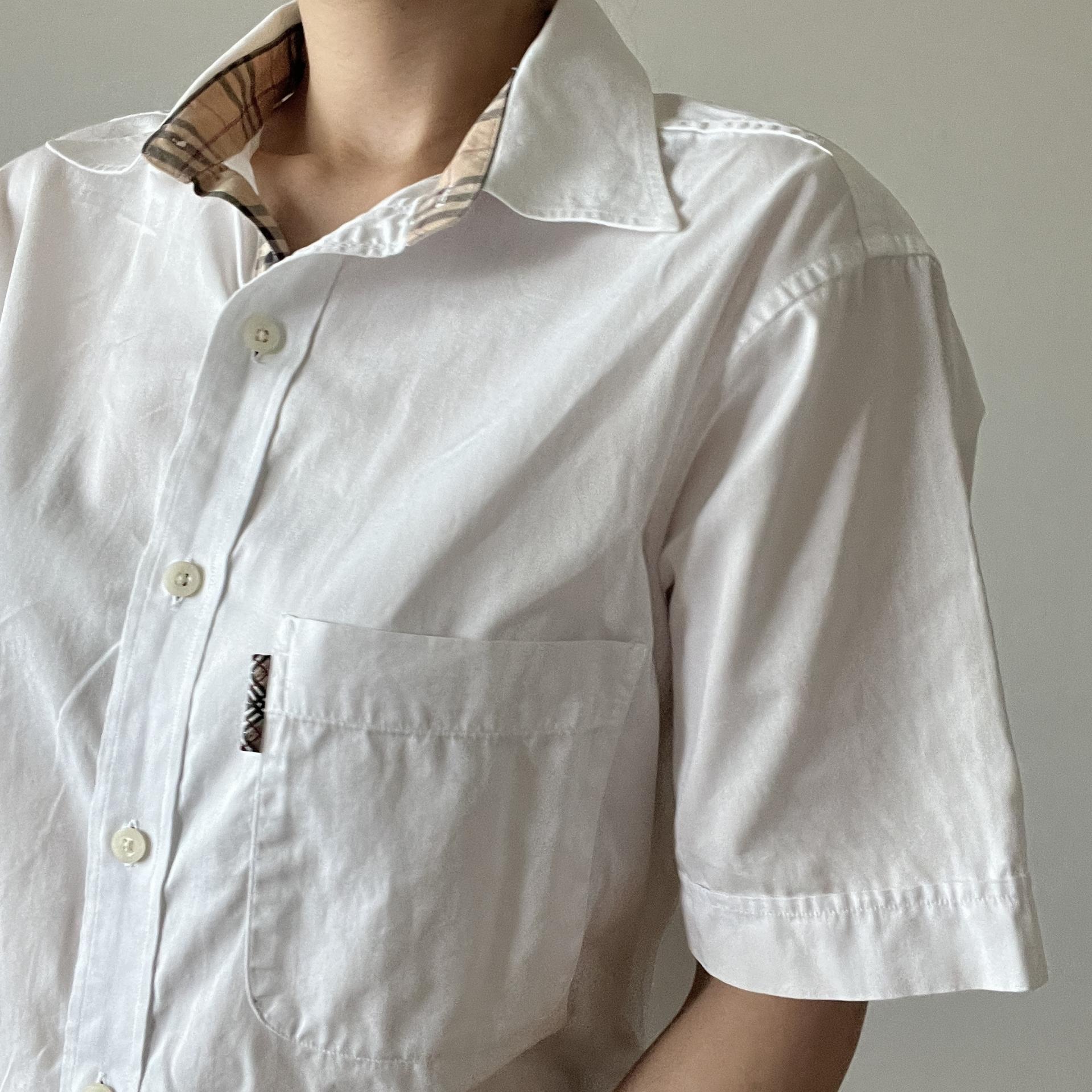 버버리의 체크패턴 포인트가 존재하는 화이트 pk 셔츠 상품입니다.