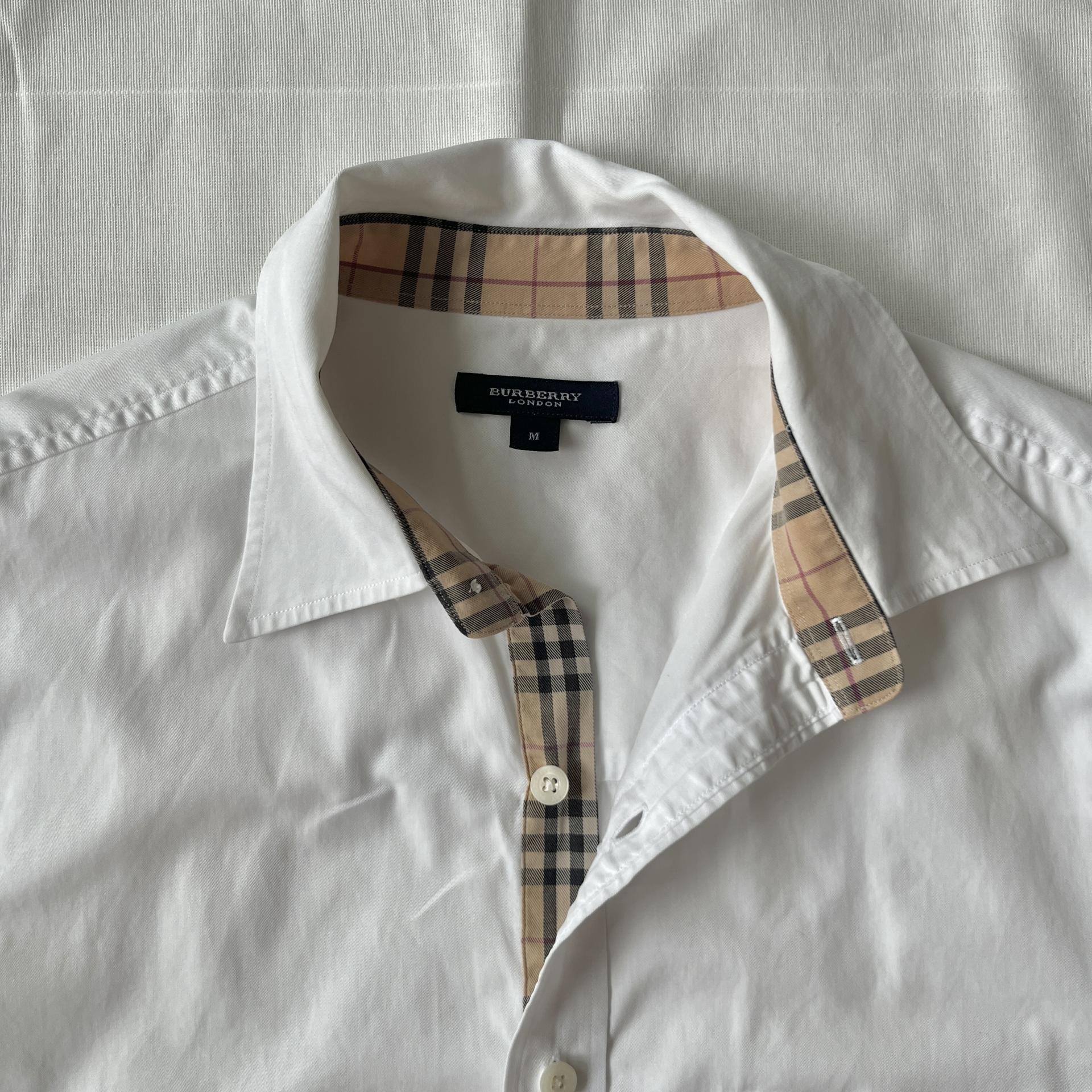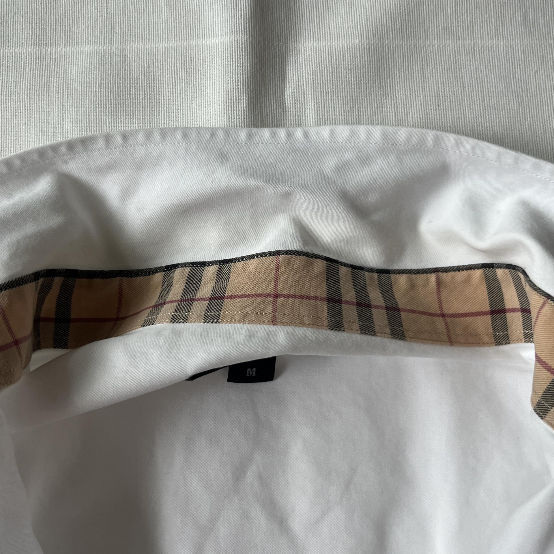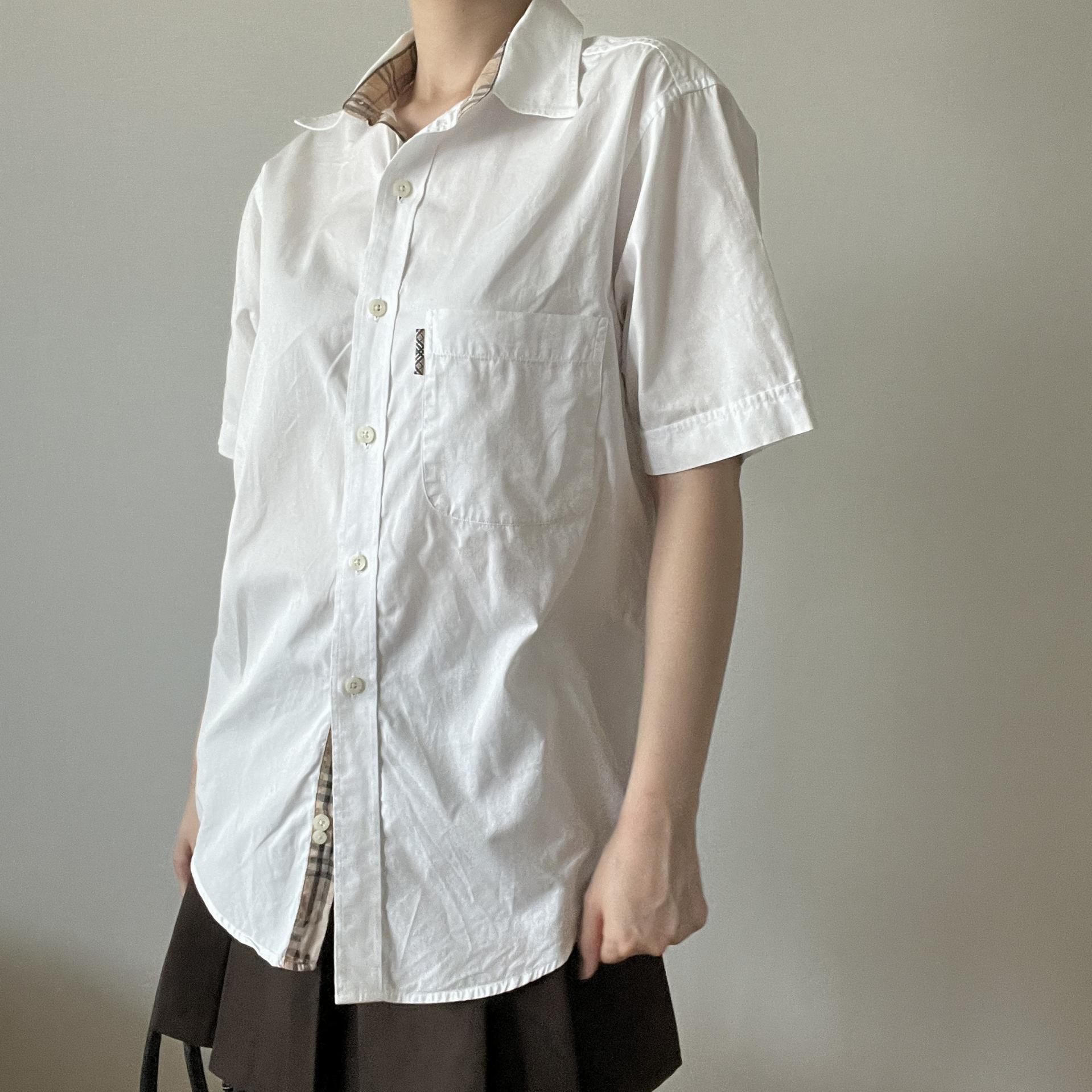 버버리의 체크패턴 포인트가 존재하는 화이트 pk 셔츠 상품입니다.