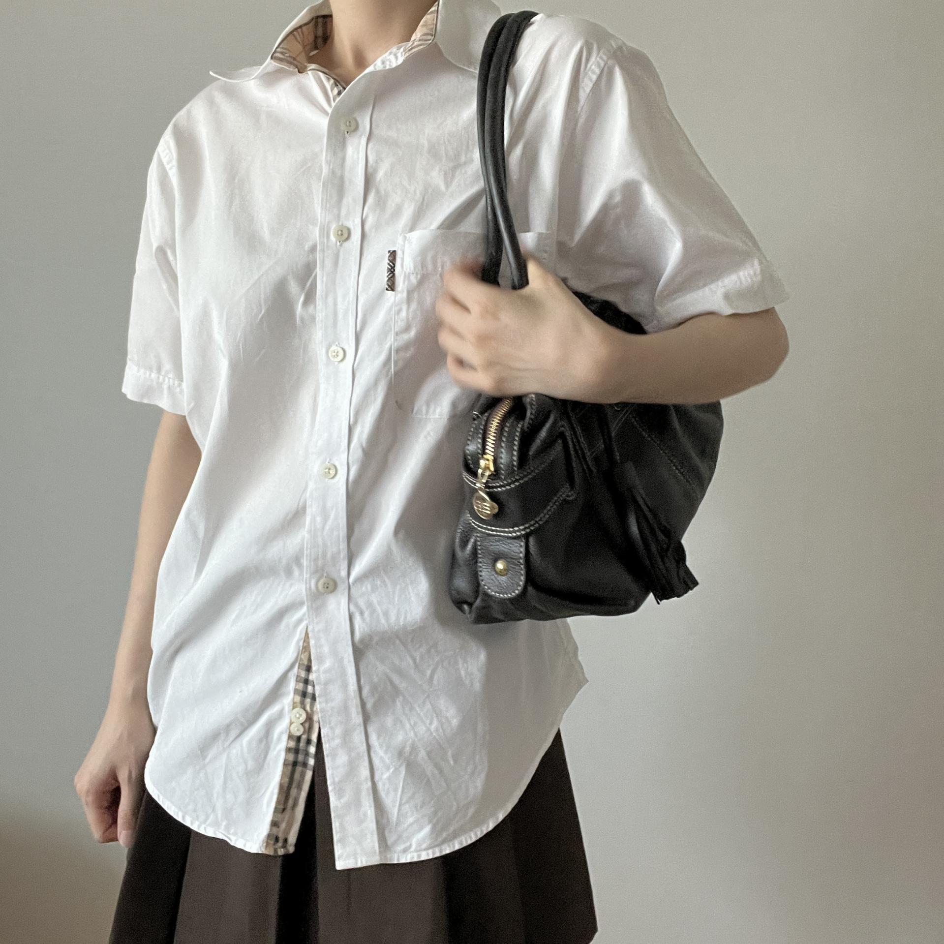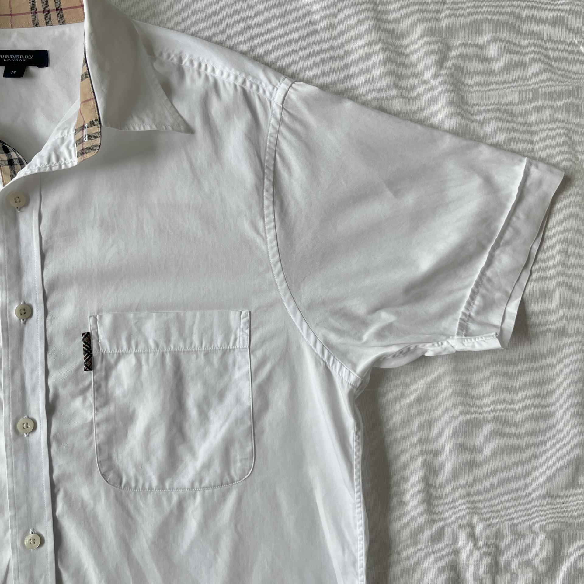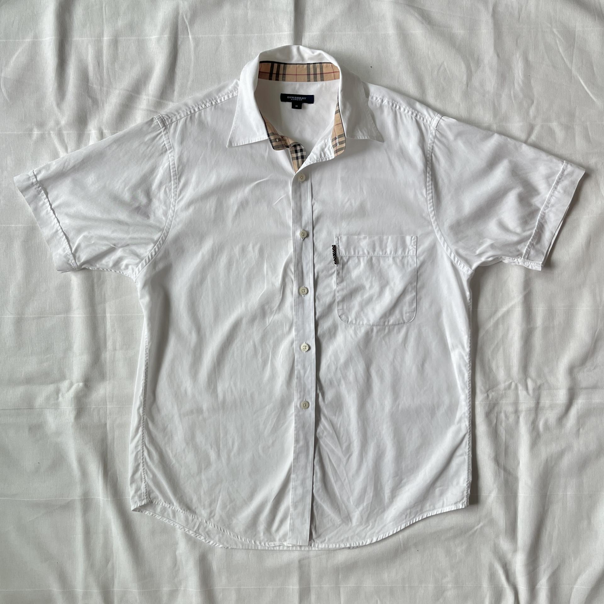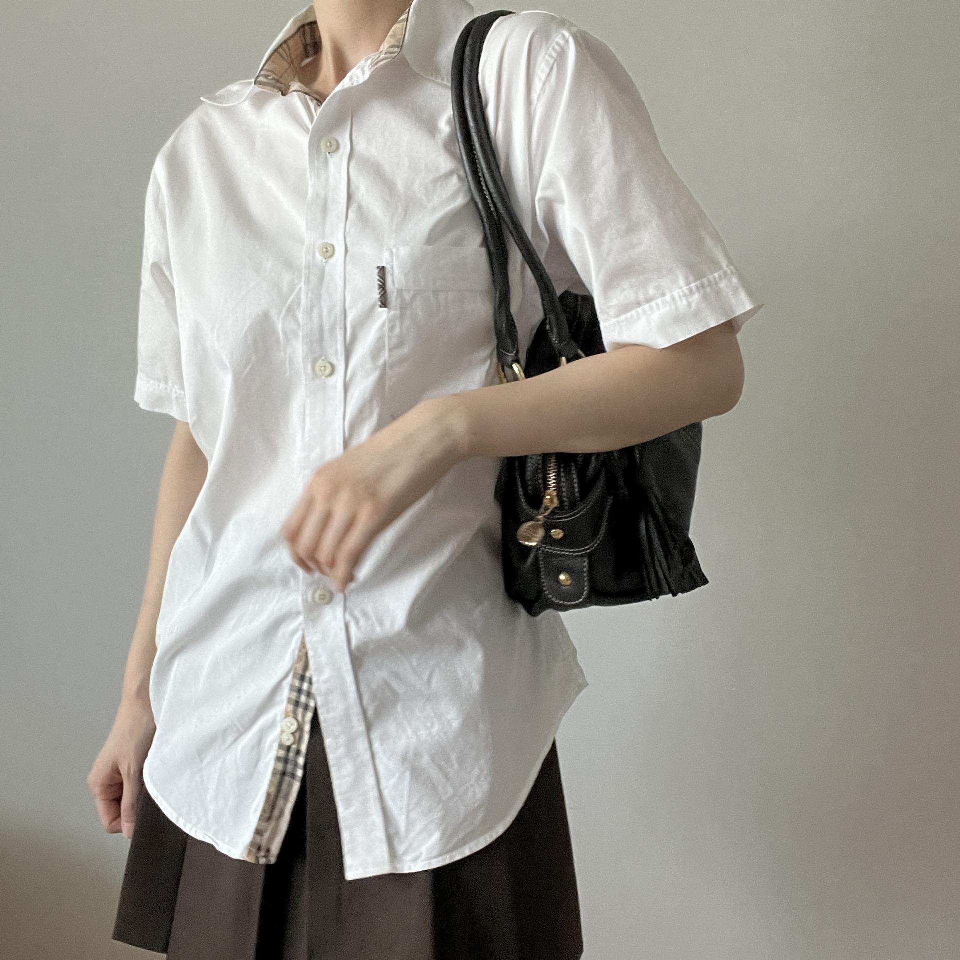 버버리의 체크패턴 포인트가 존재하는 화이트 pk 셔츠 상품입니다.