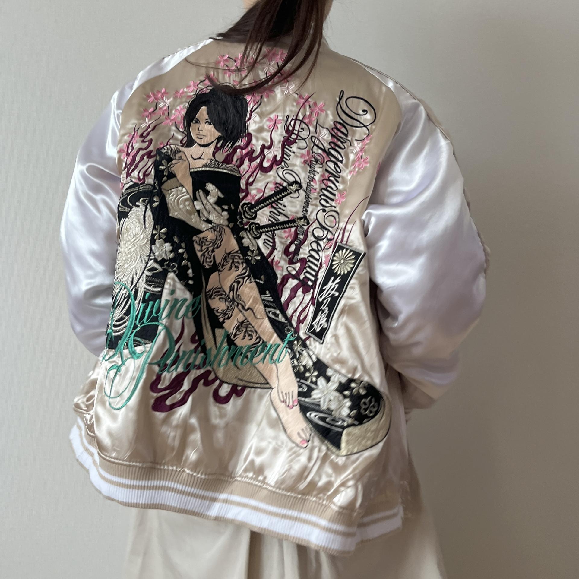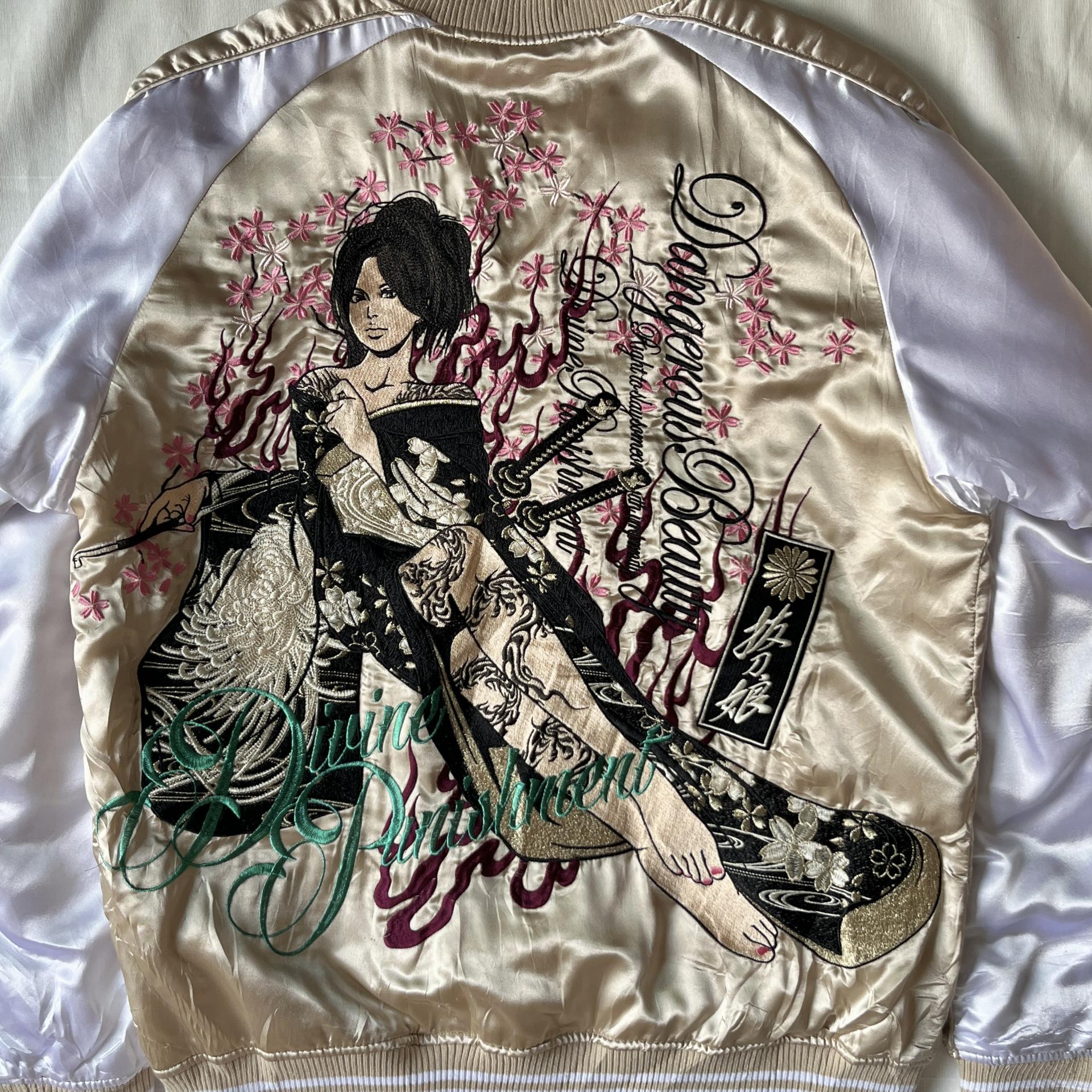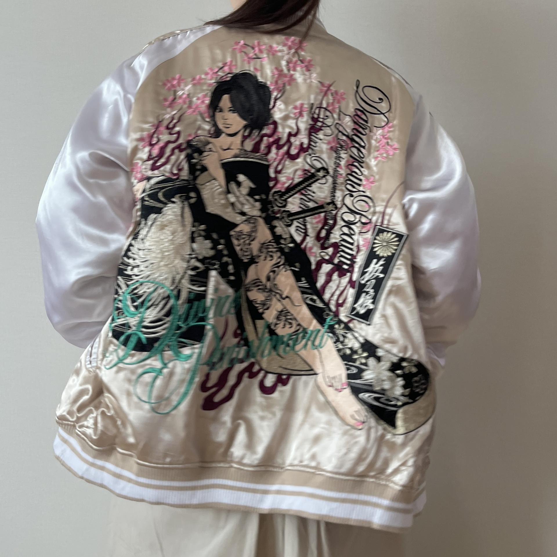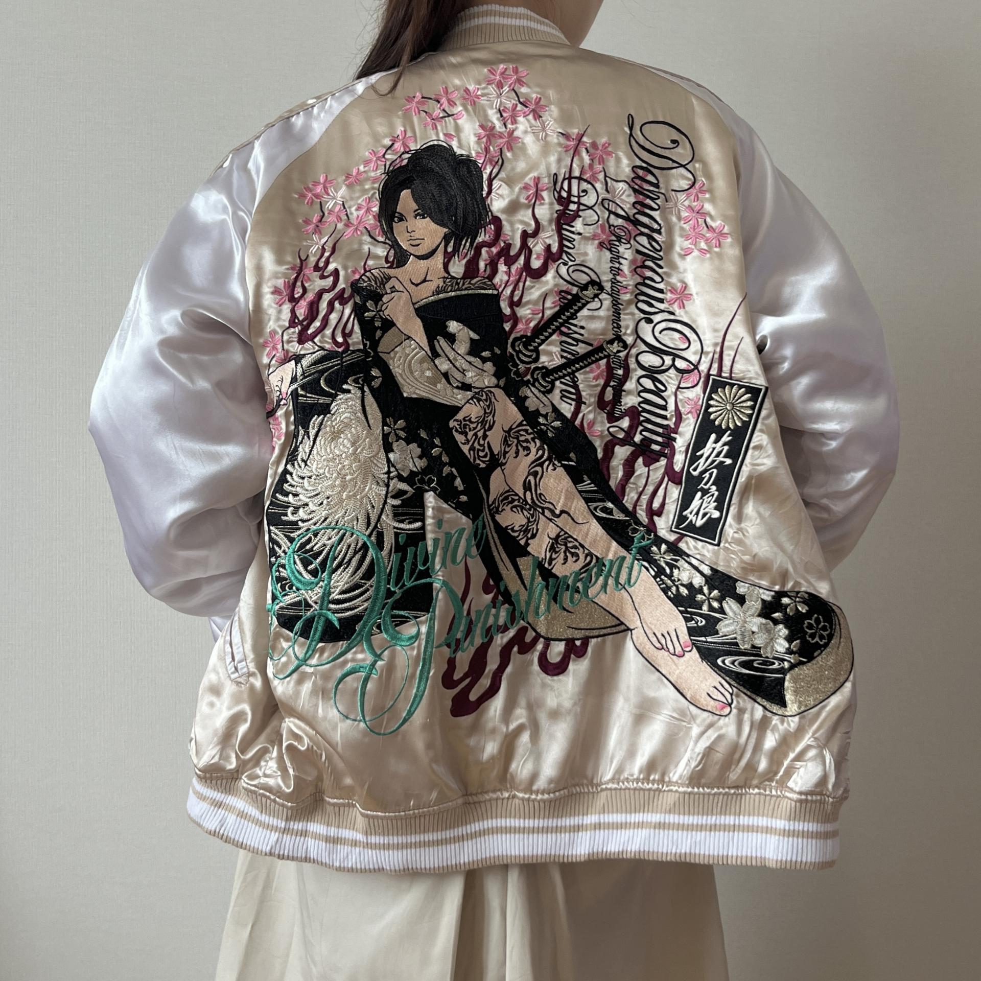후면 바디에 있는 여성 사무라이 자수 디테일이 정교해 희소성이 있는 제품입니다.