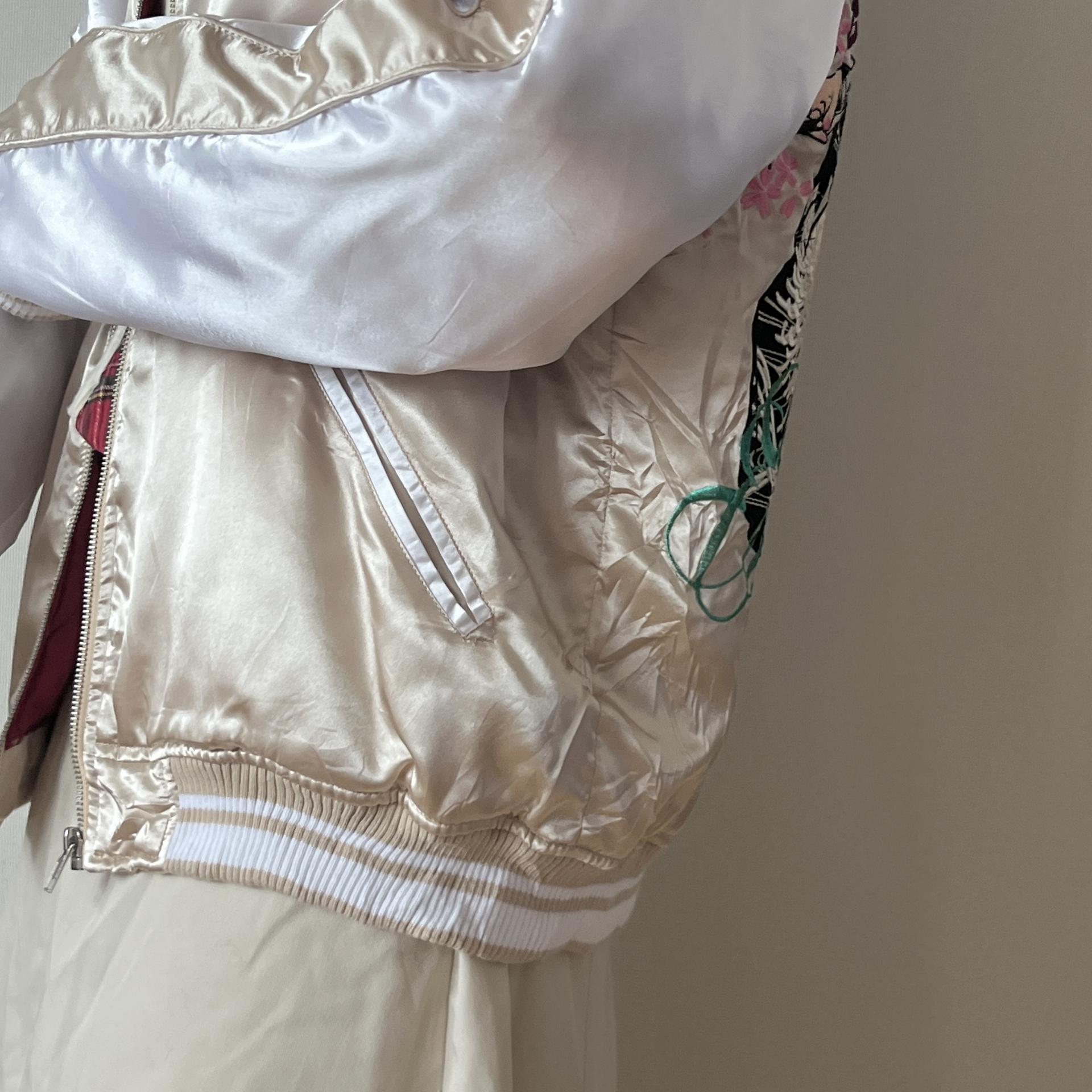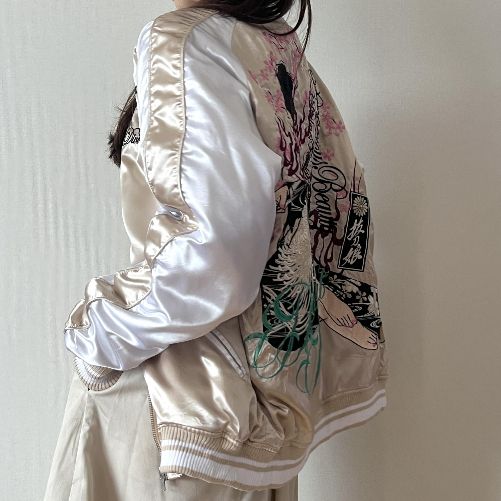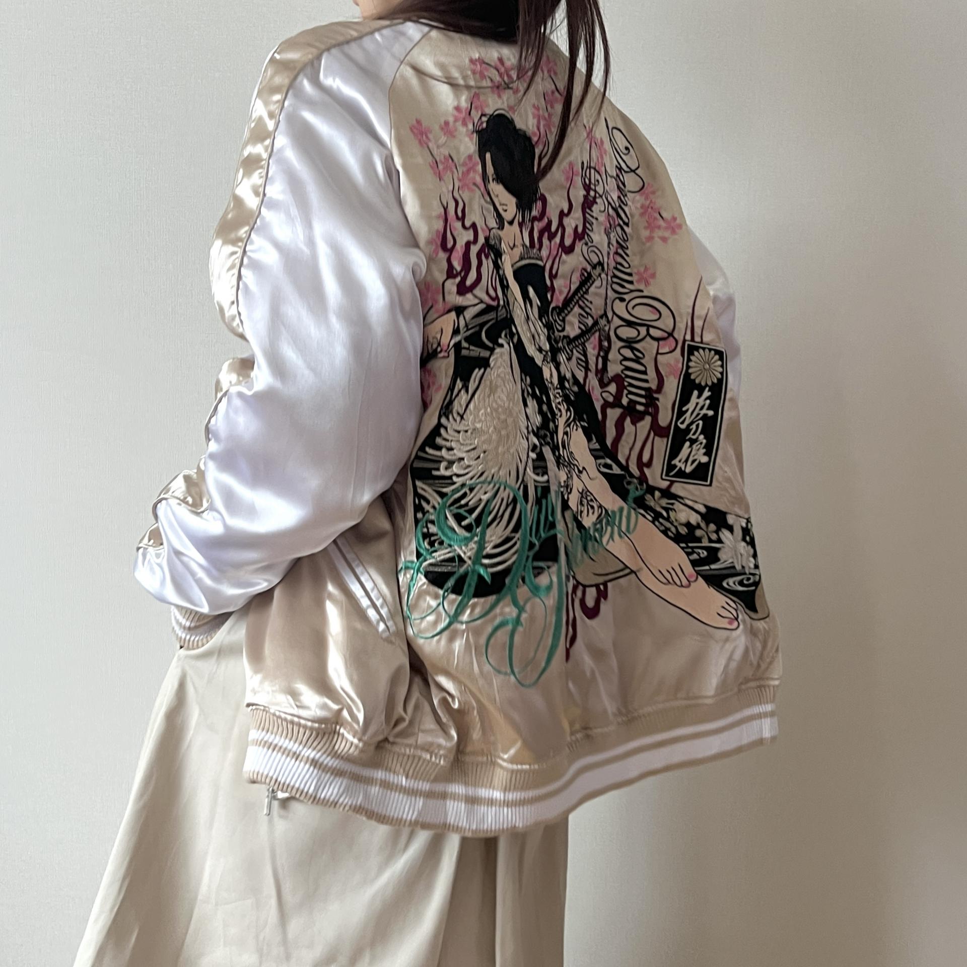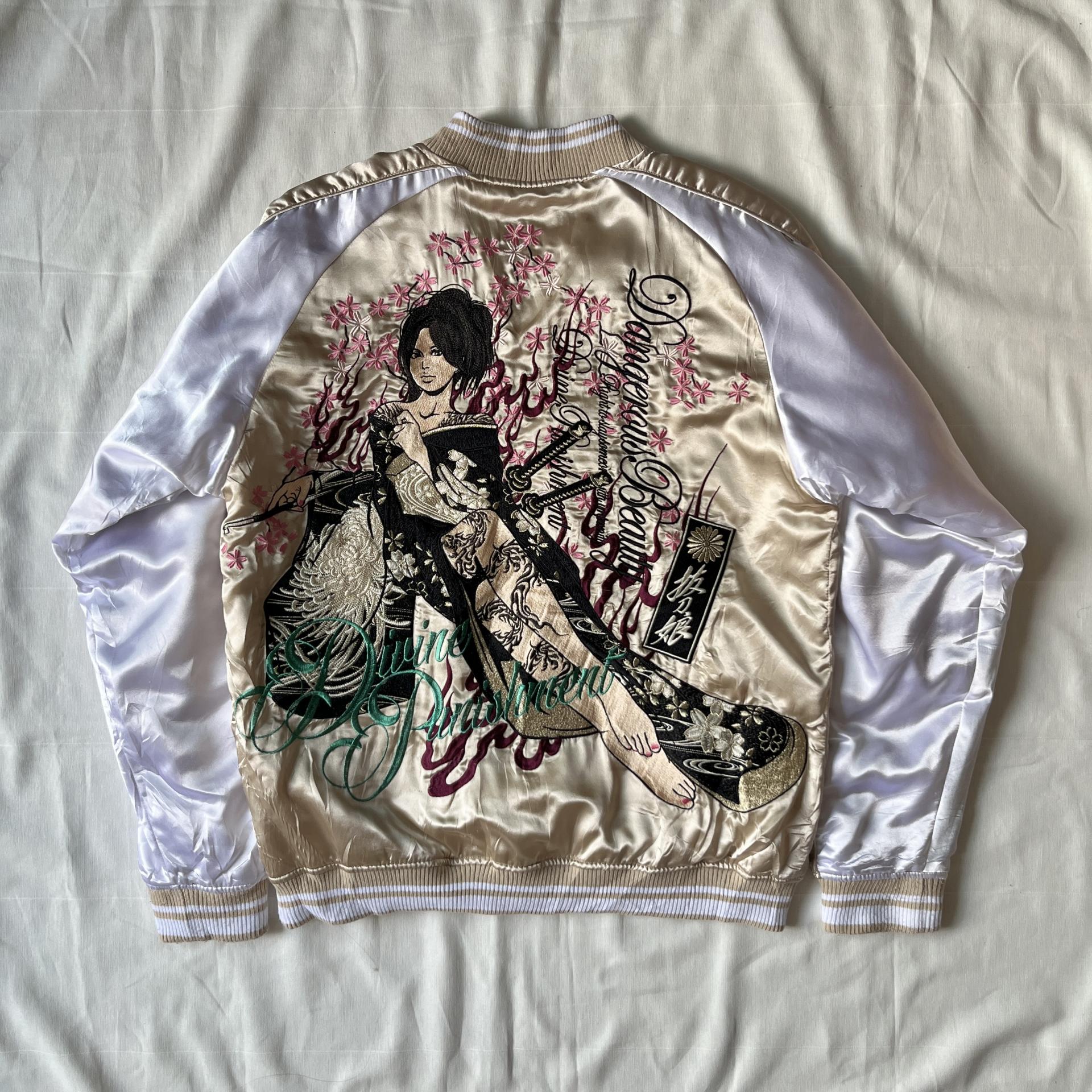 후면 바디에 있는 여성 사무라이 자수 디테일이 정교해 희소성이 있는 제품입니다.