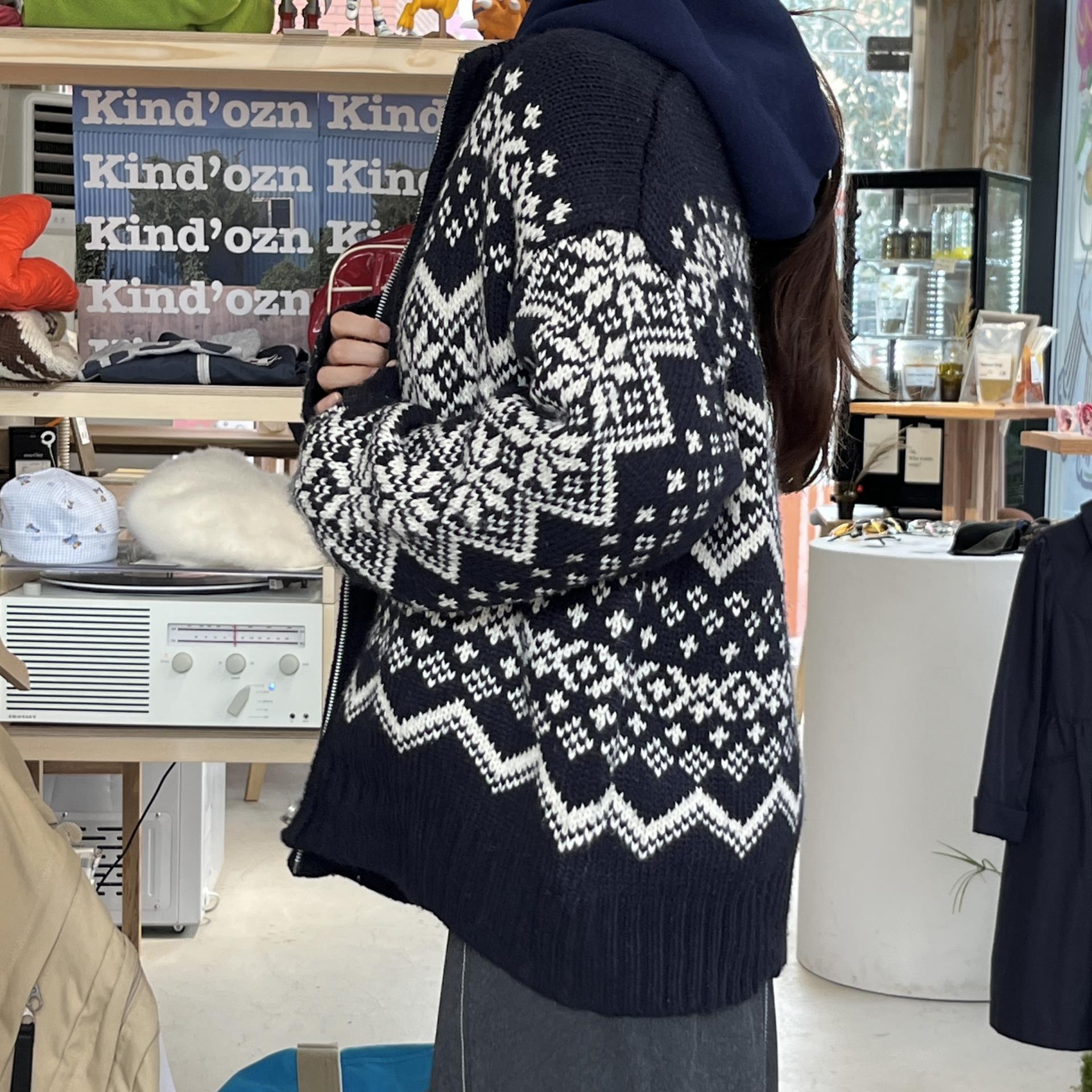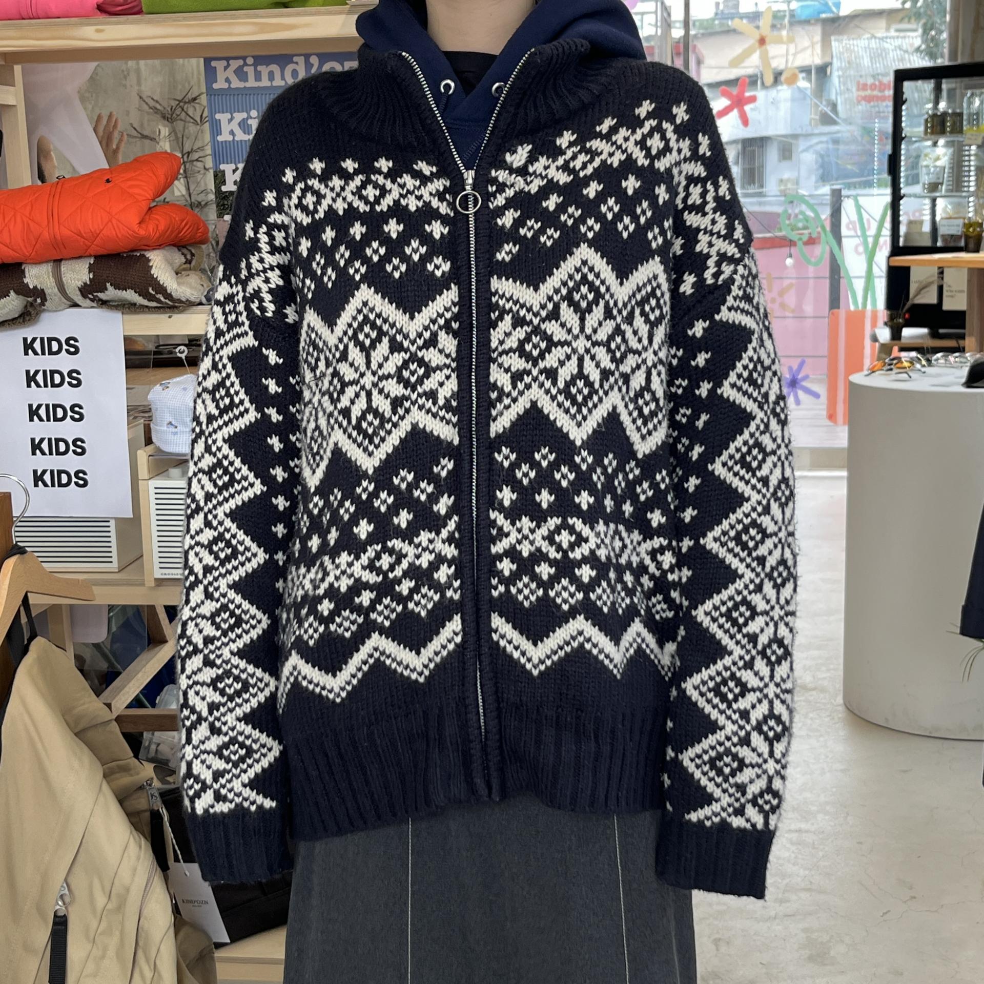 GU의 노르딕패턴이 돋보이는 니트 집업 상품입니다.