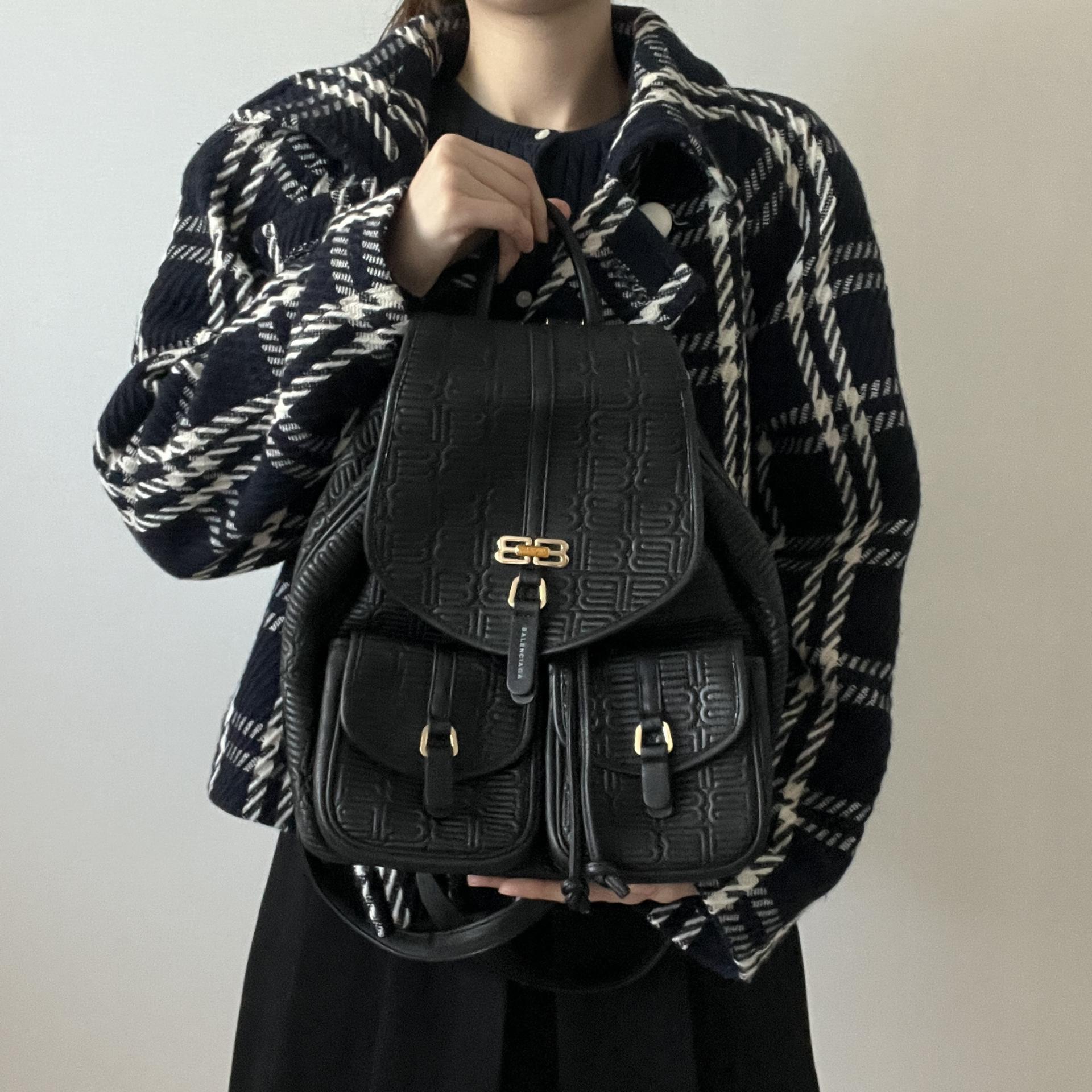 미니 사이즈의 백팩 실루엣이지만 아이패드와 화장품 파우치등 넓고 안락한 수납공간을 자랑합니다.