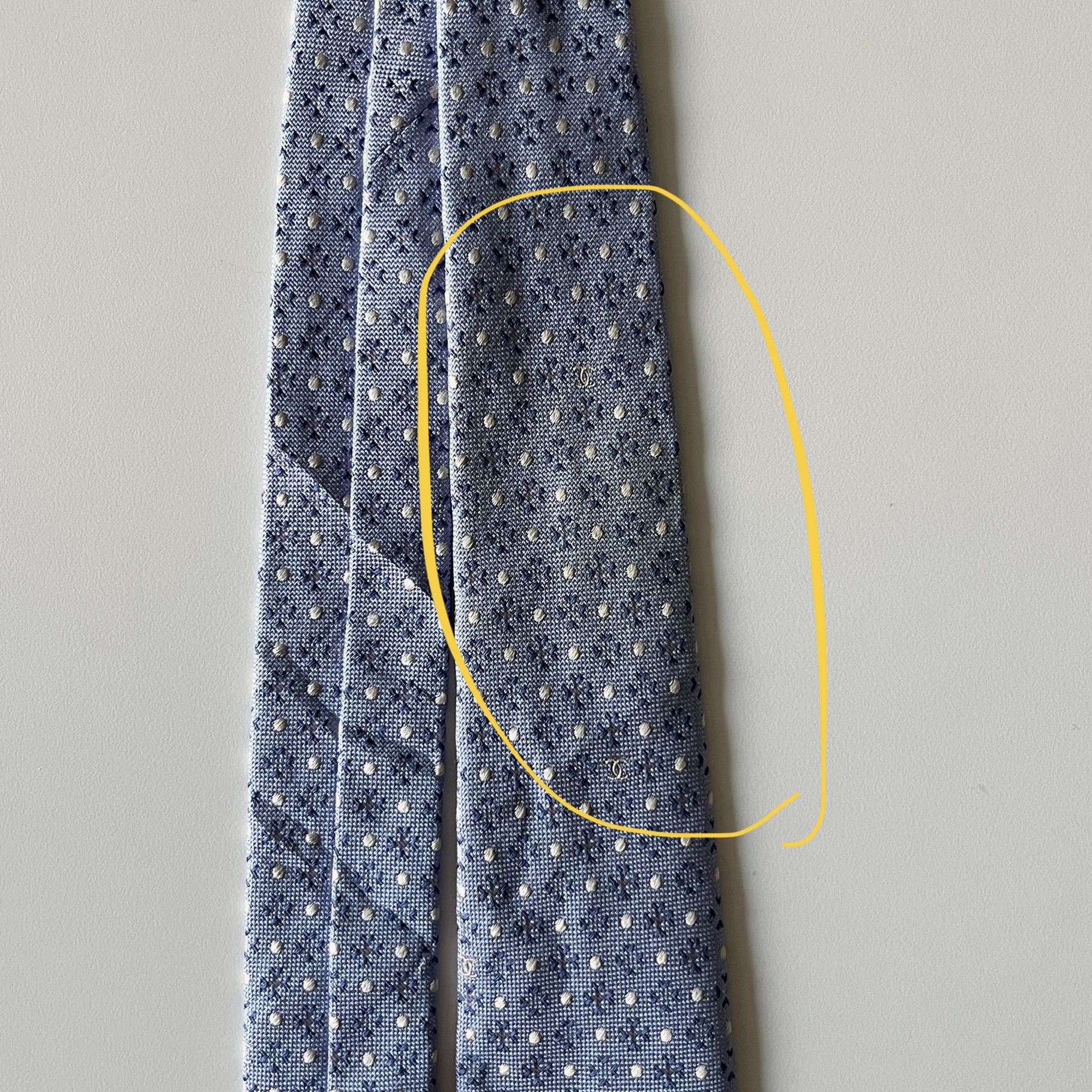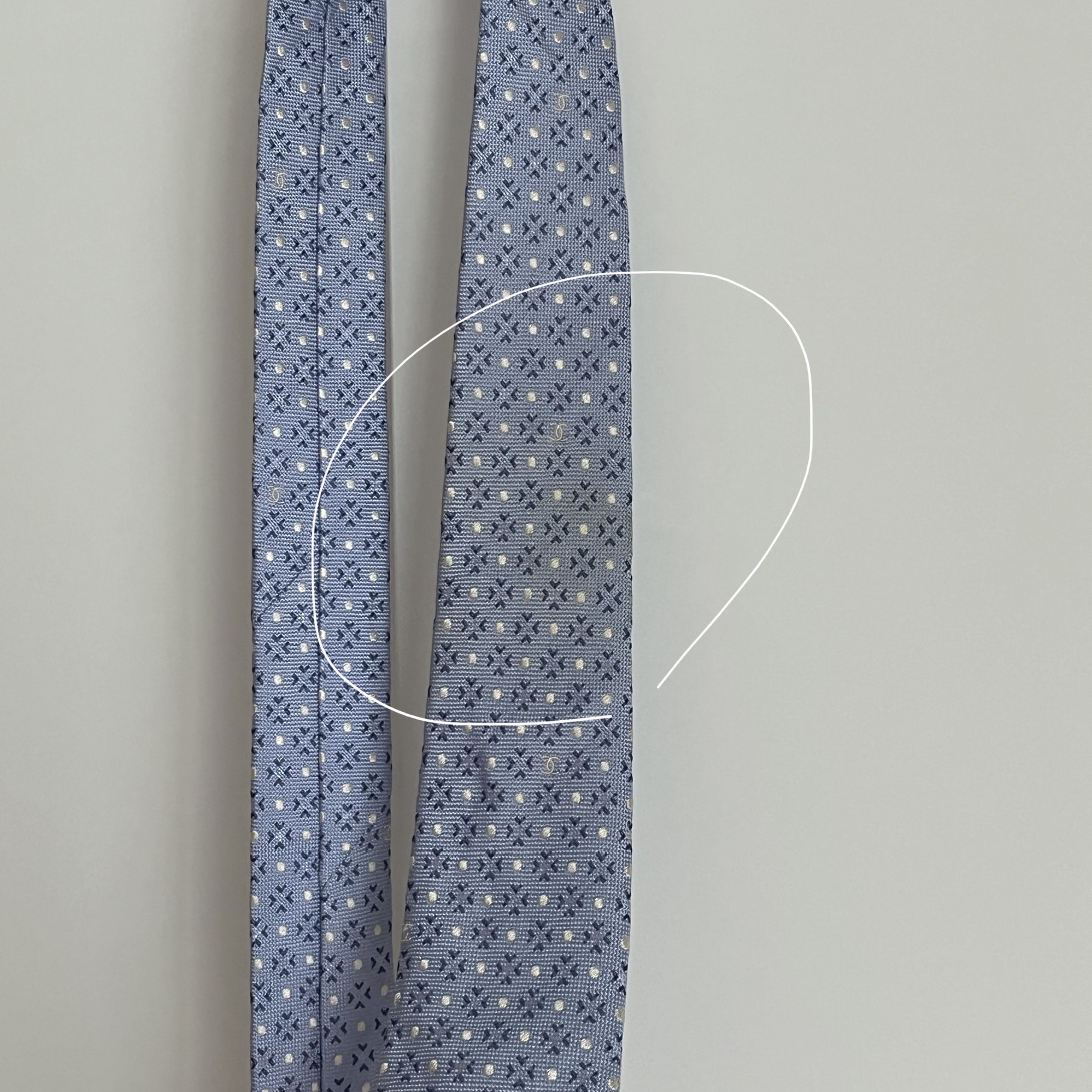 메이드 인 이태리제품이며, 도트패턴 및 샤넬로고 자수 포인트가 돋보이는 제품입니다.
