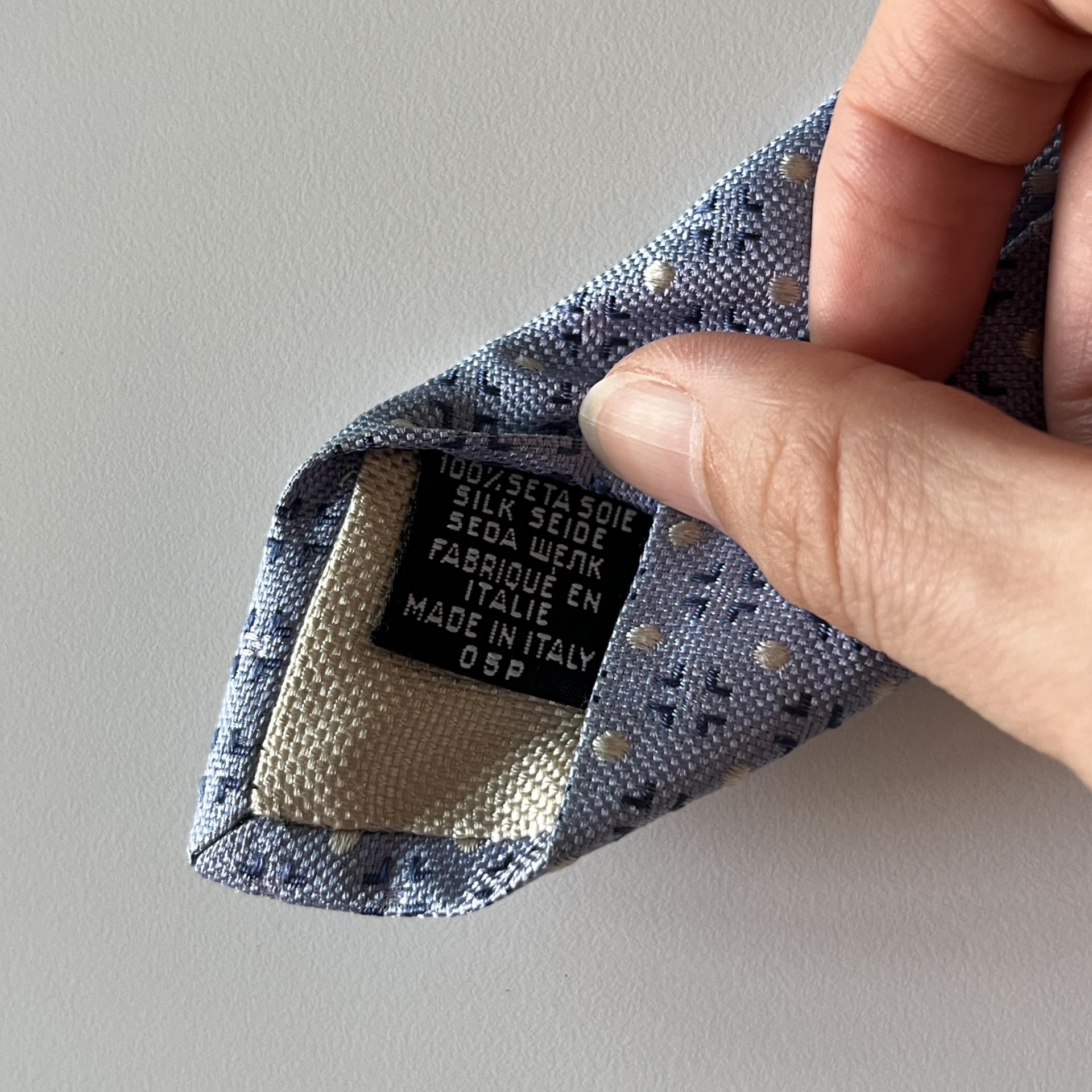 실크소재 위에 고급지면서도 차분한 블루 색감과 경쾌한 느낌의 도트 패턴이 있어 빈티지한 무드도 돋보이는 제품!