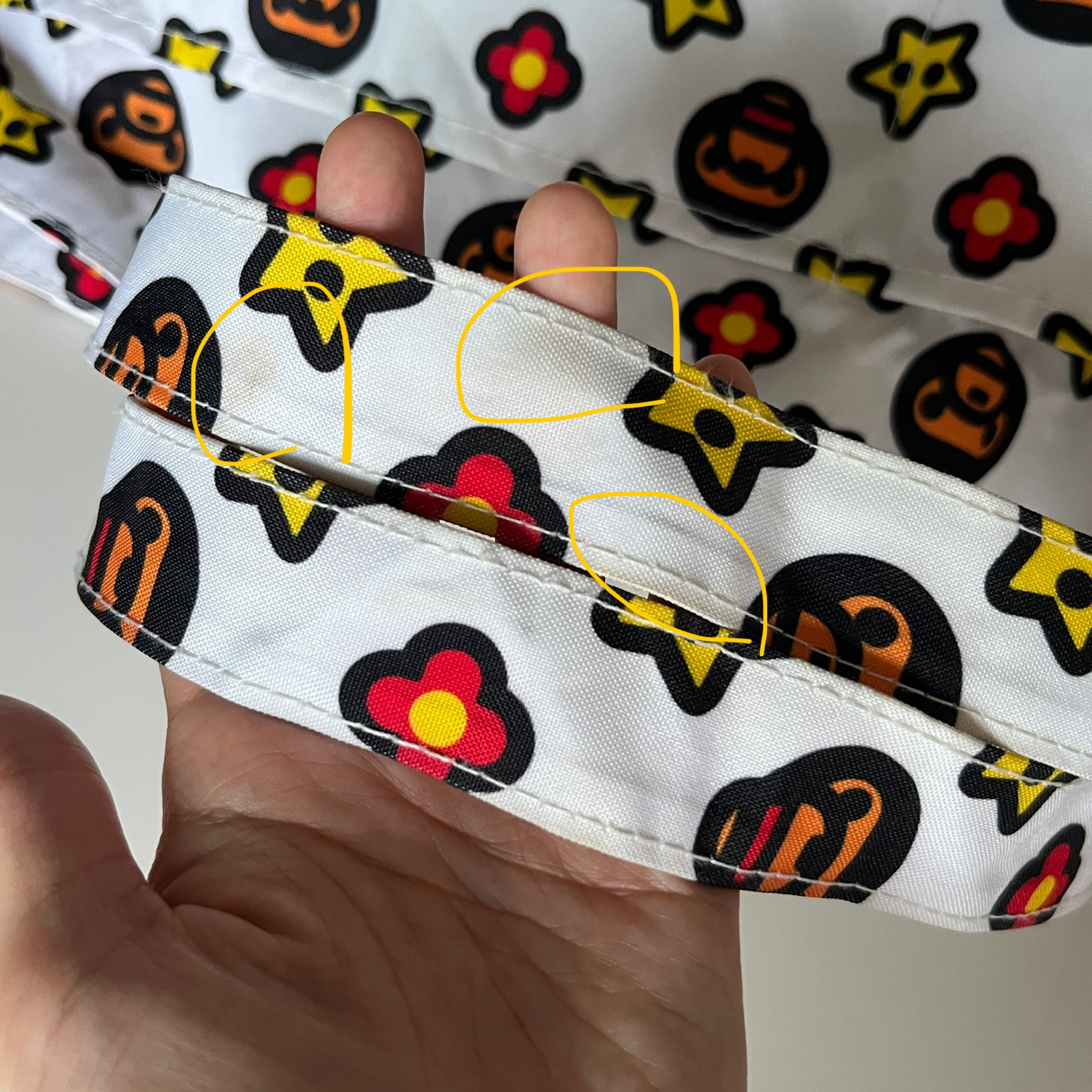 저희가 미처 체크하지 못한 데미지 ( 큰 오염, 색깔얼룩, 3cm 이상의 찢어짐 등) 가 확인될 시