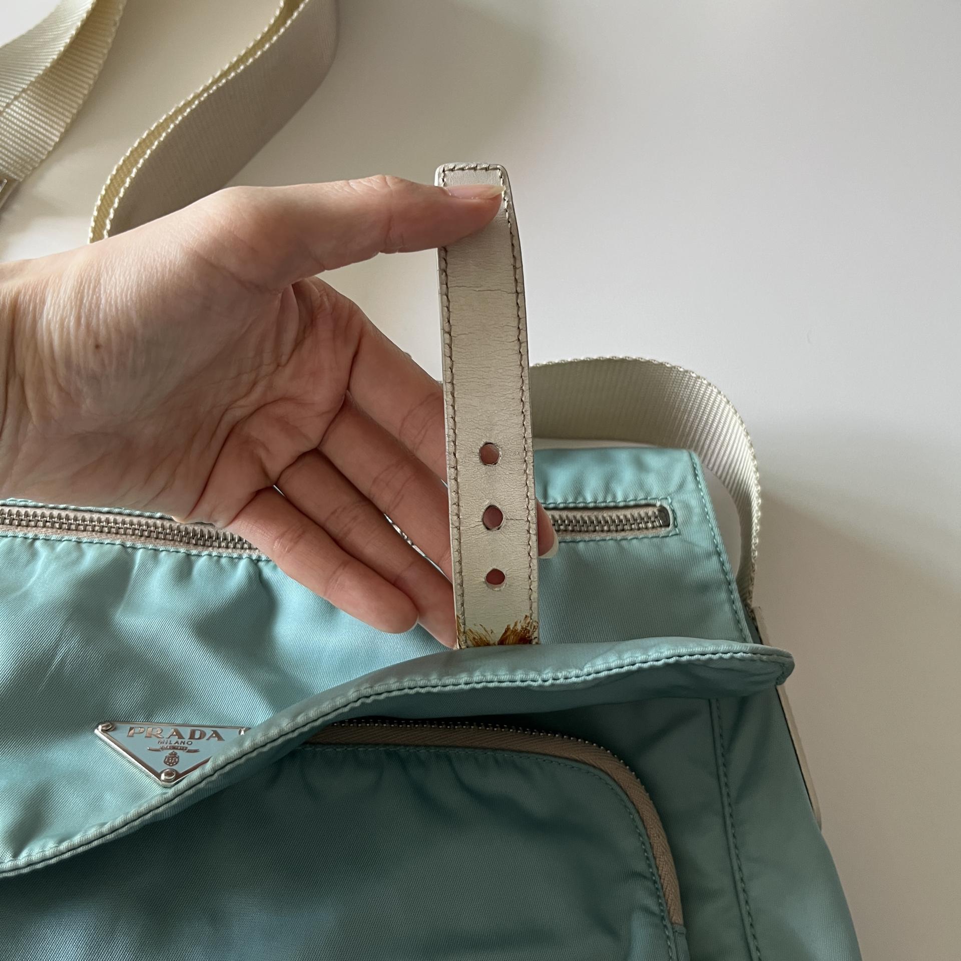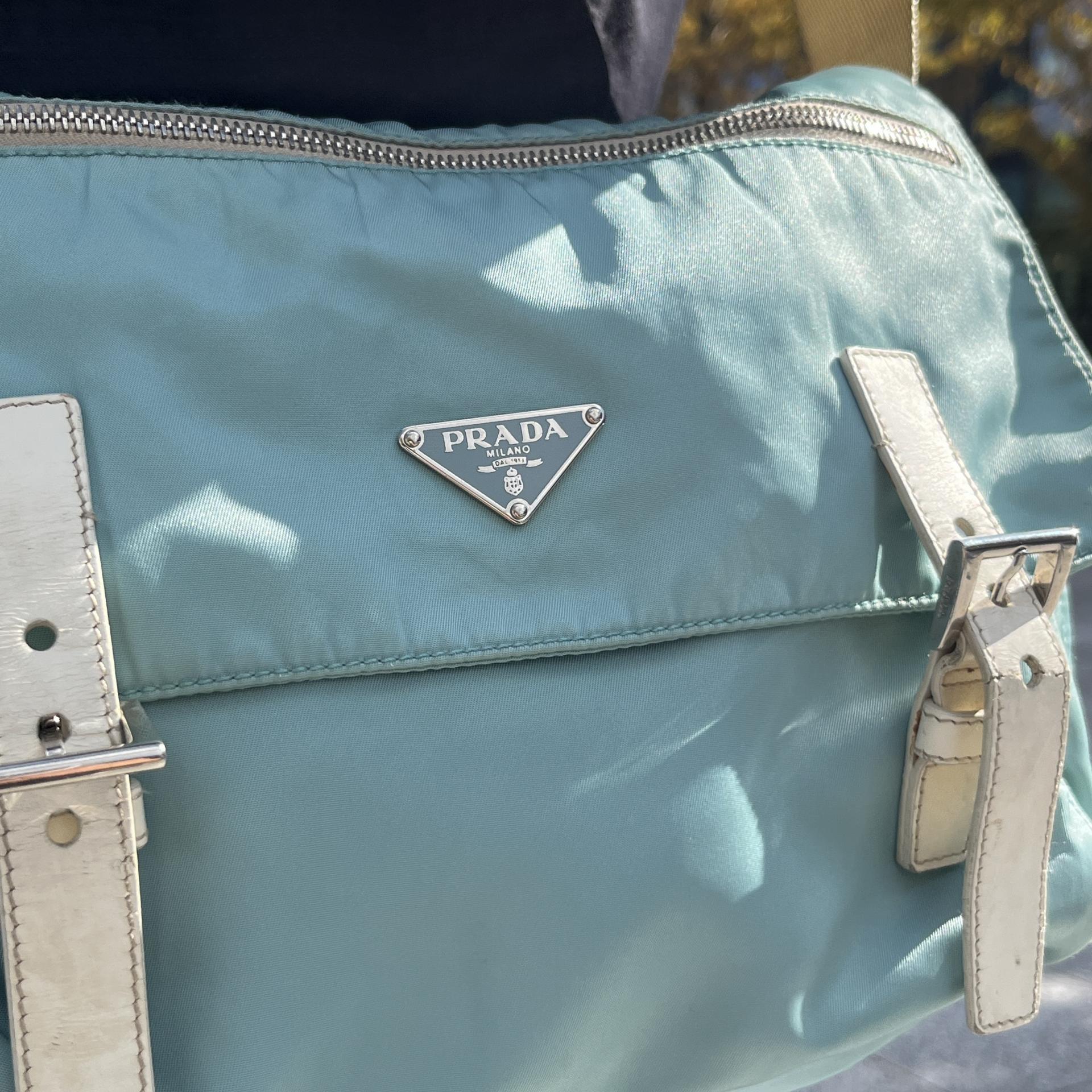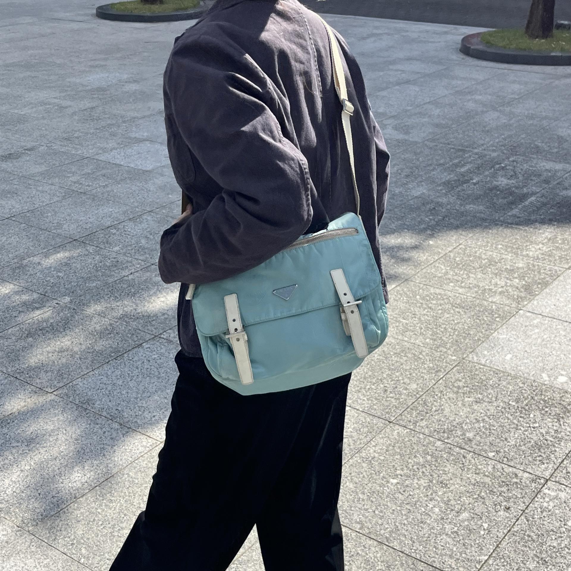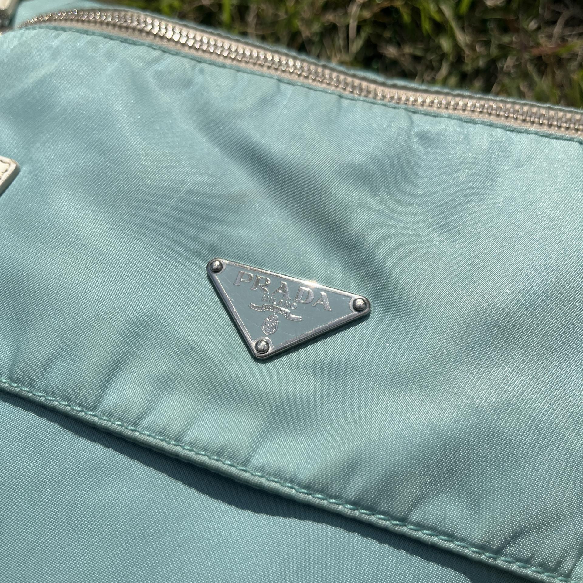 빈티지 프라다 모델에서 찾아볼 수 있는 삼각 프라다 로고 포인트가 돋보입니다.
