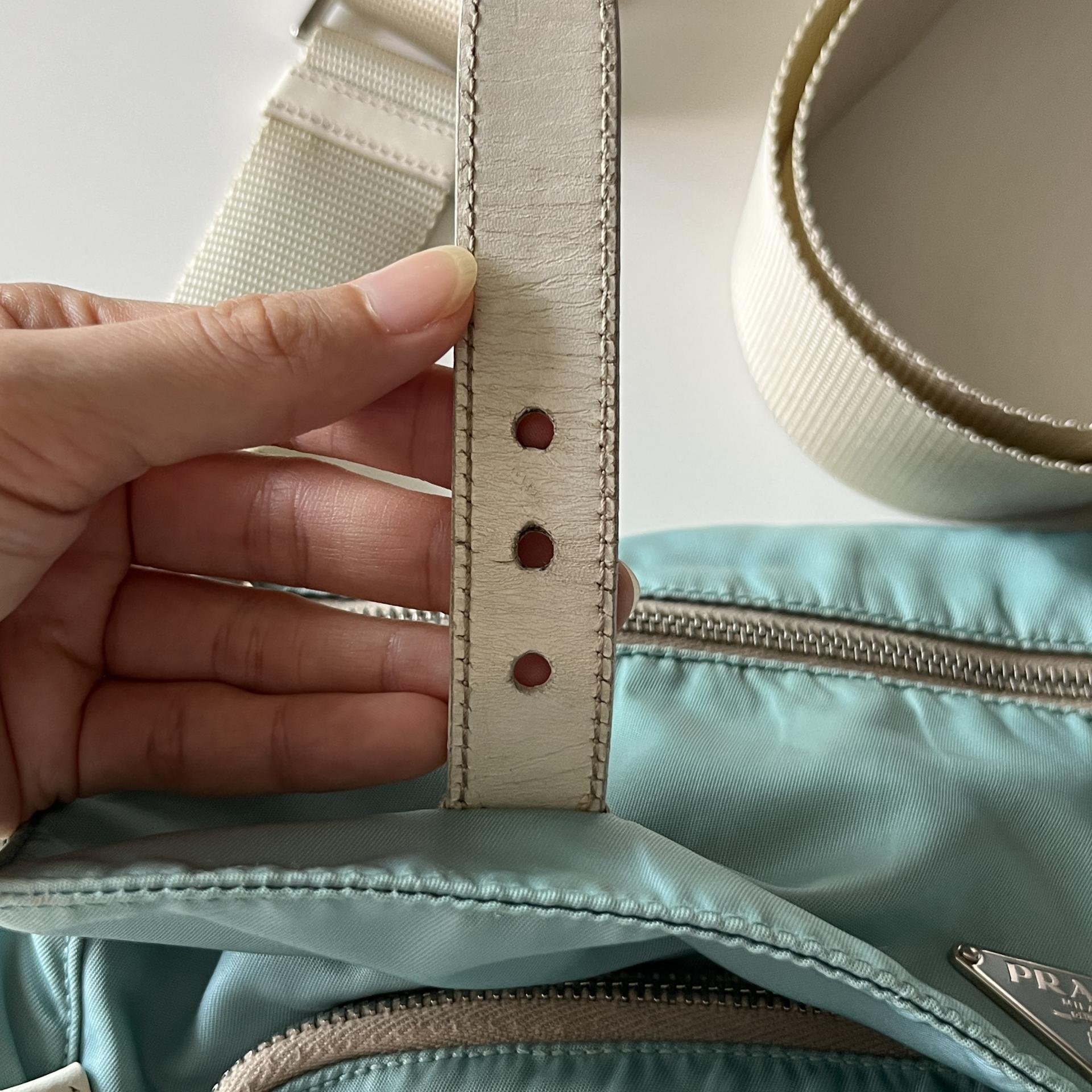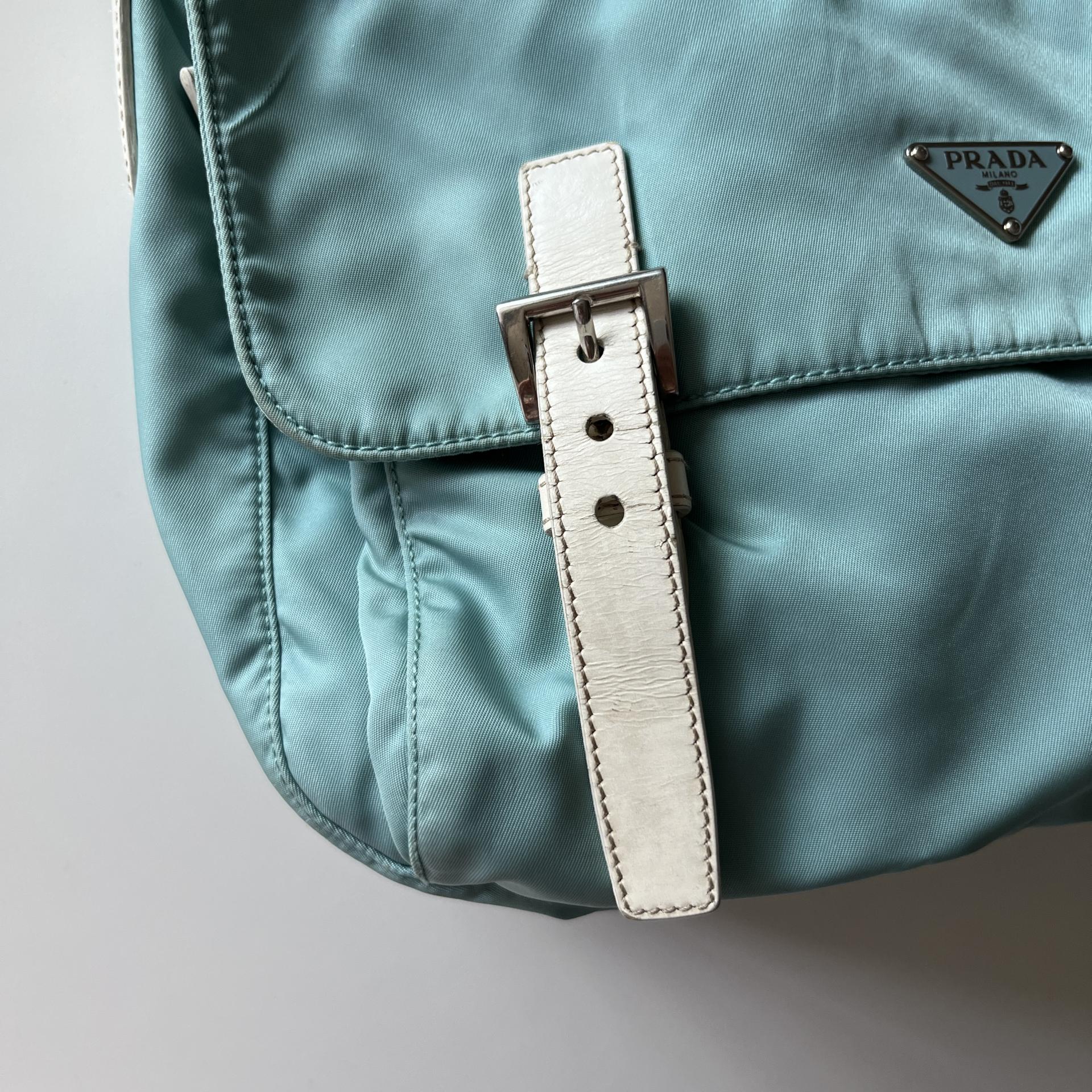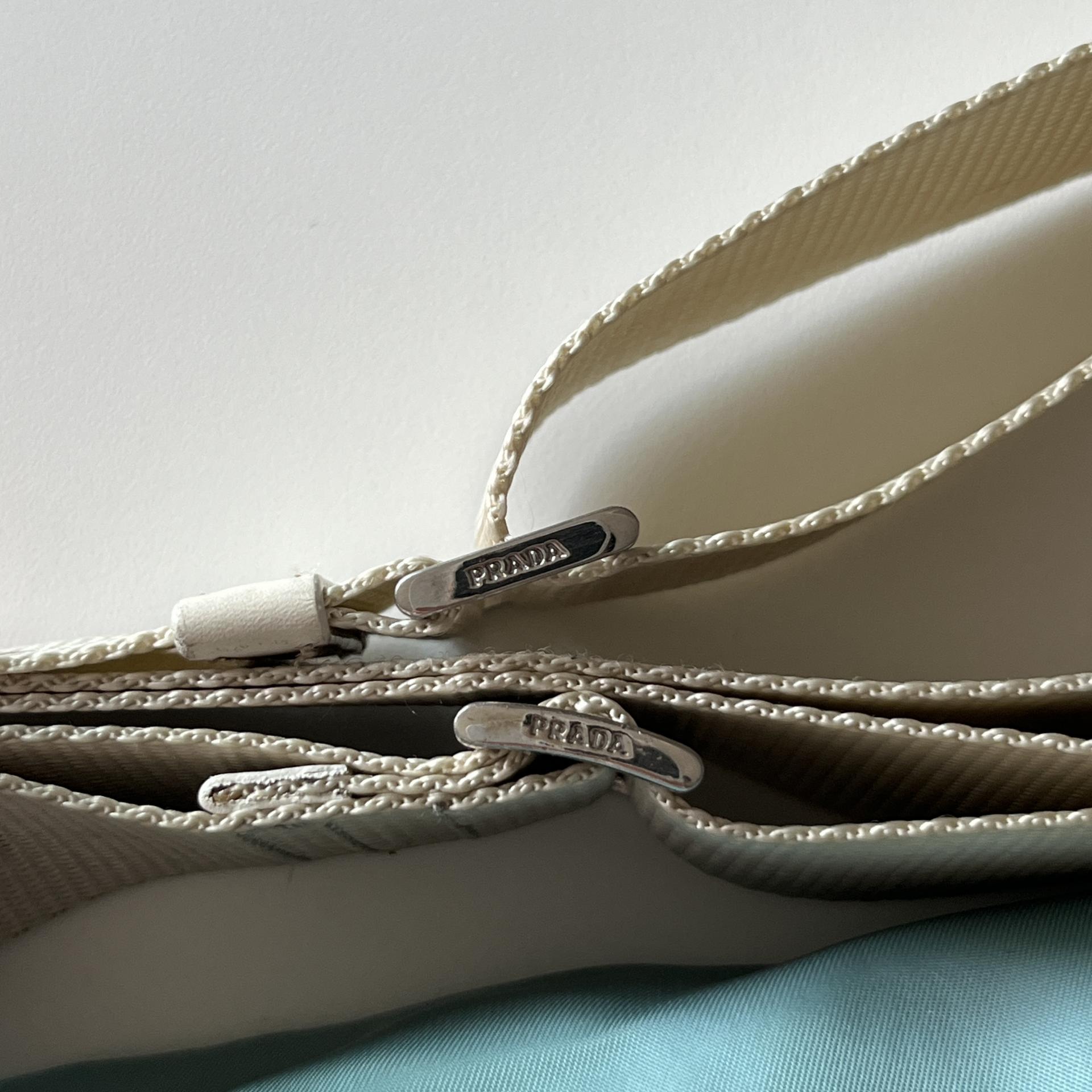 빈티지 프라다 모델에서 찾아볼 수 있는 삼각 프라다 로고 포인트가 돋보입니다.