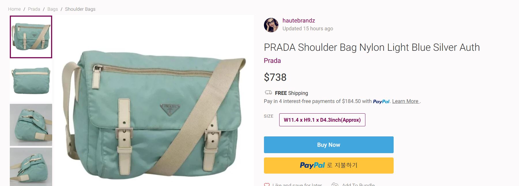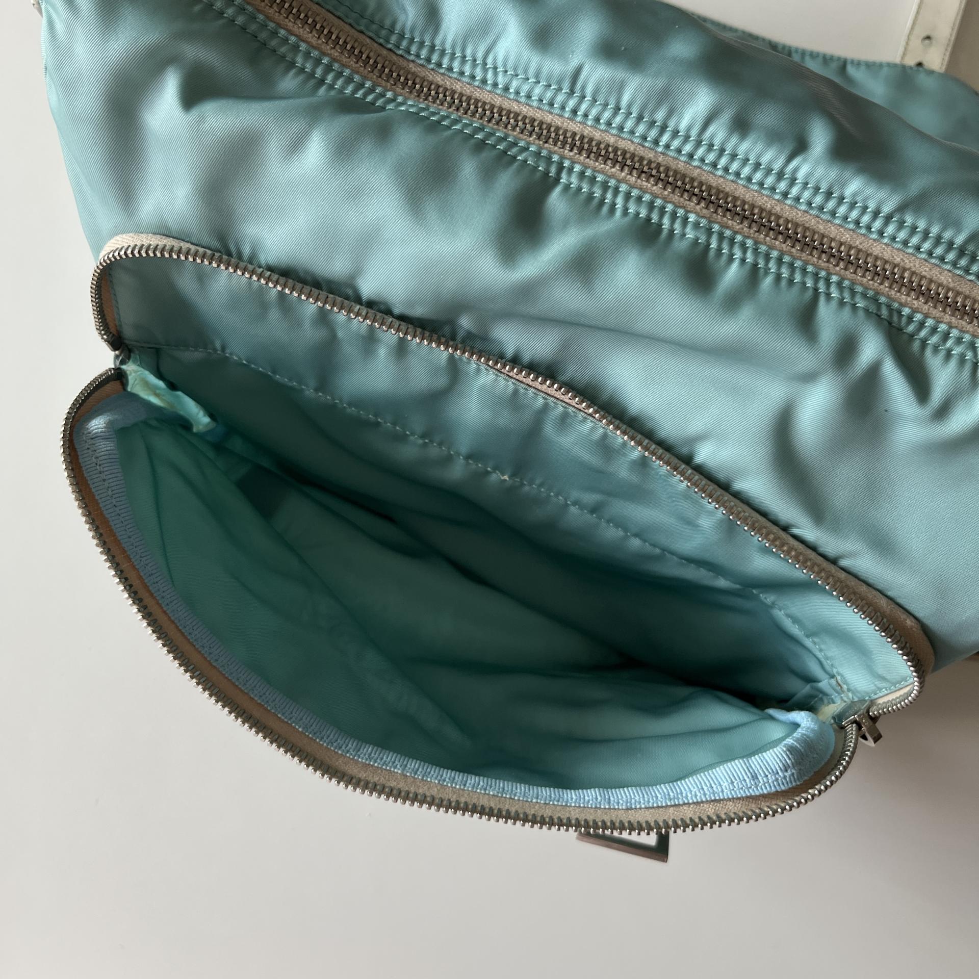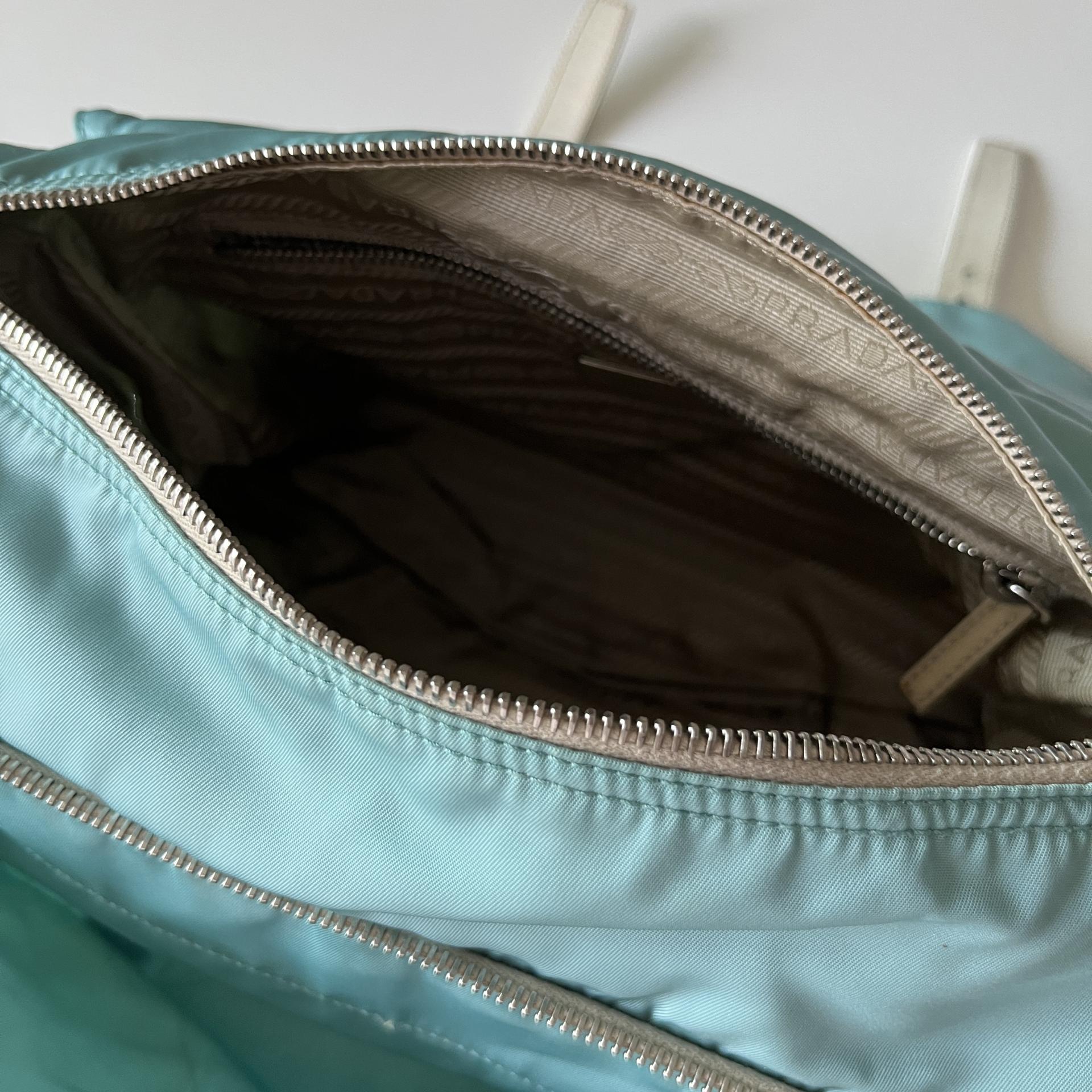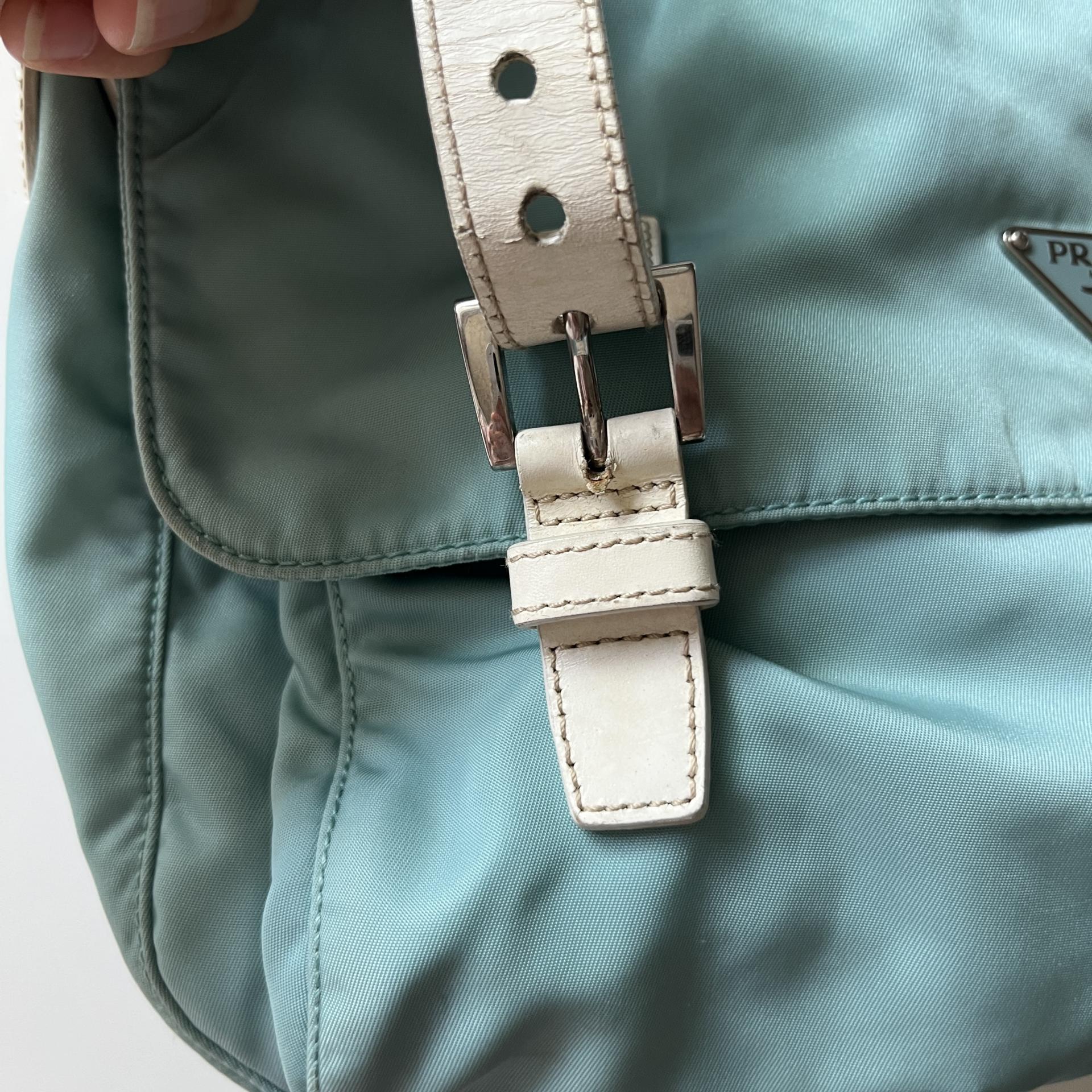 빈티지 프라다 모델에서 찾아볼 수 있는 삼각 프라다 로고 포인트가 돋보입니다.