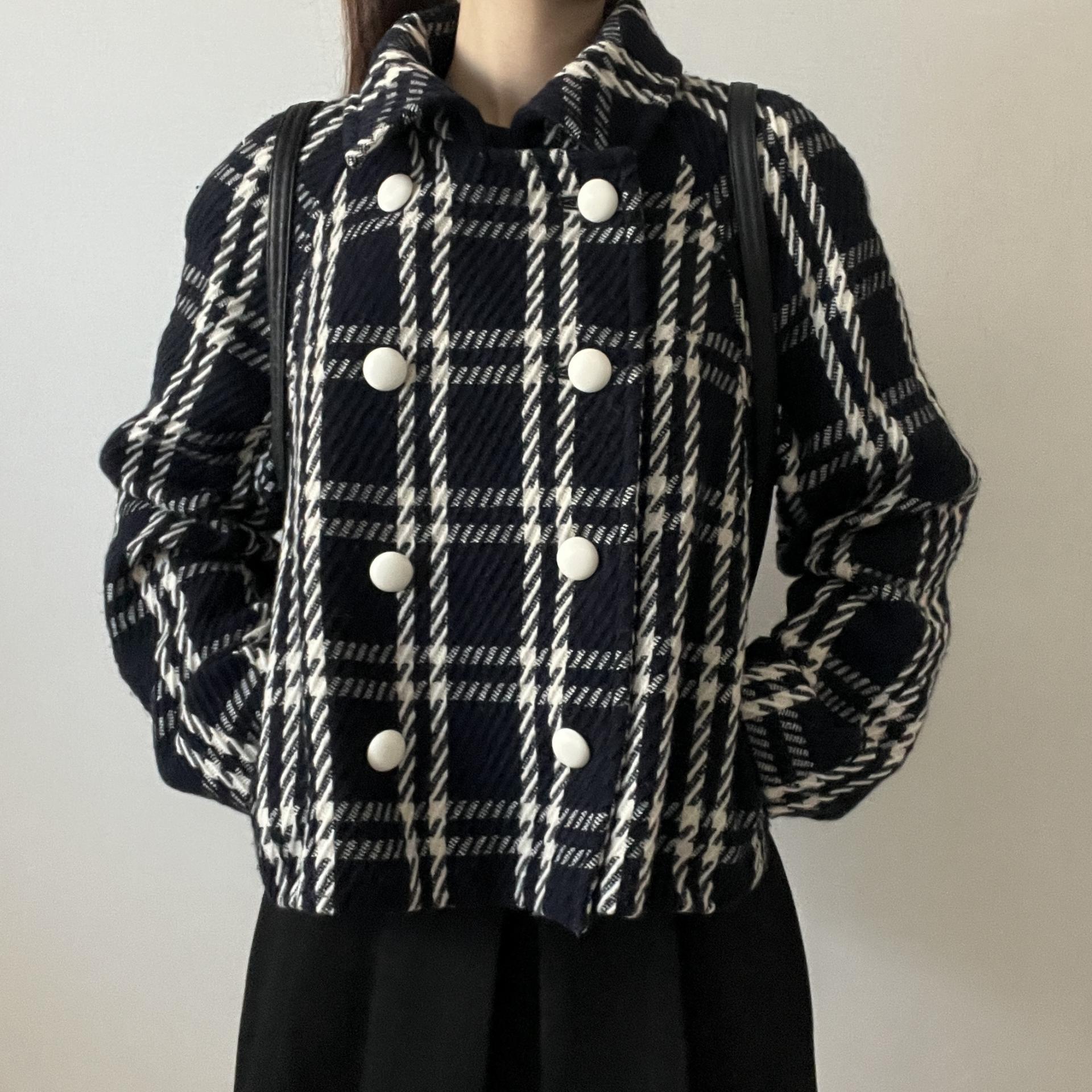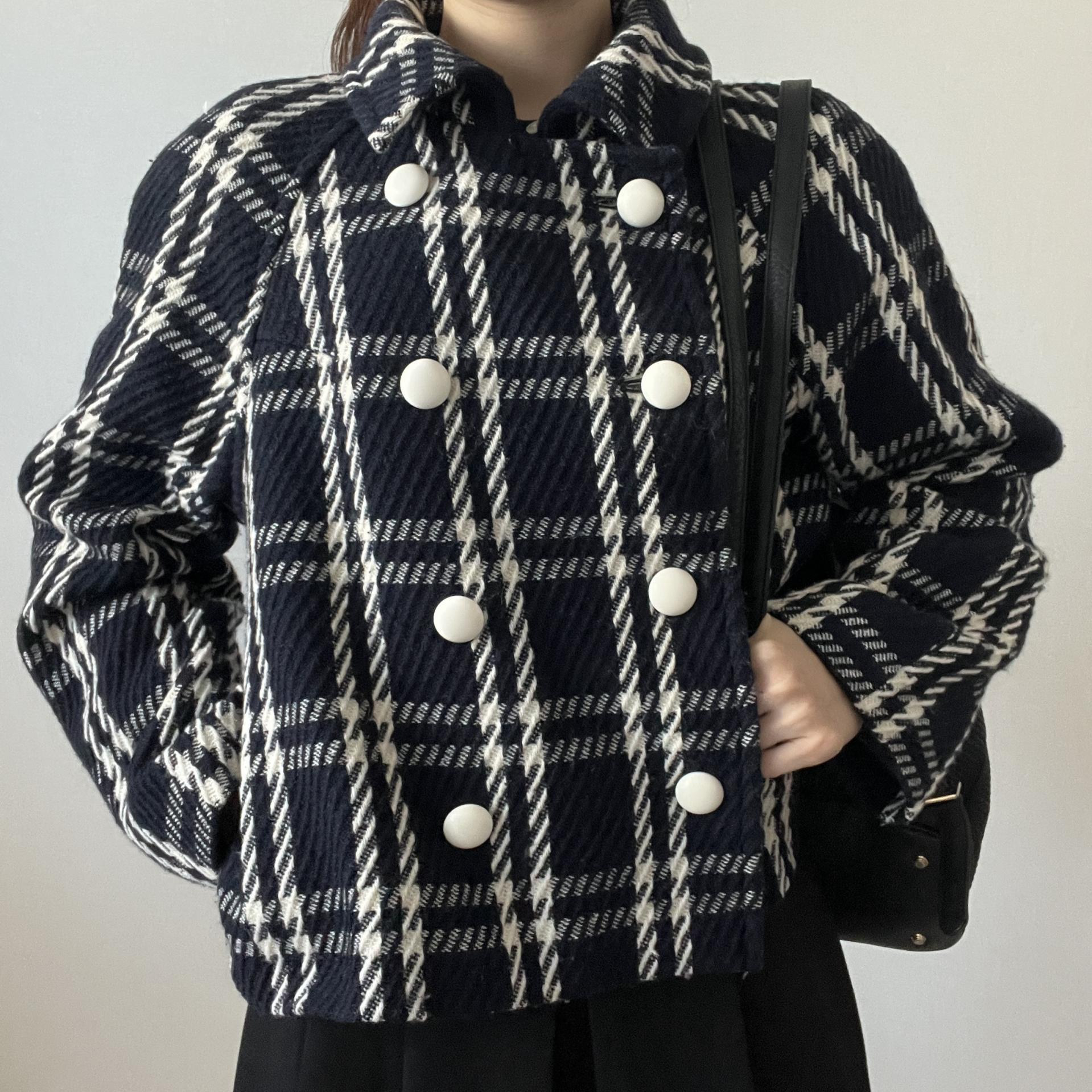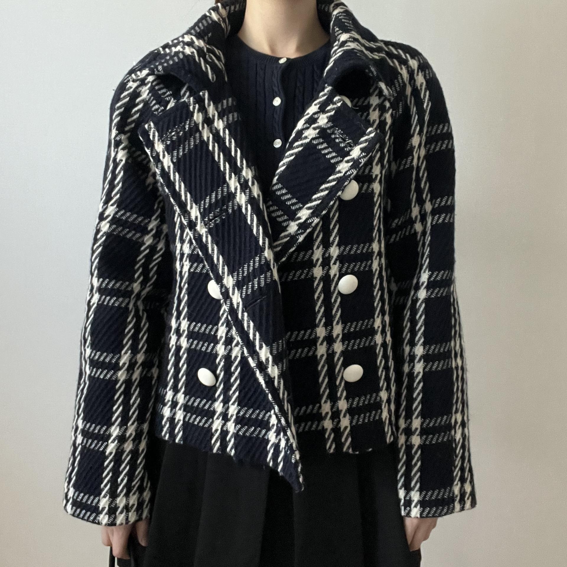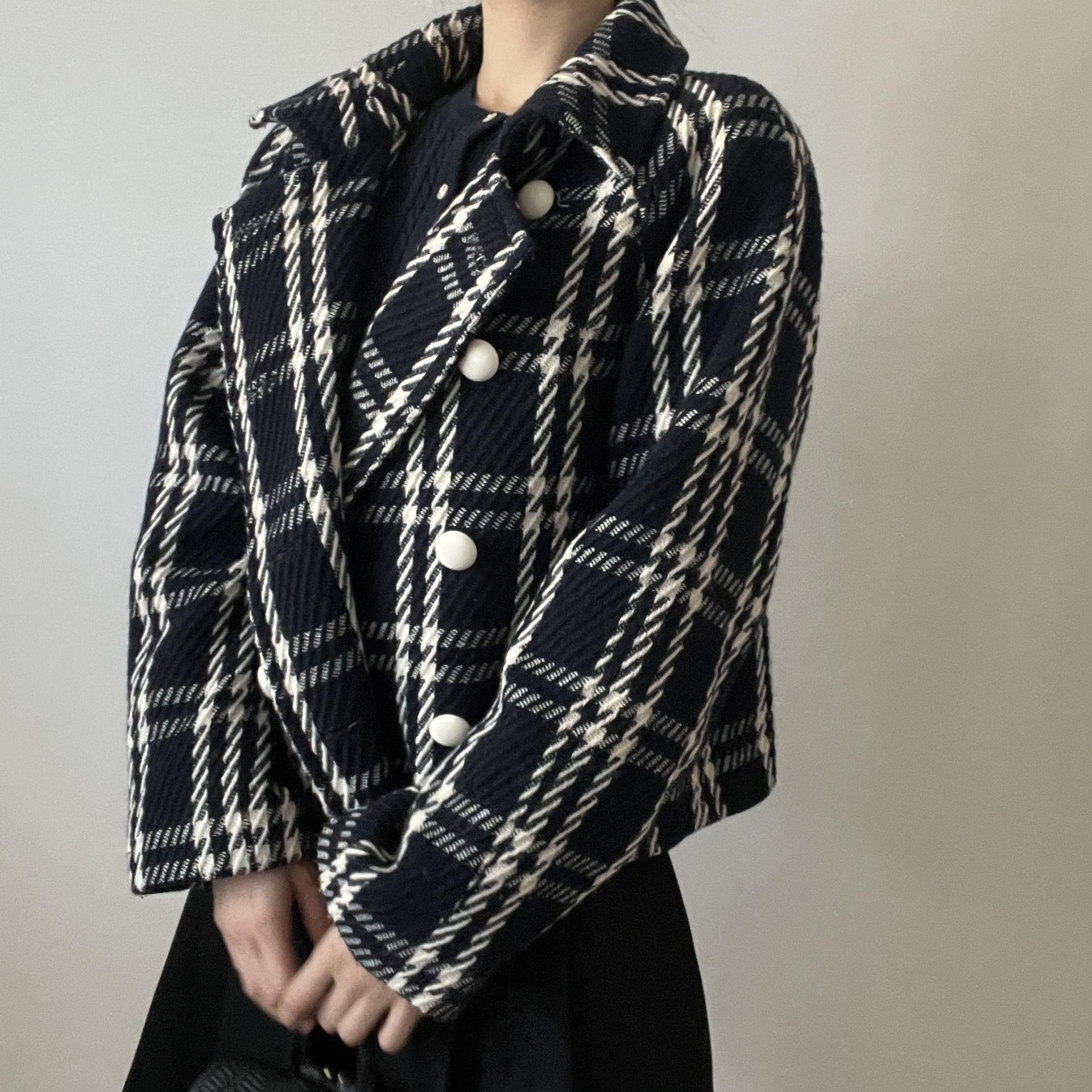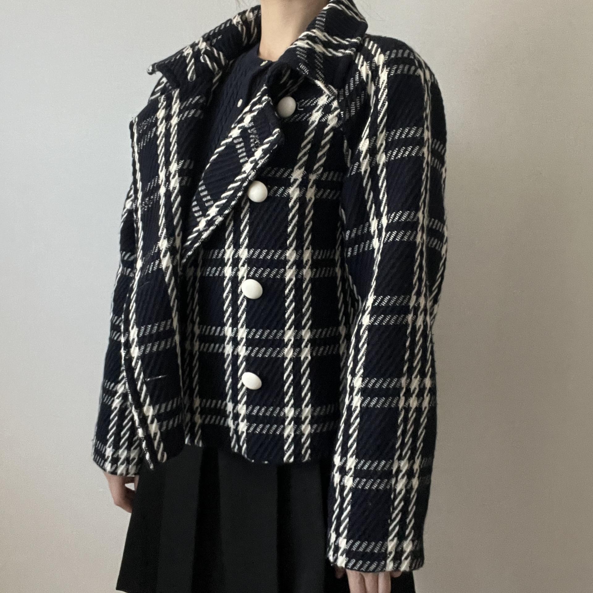 프렌치 캐주얼 웨어 브랜드 ELLE PLANETE 의 울 체크 자켓 제품입니다.