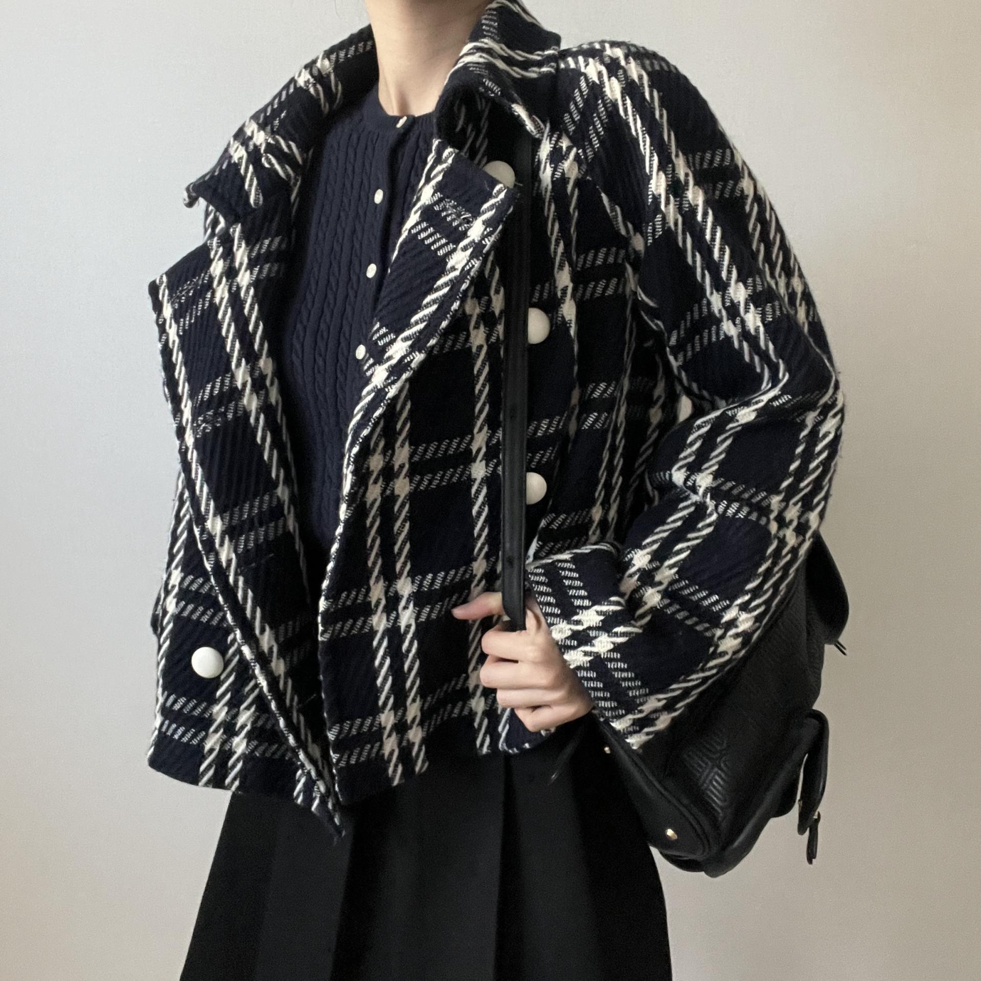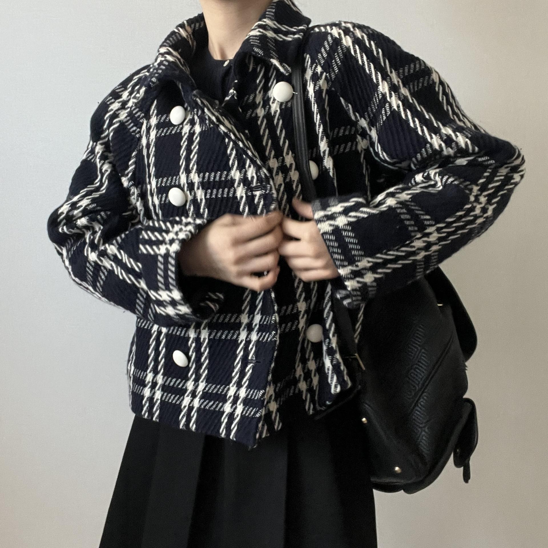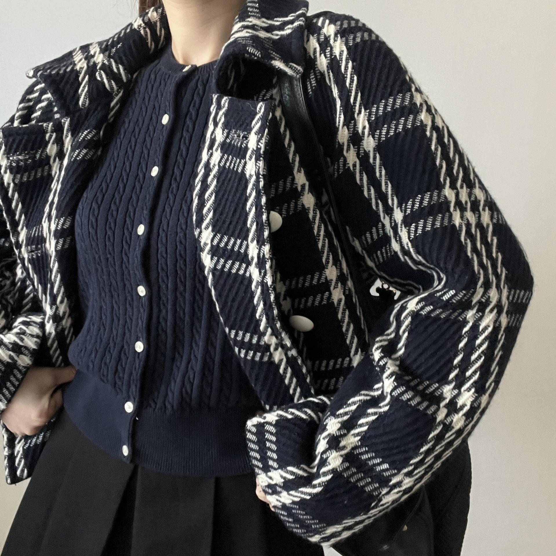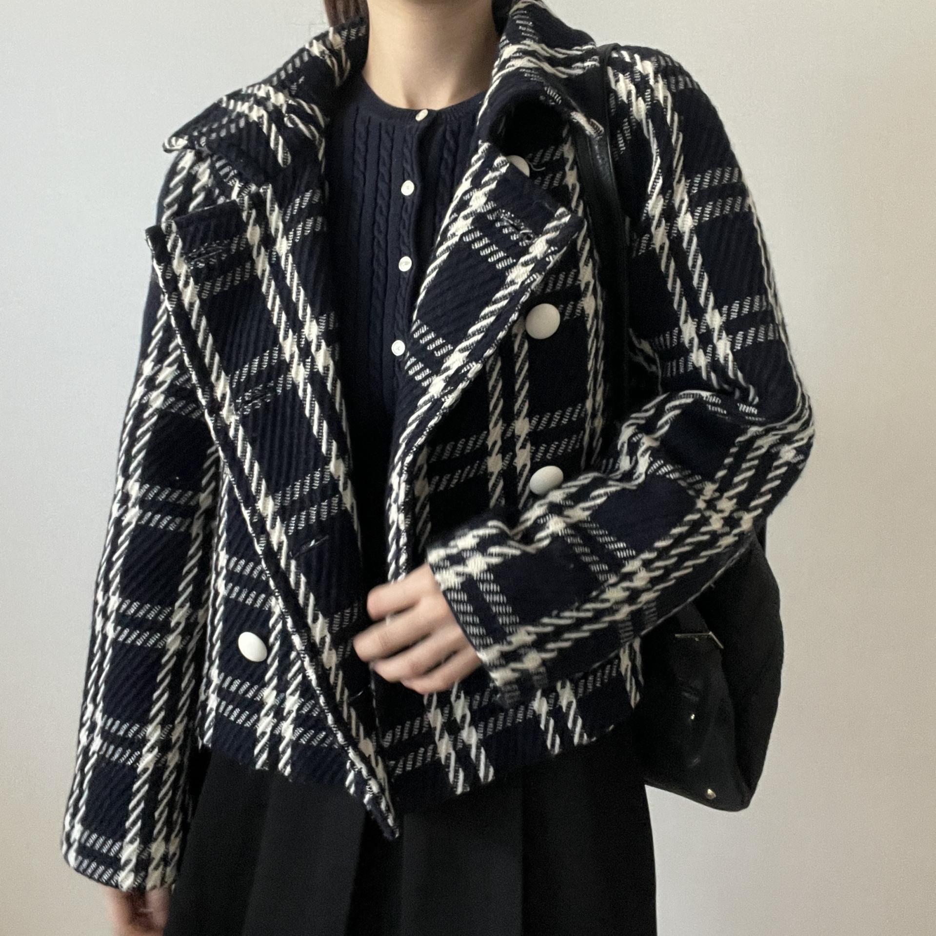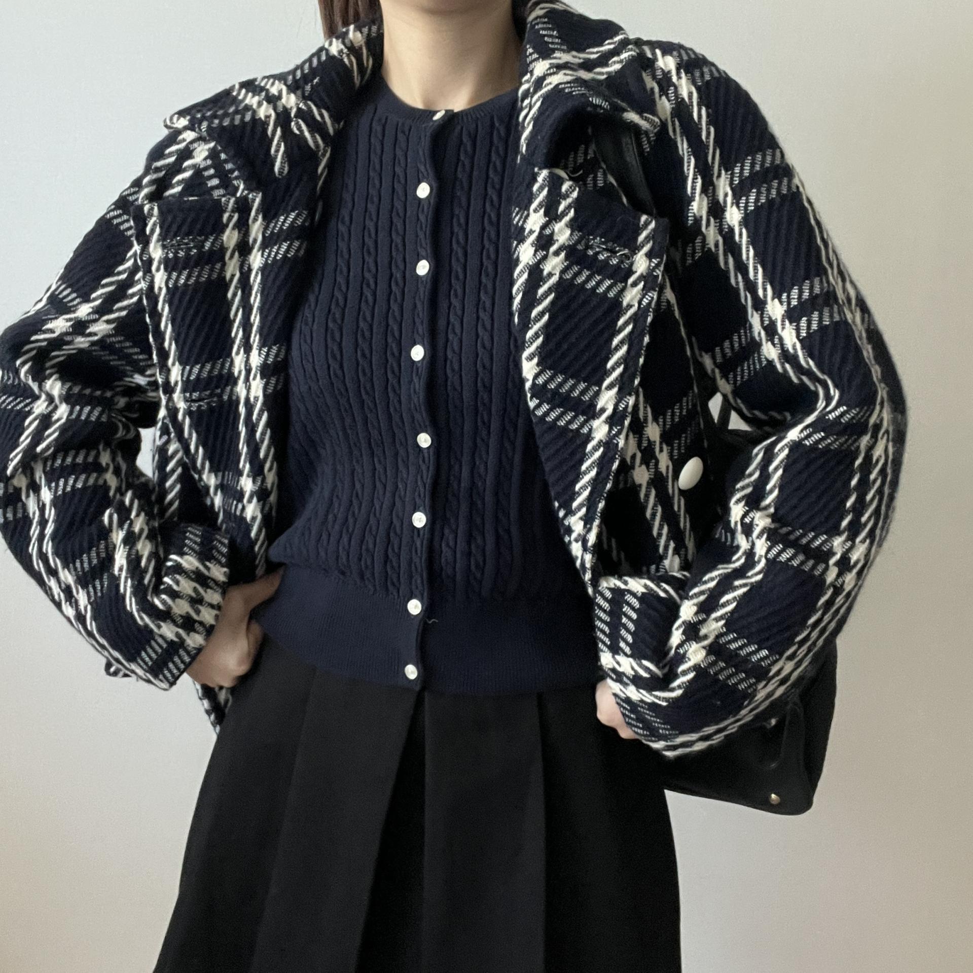 프렌치 캐주얼 웨어 브랜드 ELLE PLANETE 의 울 체크 자켓 제품입니다.