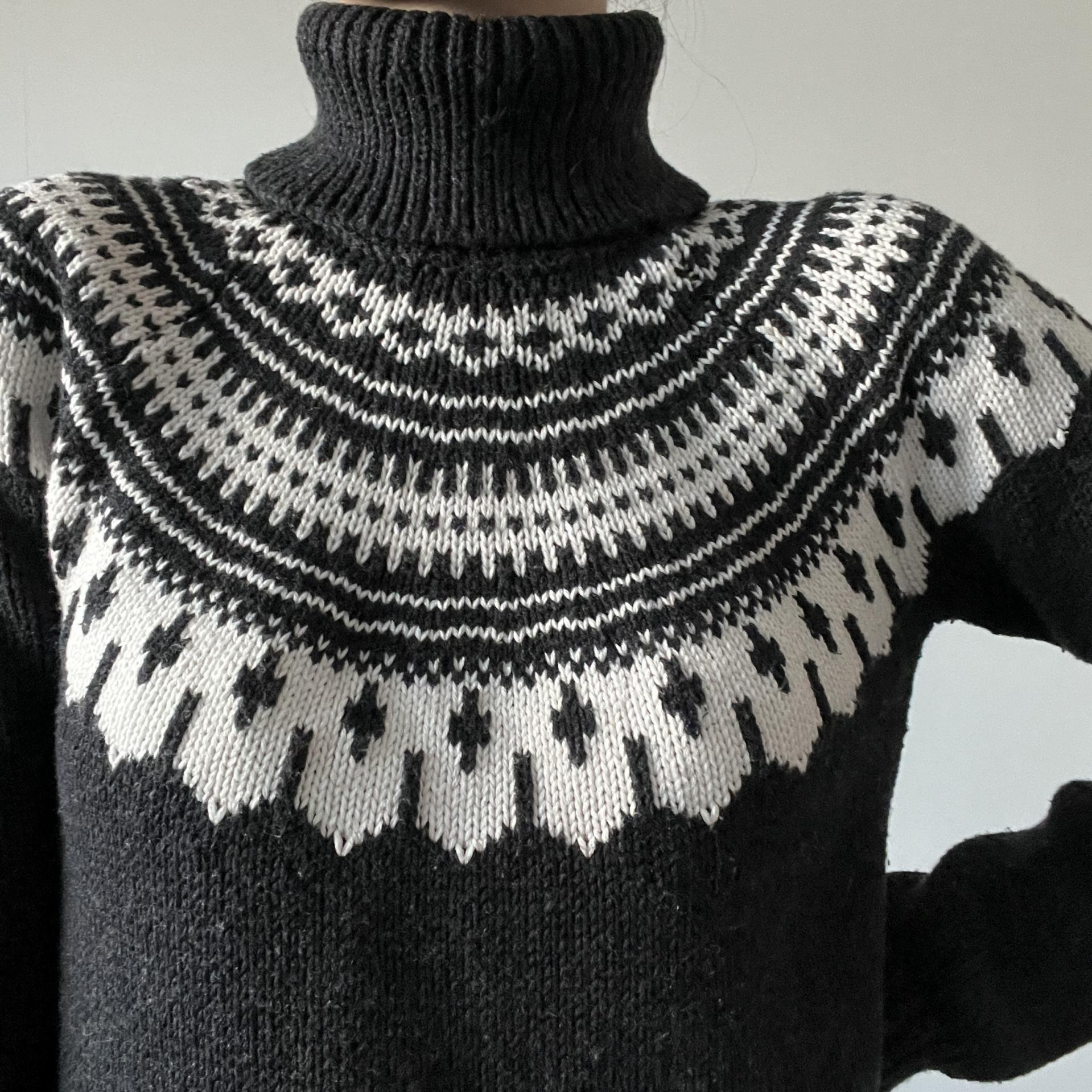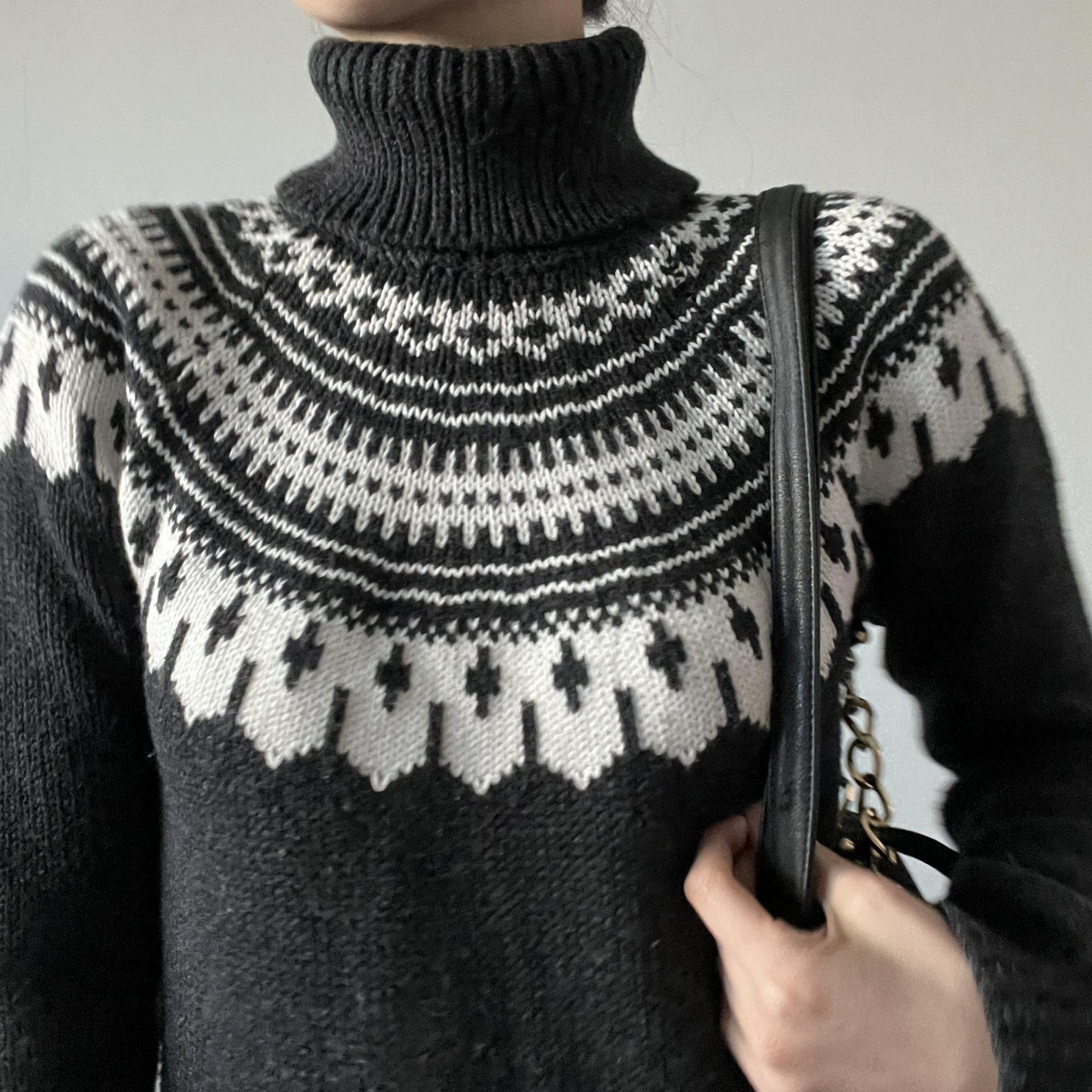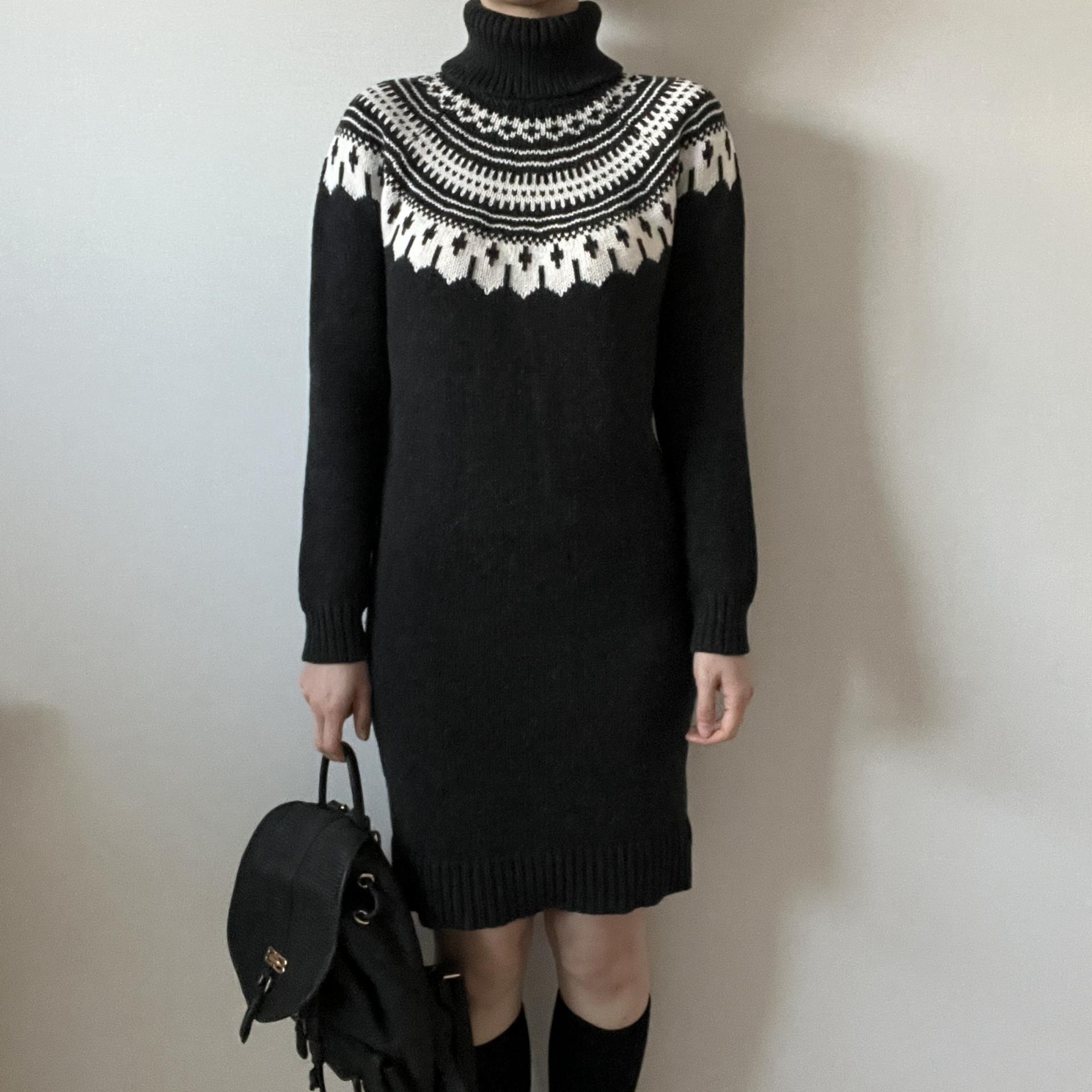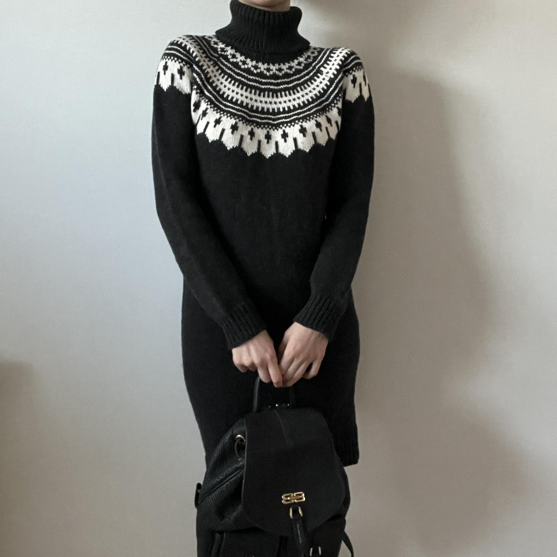 폴로 랄프로렌의 페어아일 패턴 터틀넥 니트 원피스 제품입니다.