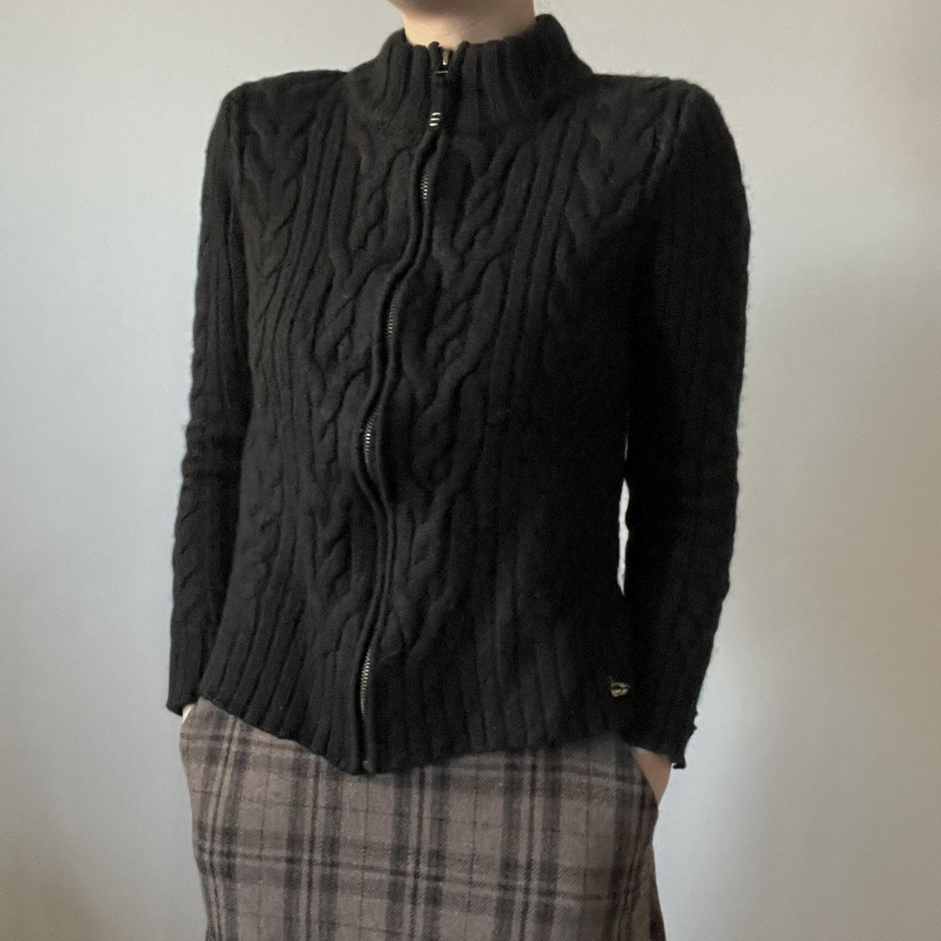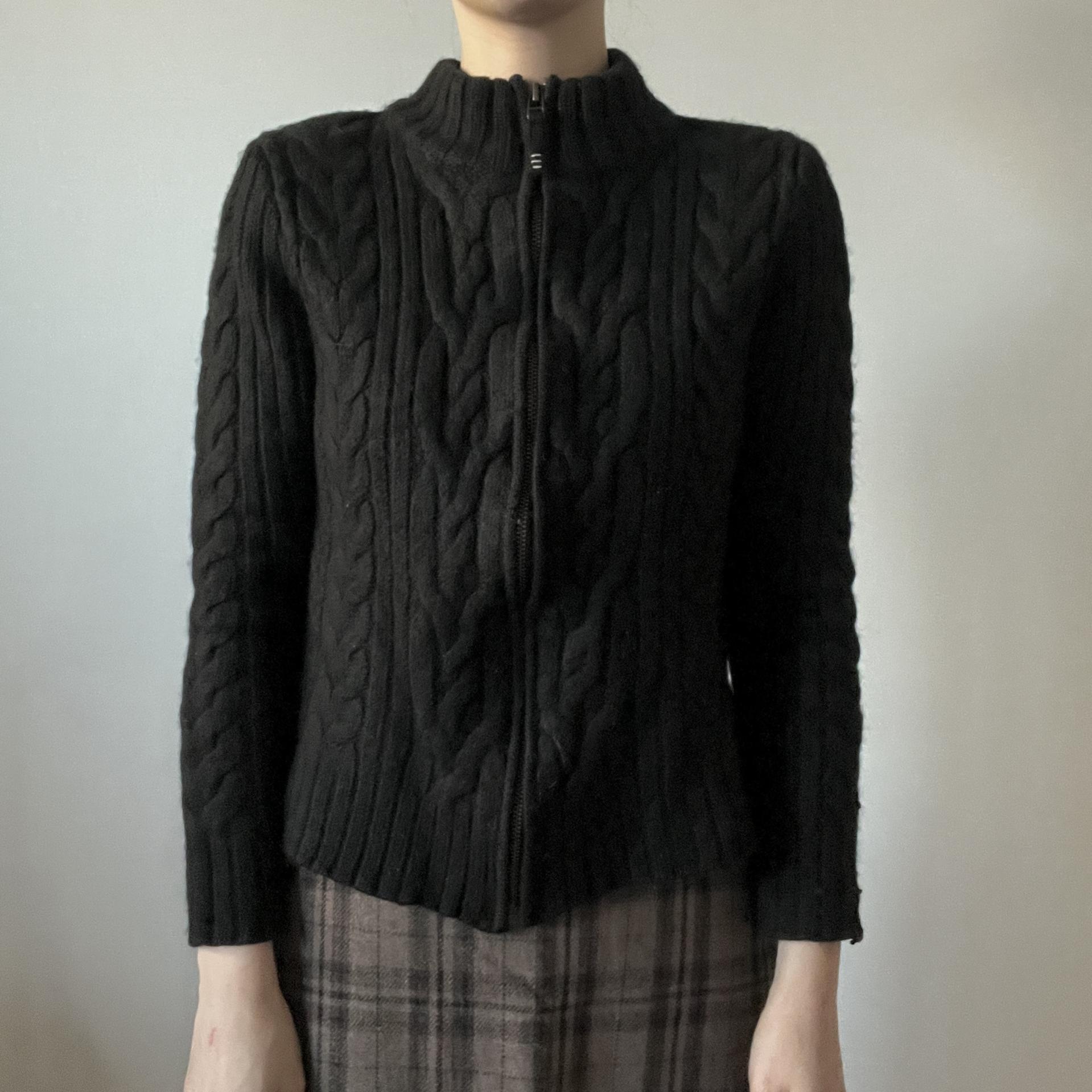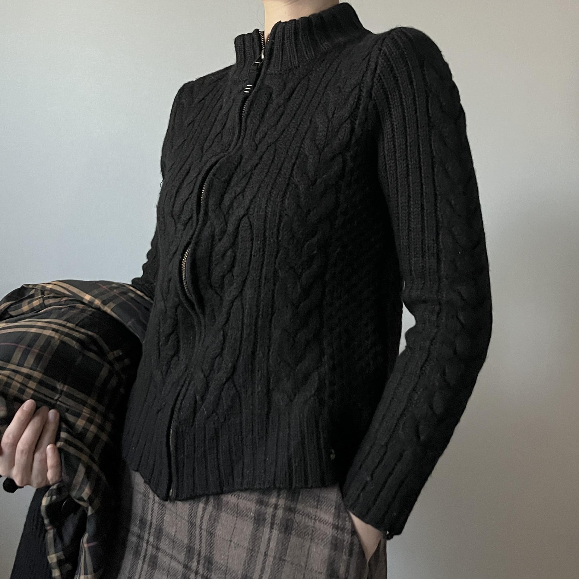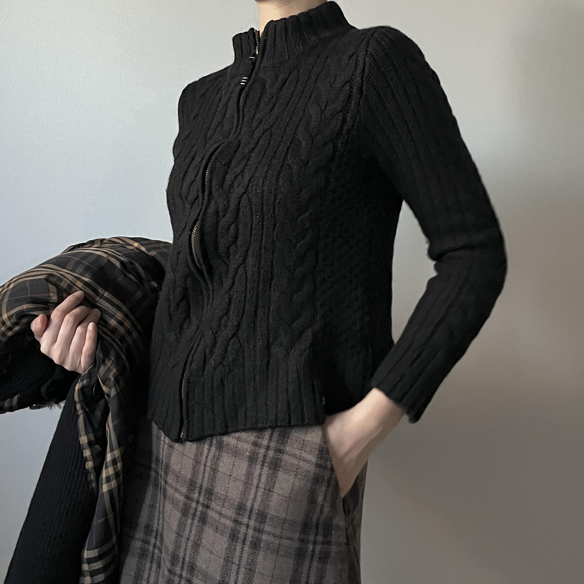 케이블 패턴이 돋보이는 울 집업상품으로 블랙컬러를 가져 보다 편하고 활용성이 높은 상품입니다.