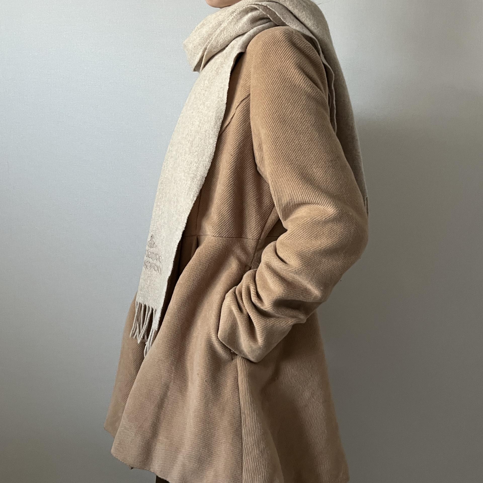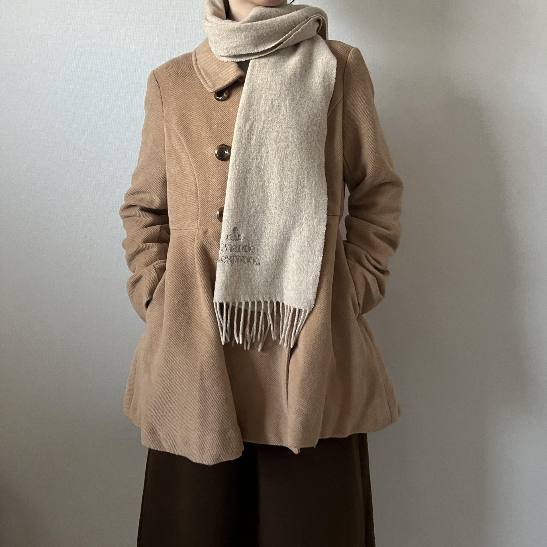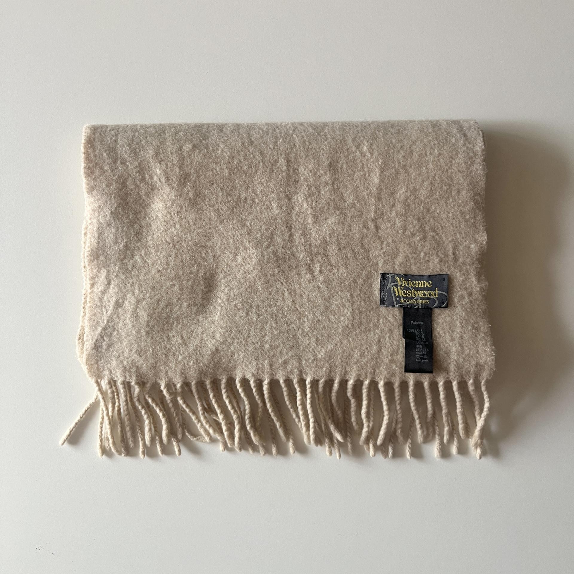 따듯하면서도 청순한 무드가 돋보이는 베이지 컬러감을 가진 비비안 웨스트우드 머플러 상품입니다.
