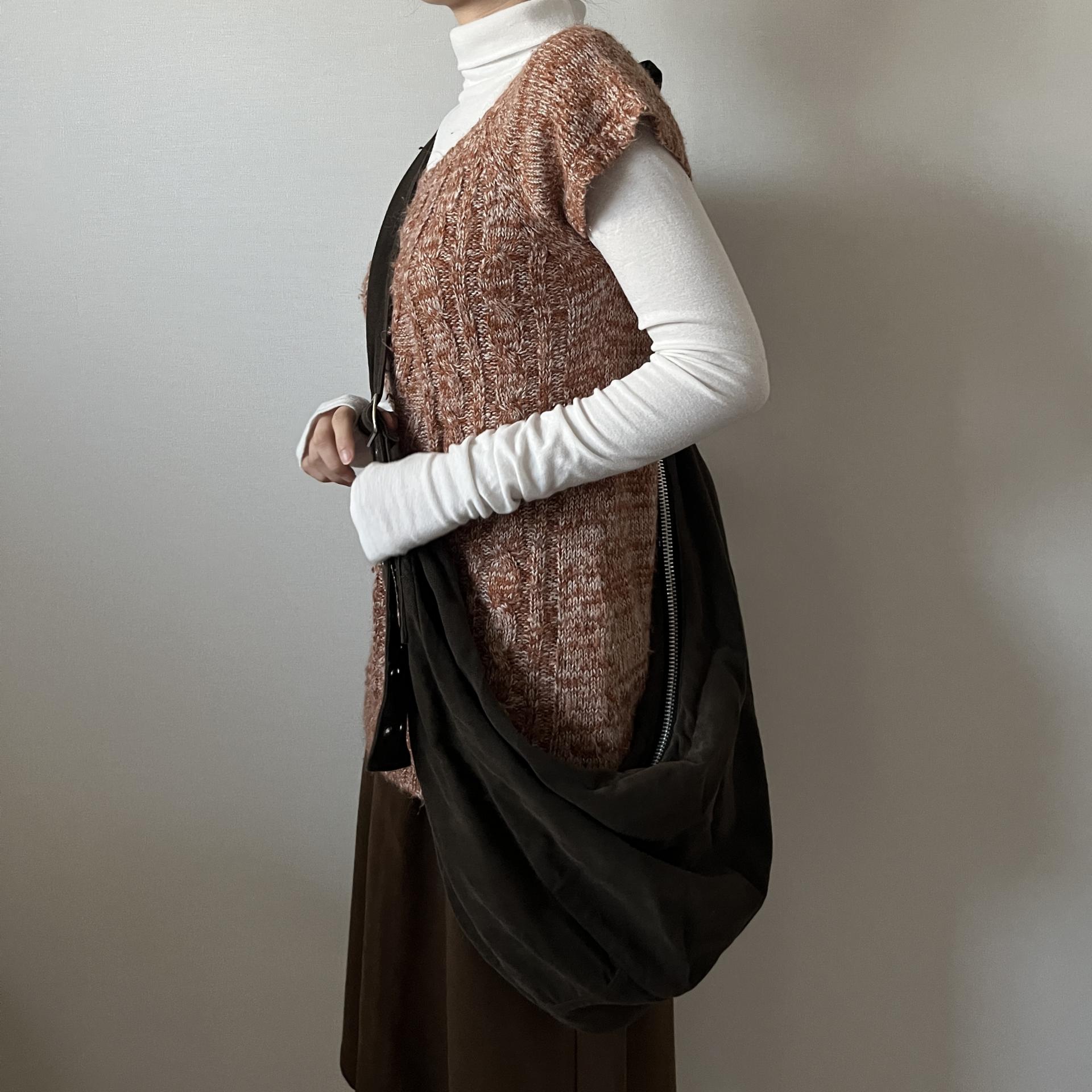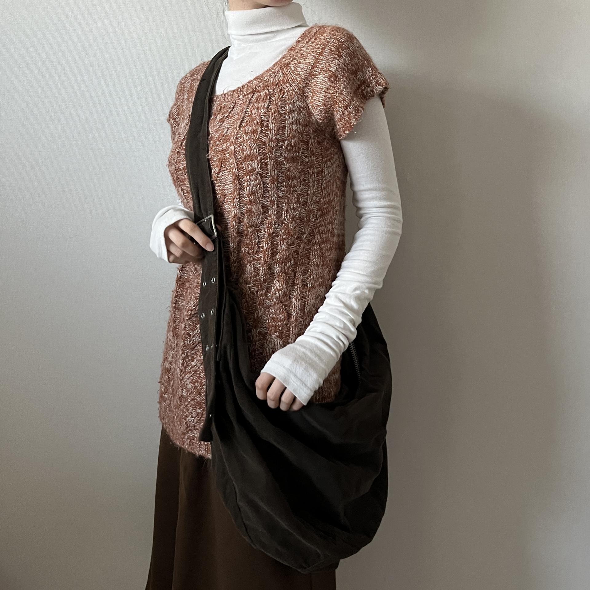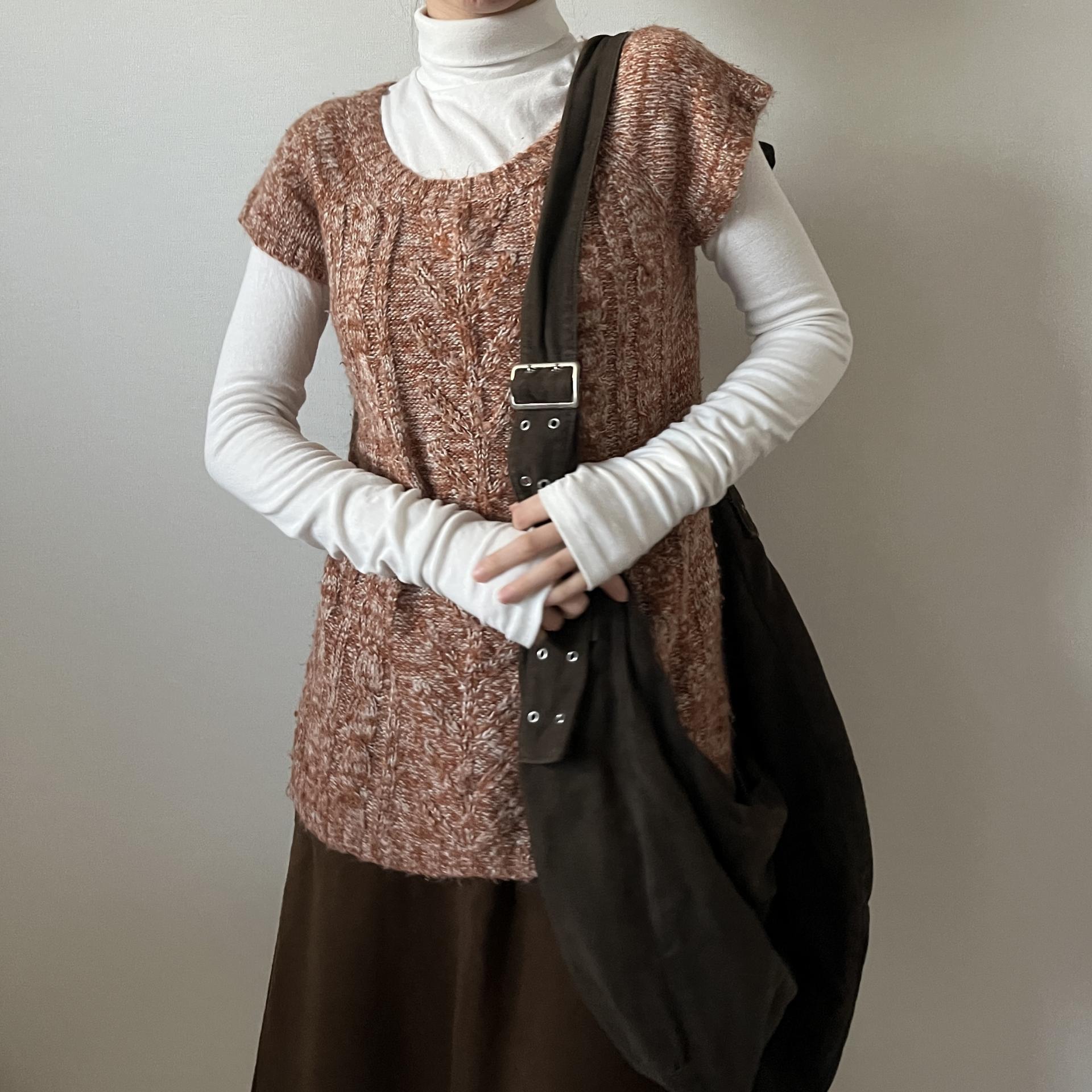 F/W 시즌에 잘 어울리는 웜톤 컬러와 독특한 실루엣이 인상적인 니트 제품입니다.