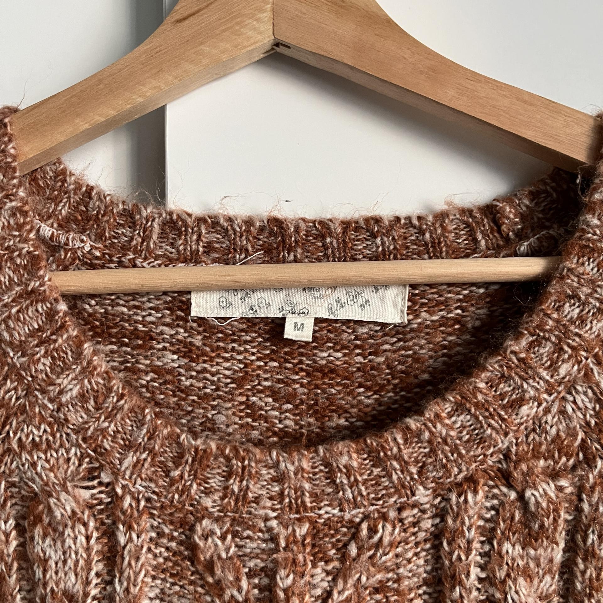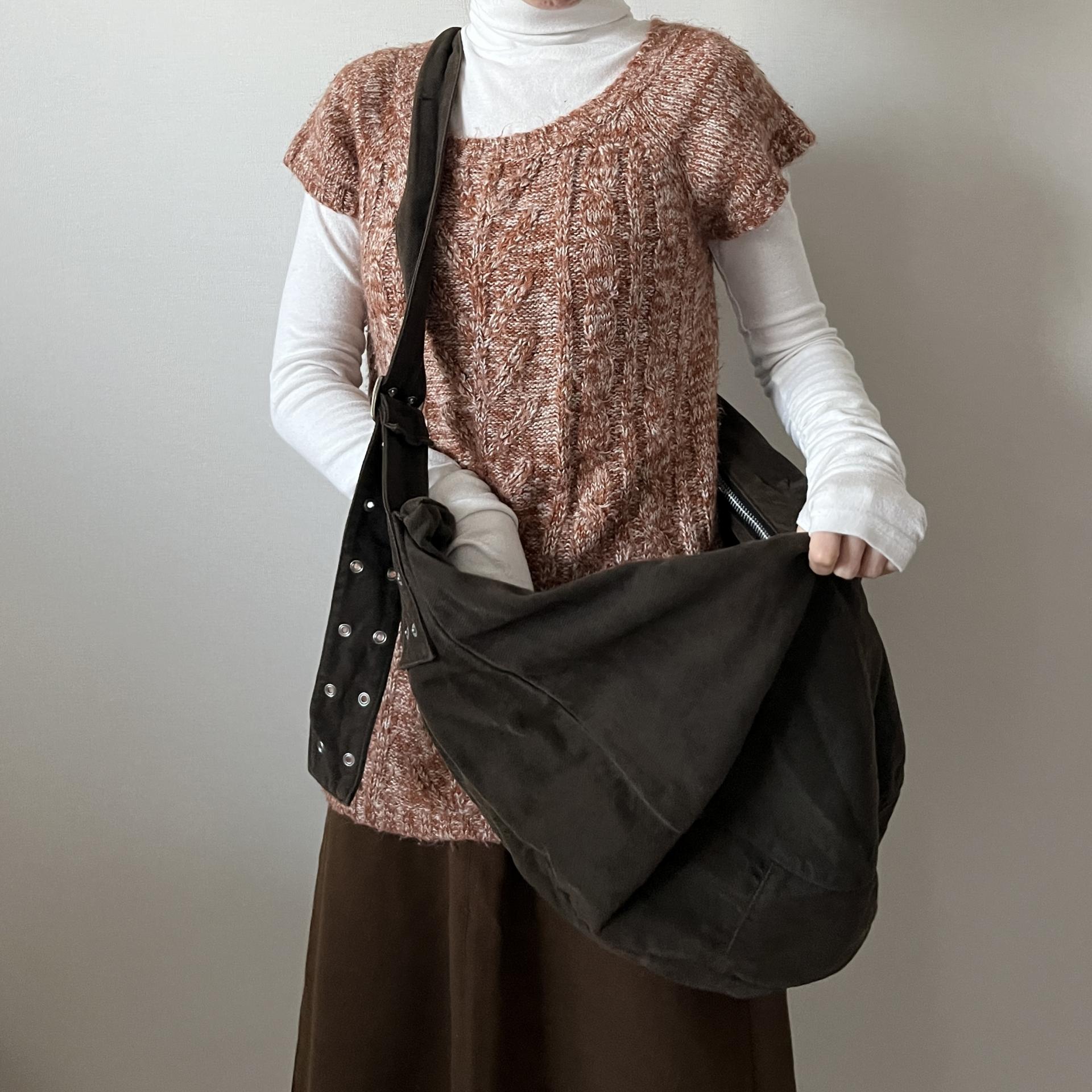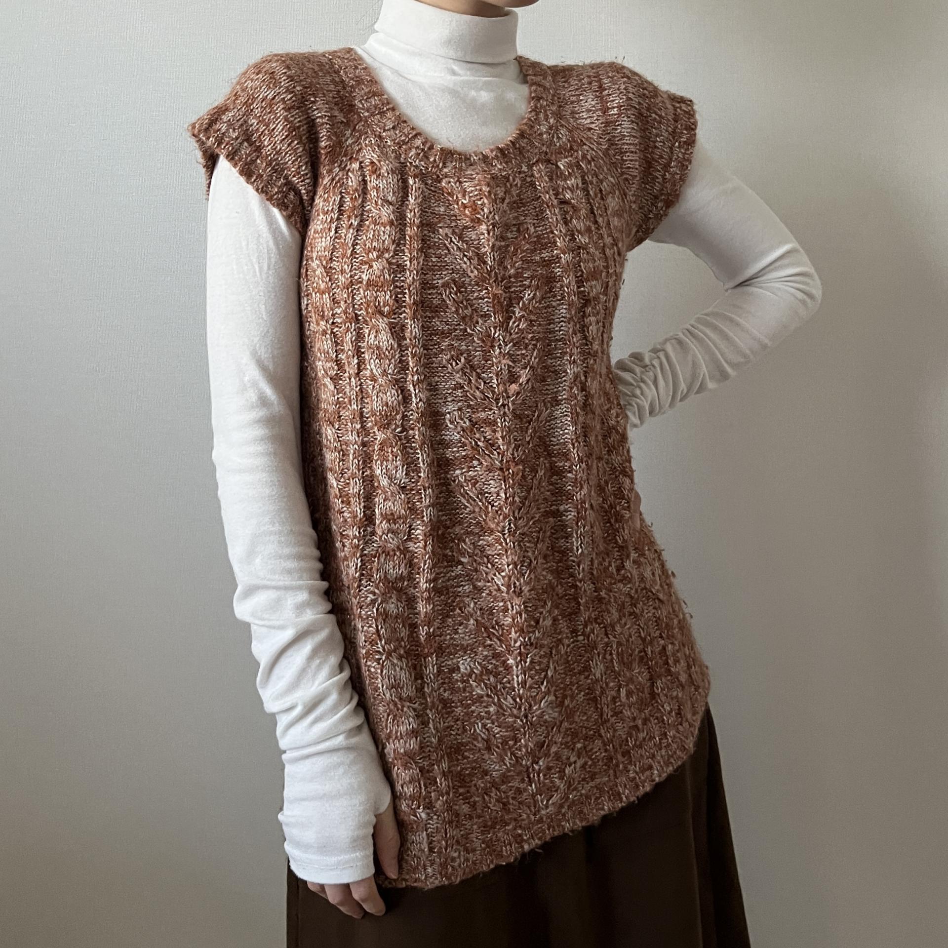 F/W 시즌에 잘 어울리는 웜톤 컬러와 독특한 실루엣이 인상적인 니트 제품입니다.