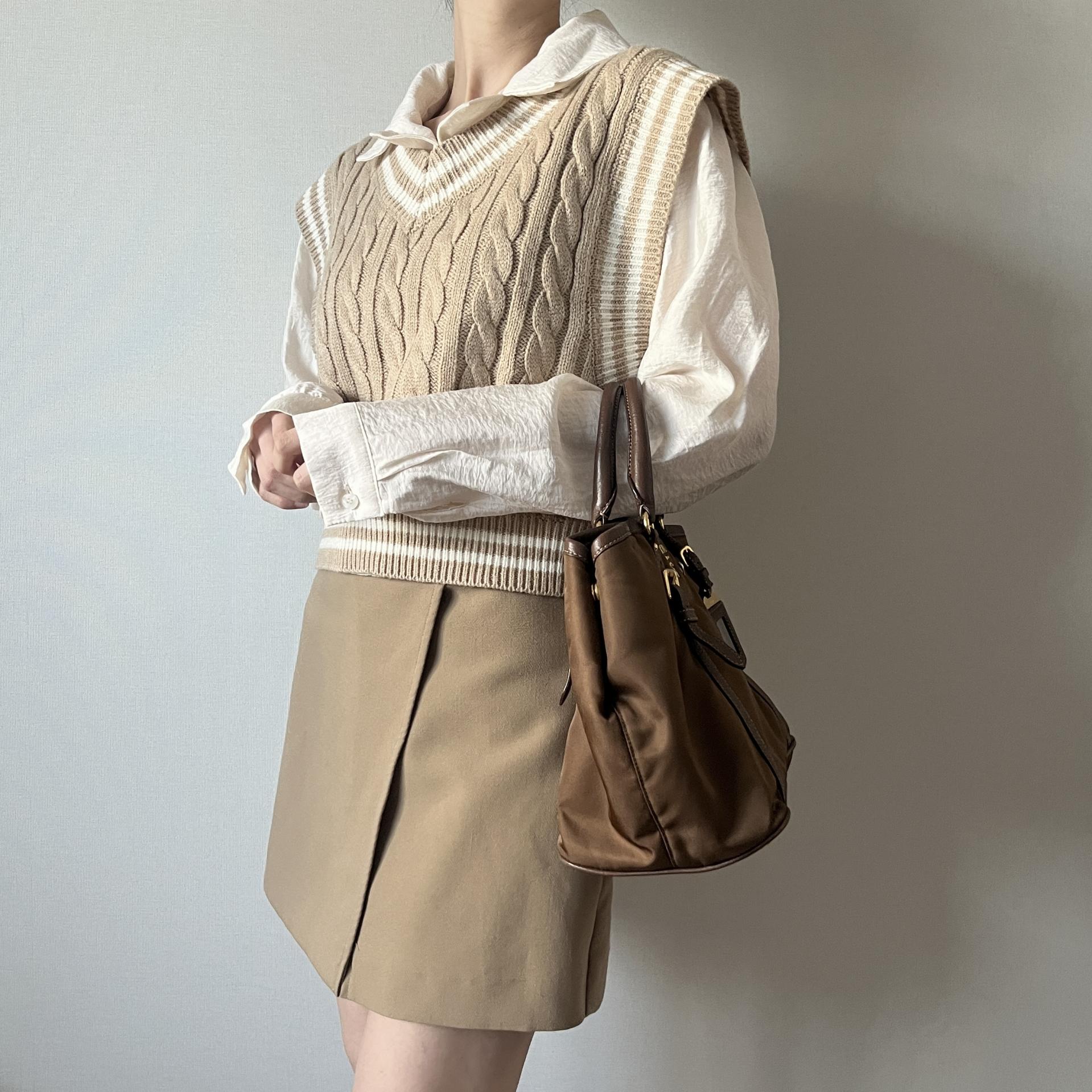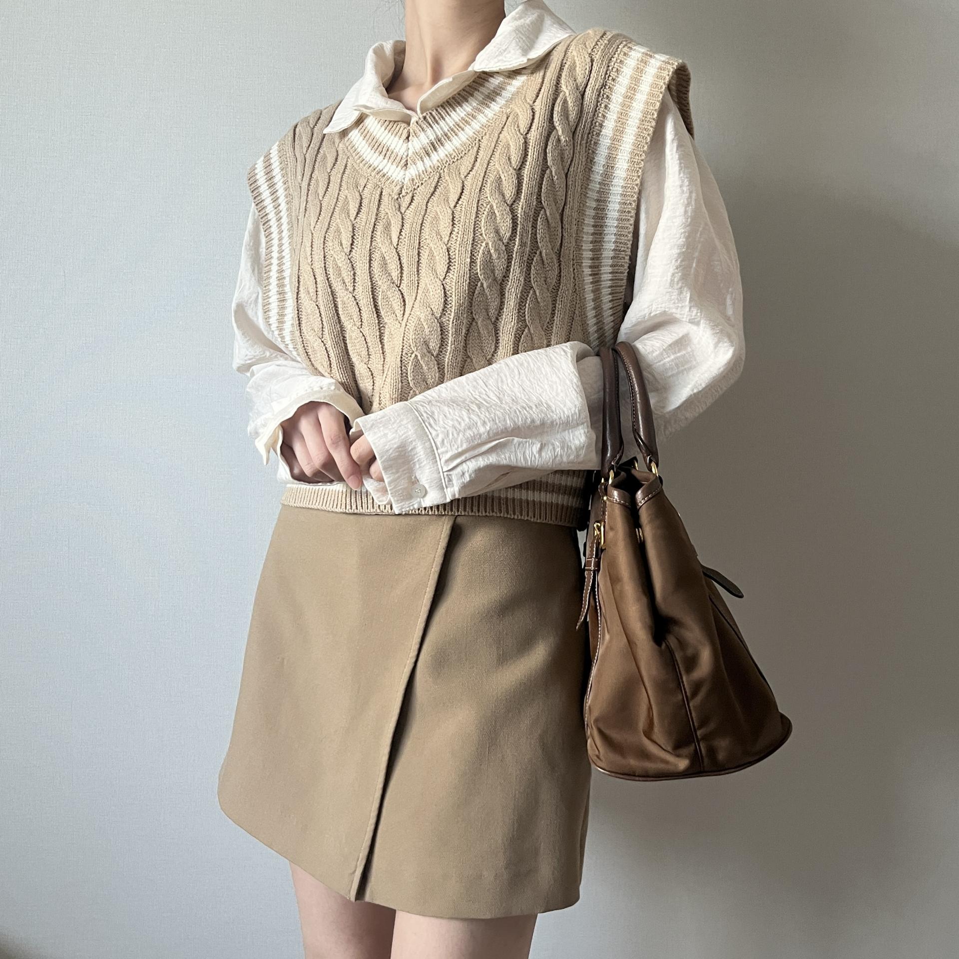 따뜻한 색감과 니트소재로 되어있어 셔츠 또는 목티 등 다양한 상의와 함께 코디하여 착용할 수있어 활용성이 높은 상품입니다.