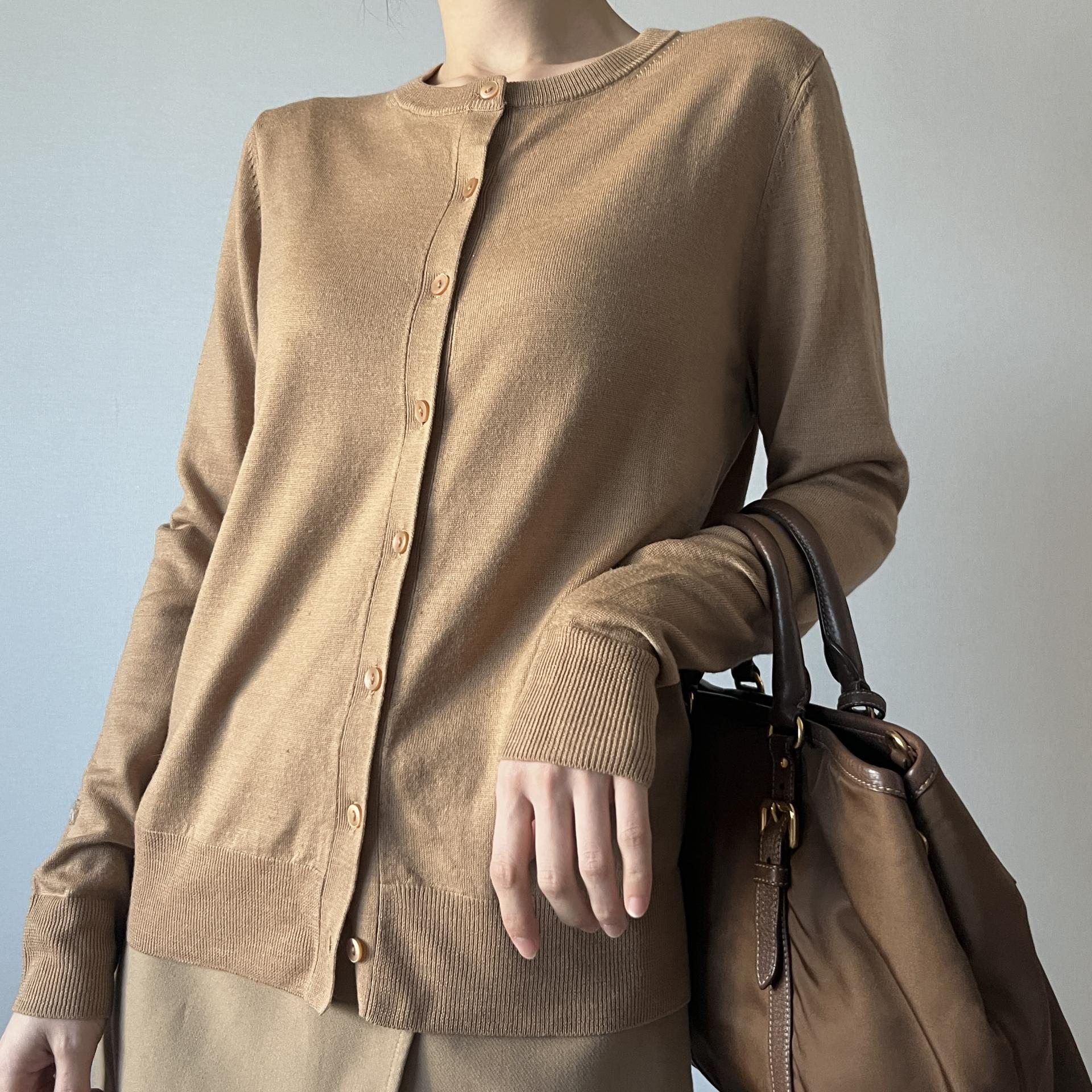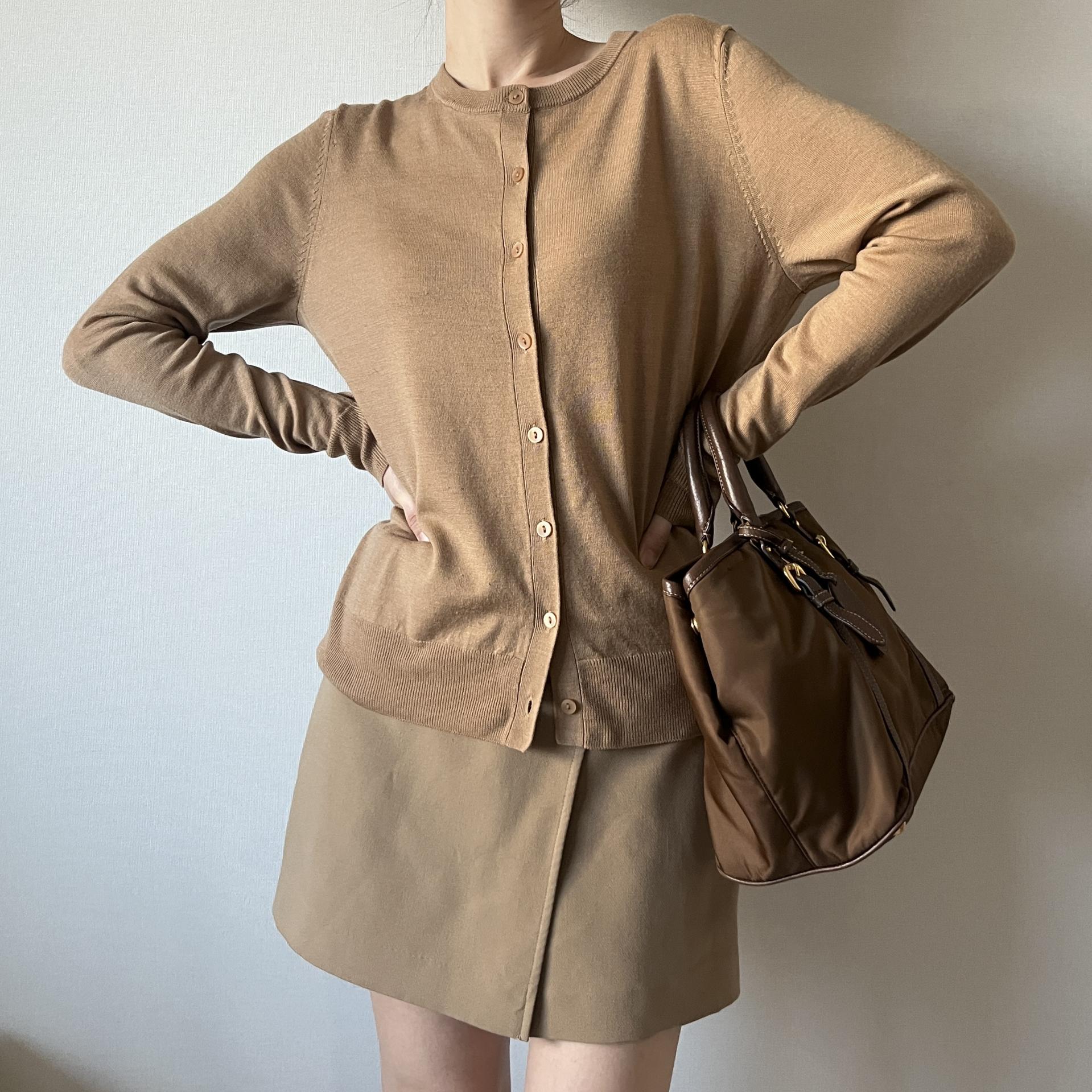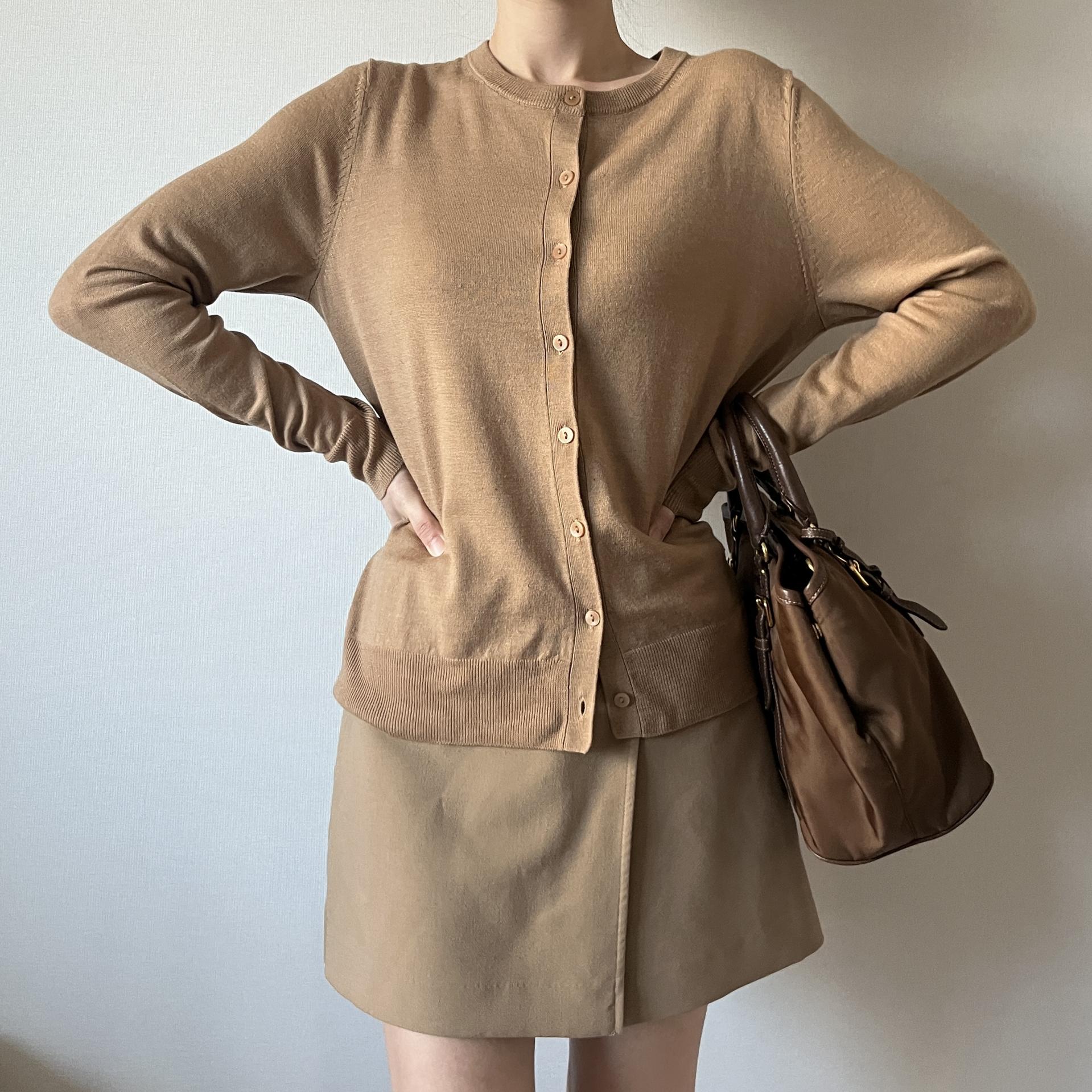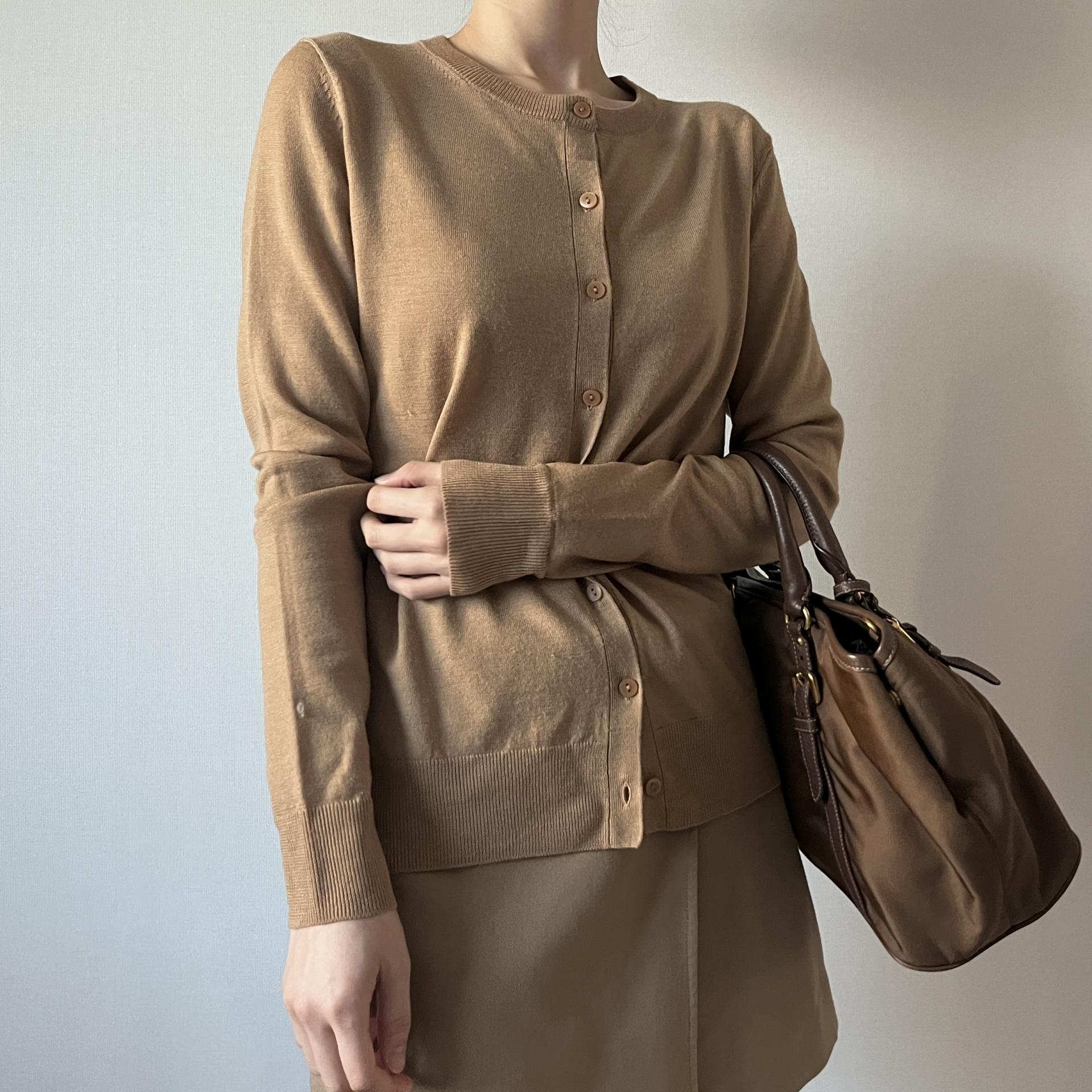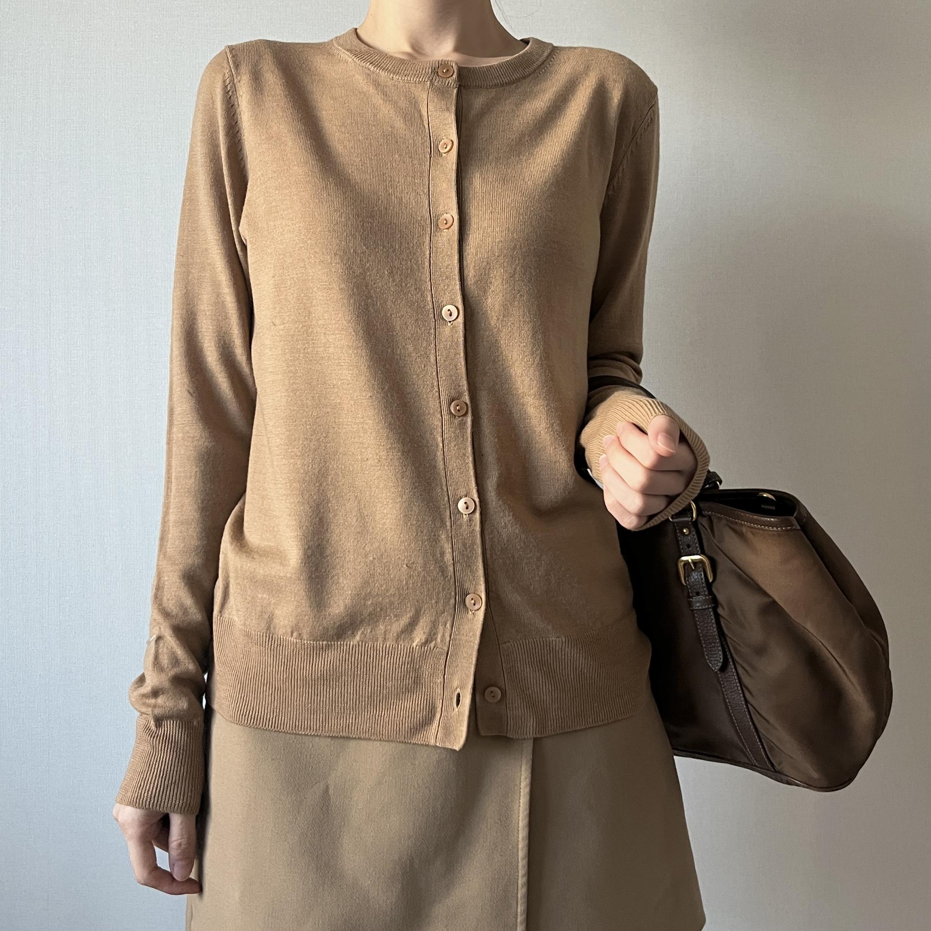 가장 기본적이면서도 깔끔하고 세련되어 클래식한 코디에 가장 잘 어울리는 가디건 상품이지 않을까 생각합니다.