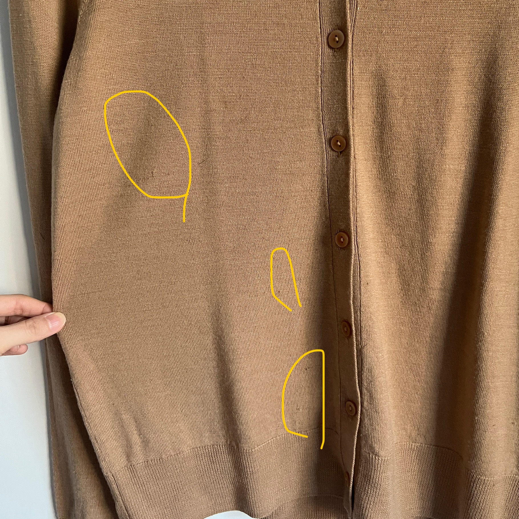 저희가 미처 체크하지 못한 데미지 ( 큰 오염, 색깔얼룩, 3cm 이상의 찢어짐 등) 가 확인될 시