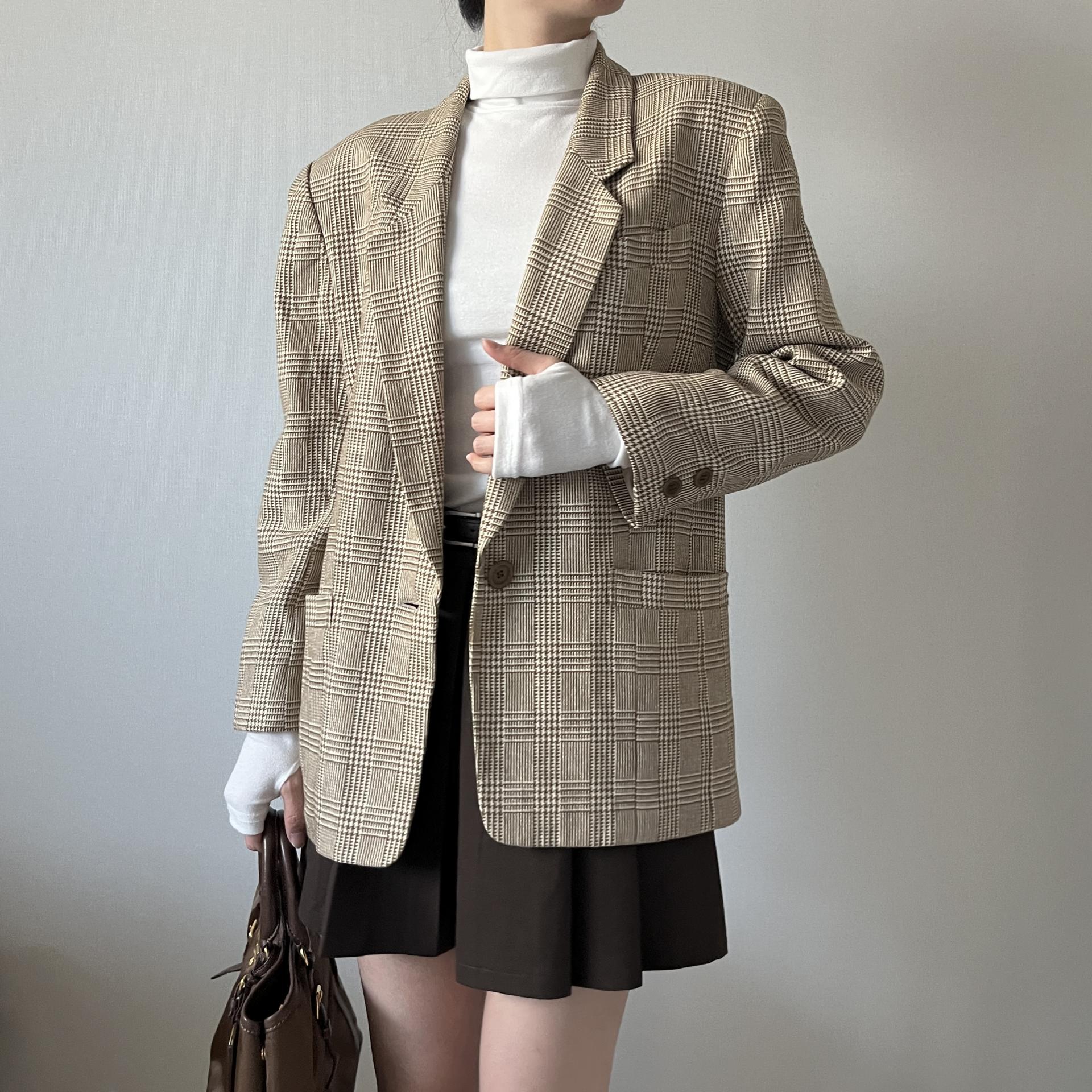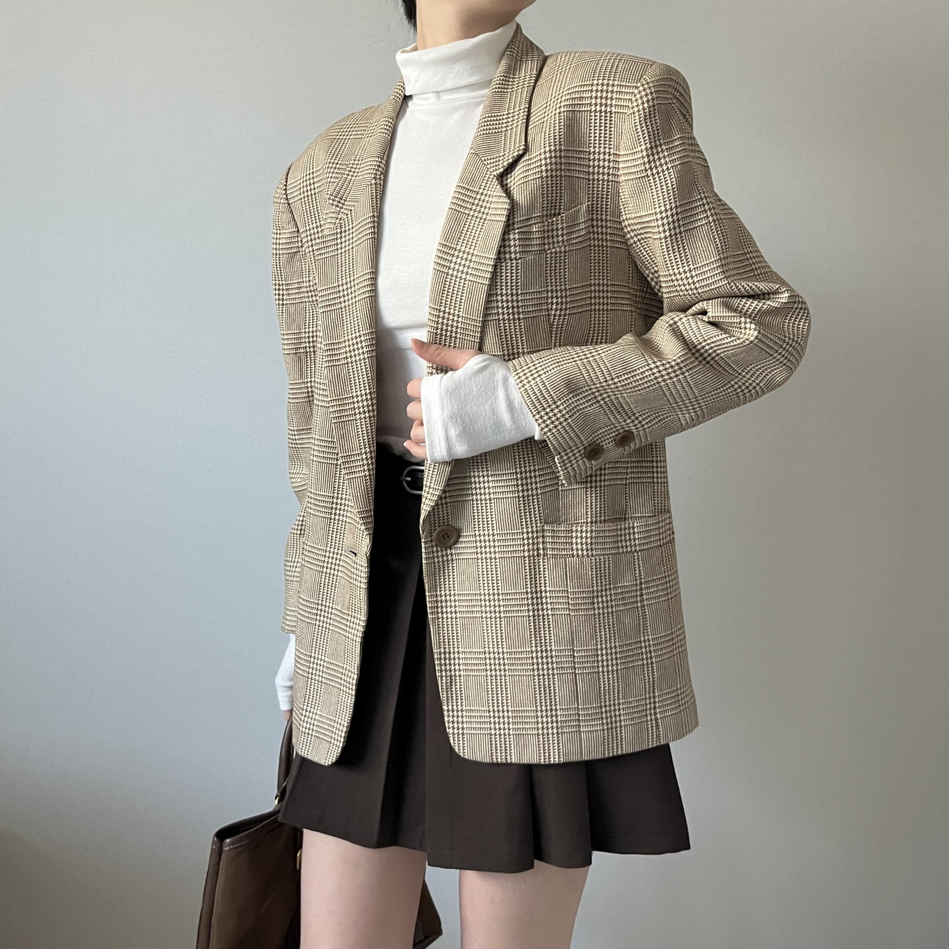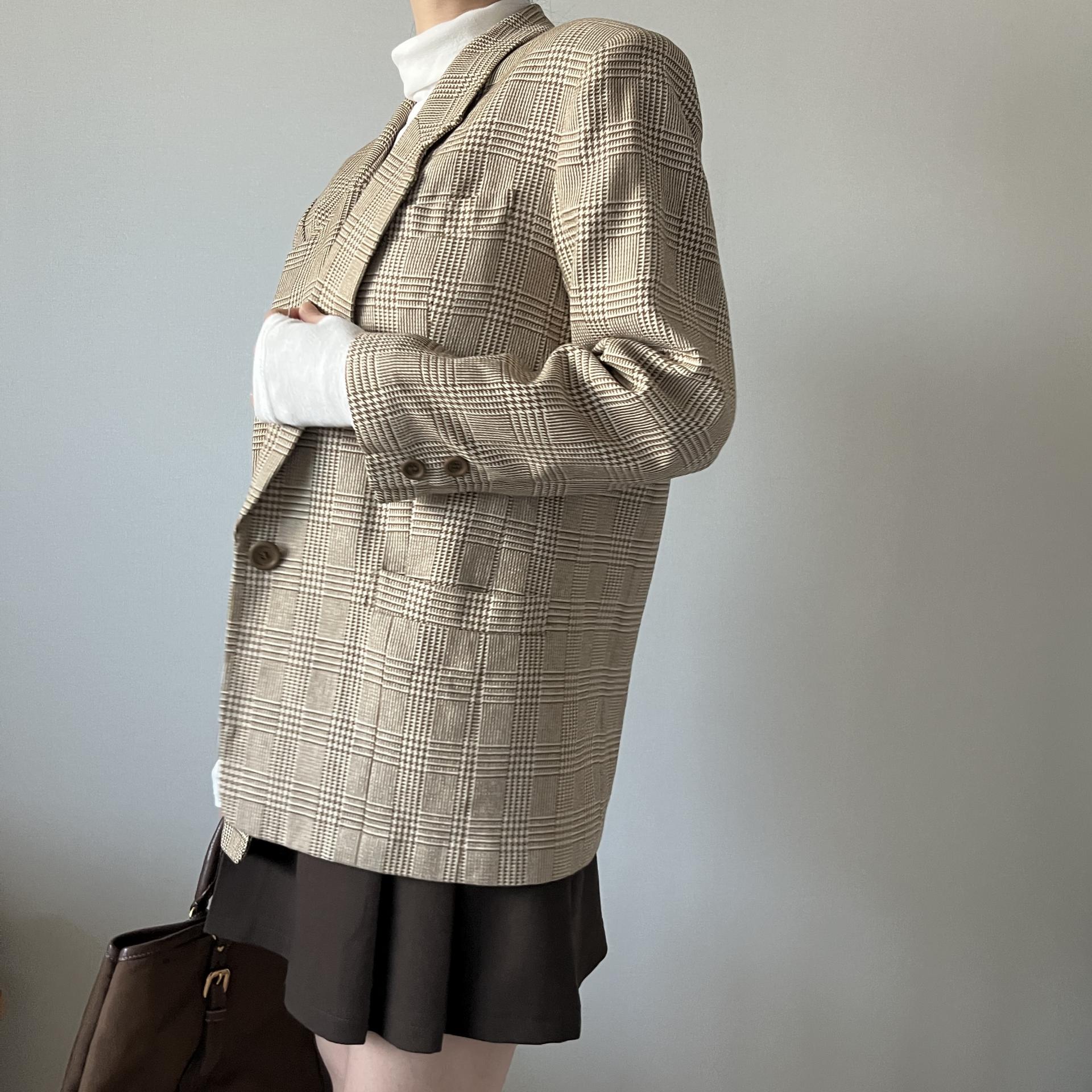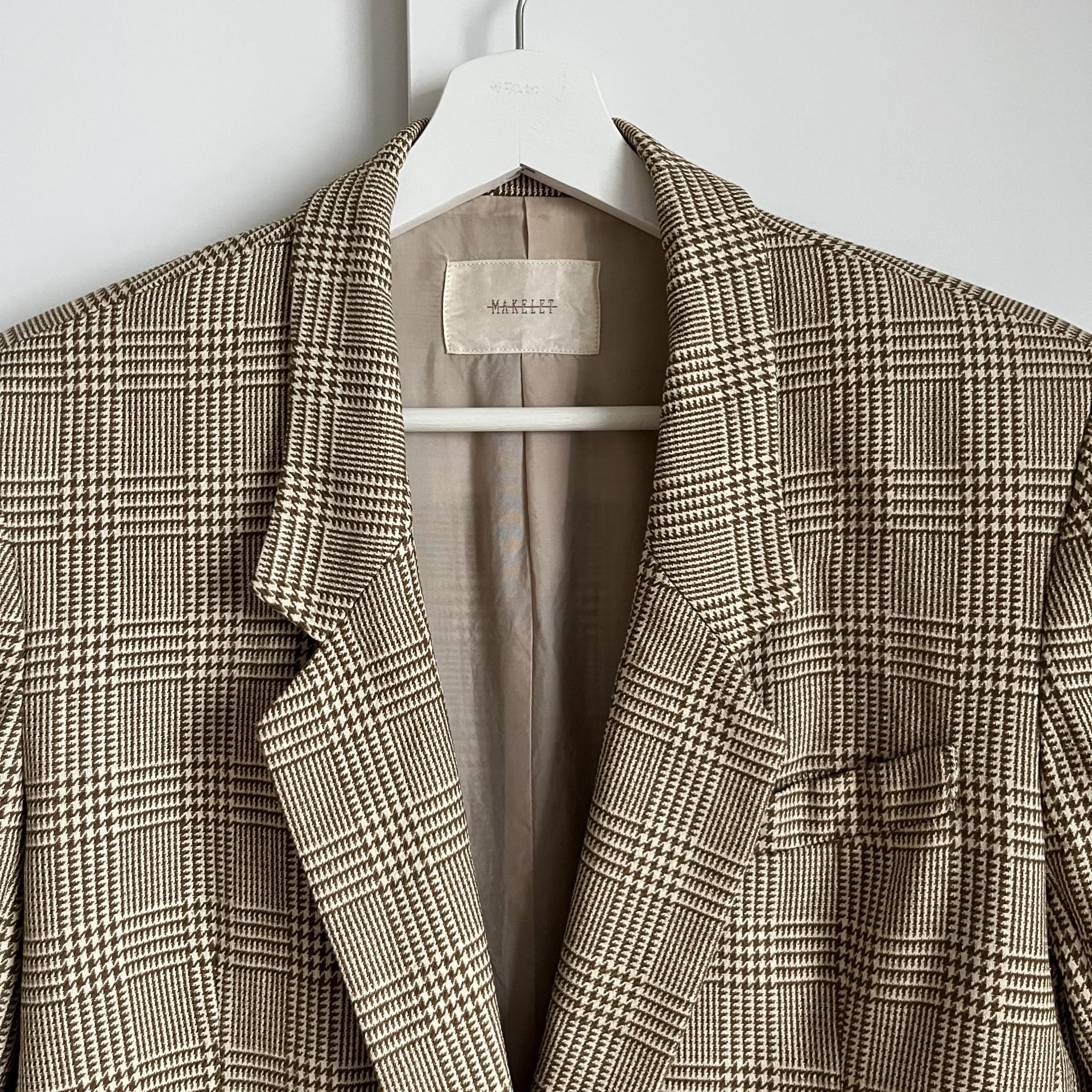 일본 현지 브랜드 MAKELET의 울 & 실크 체크 자켓 상품입니다.