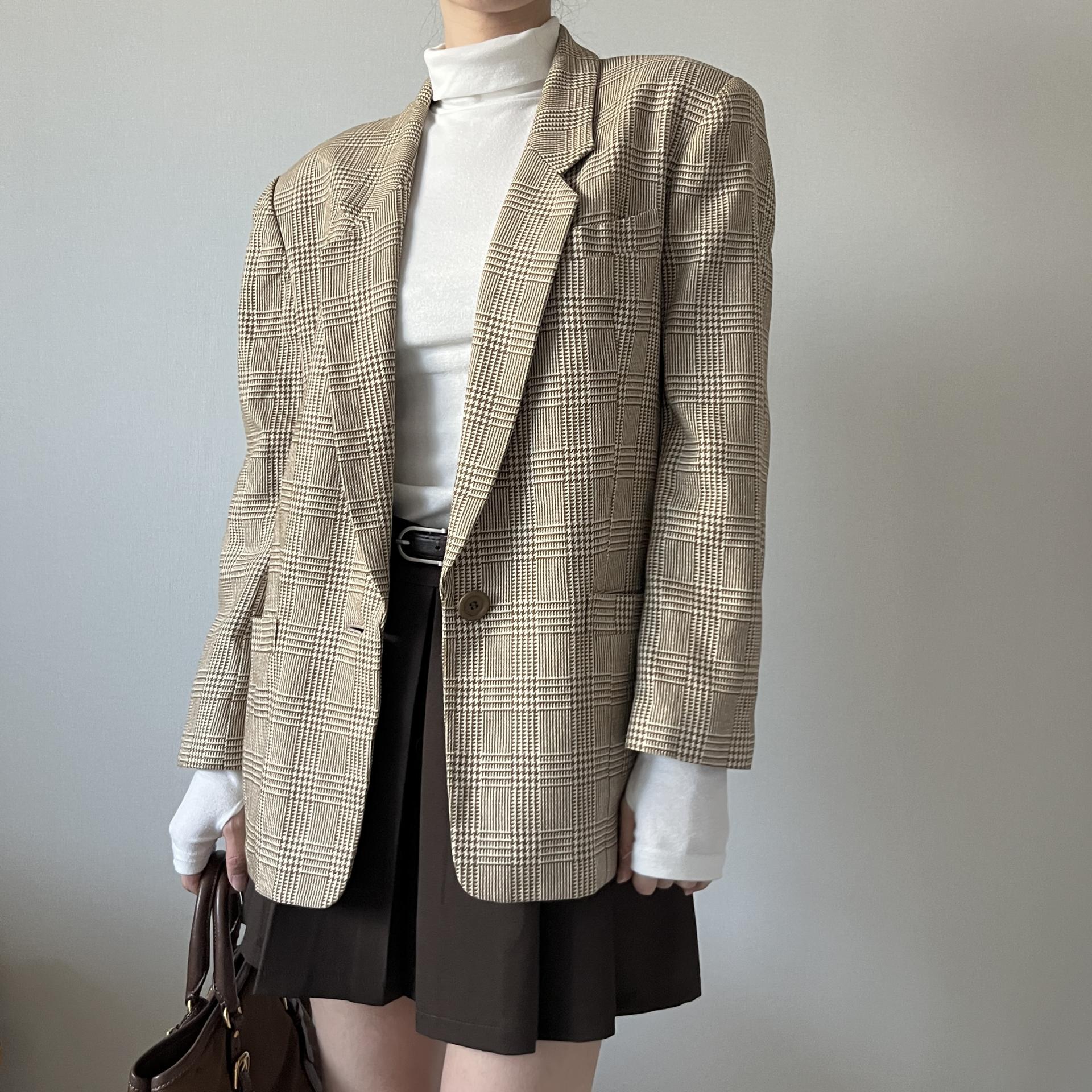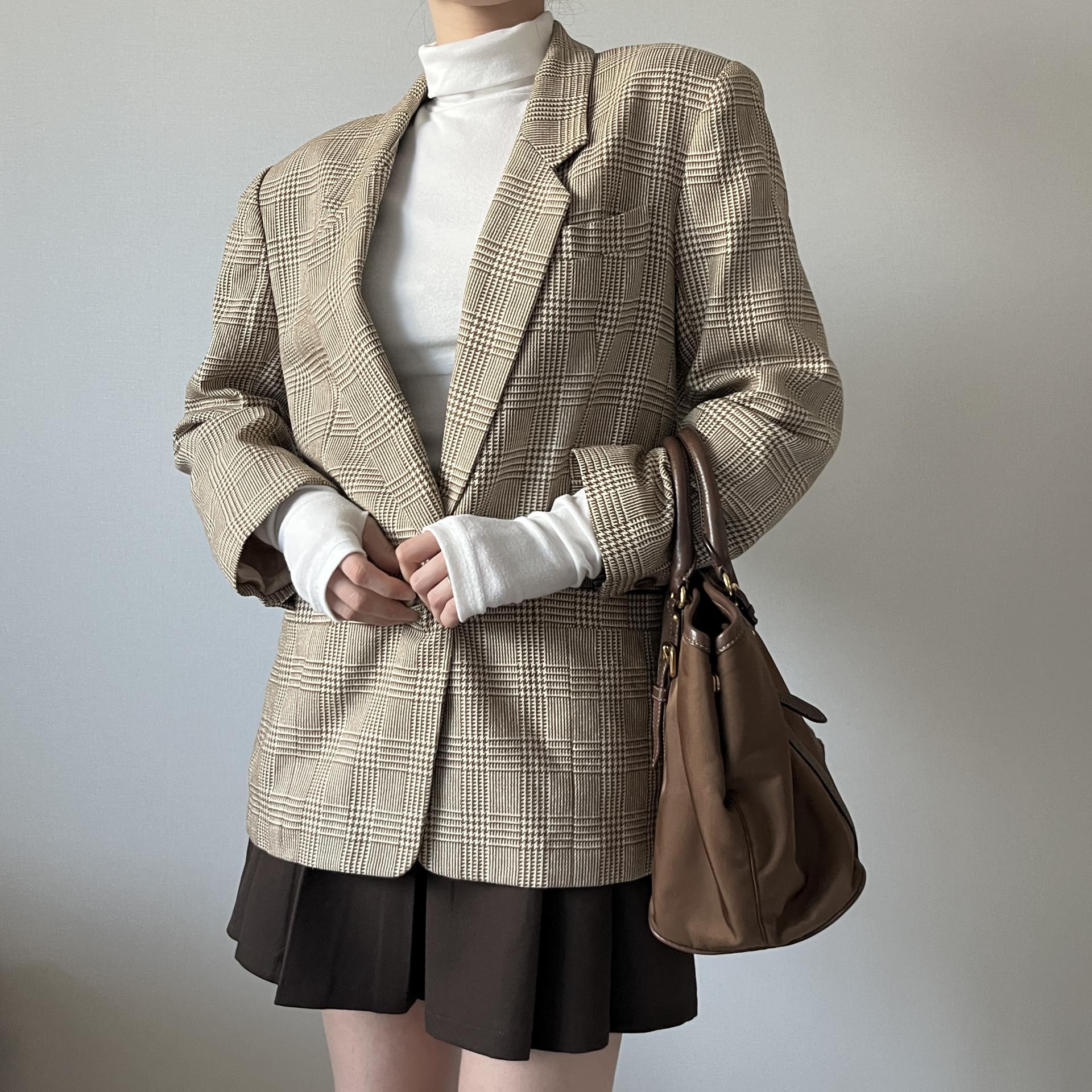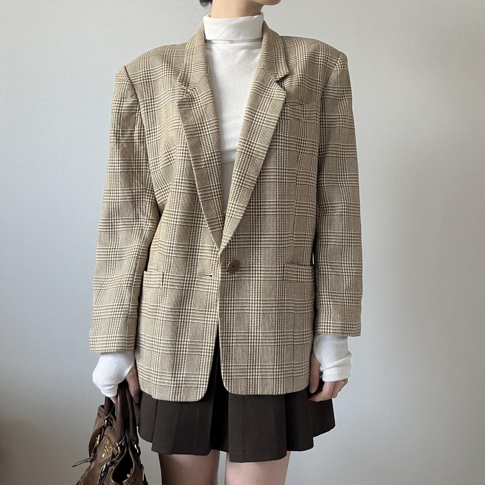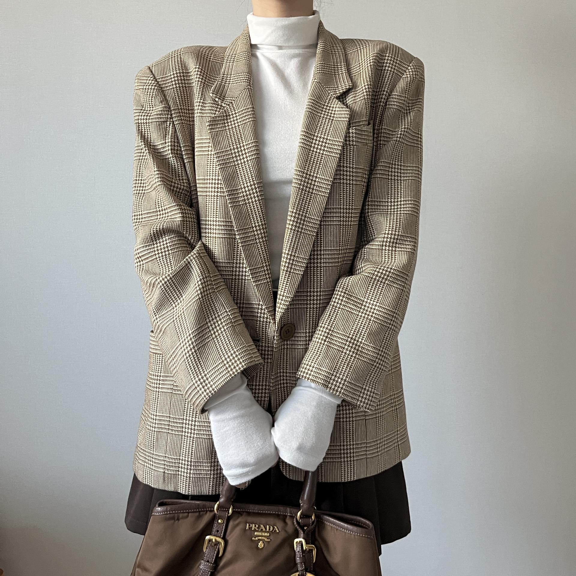 일본 현지 브랜드 MAKELET의 울 & 실크 체크 자켓 상품입니다.