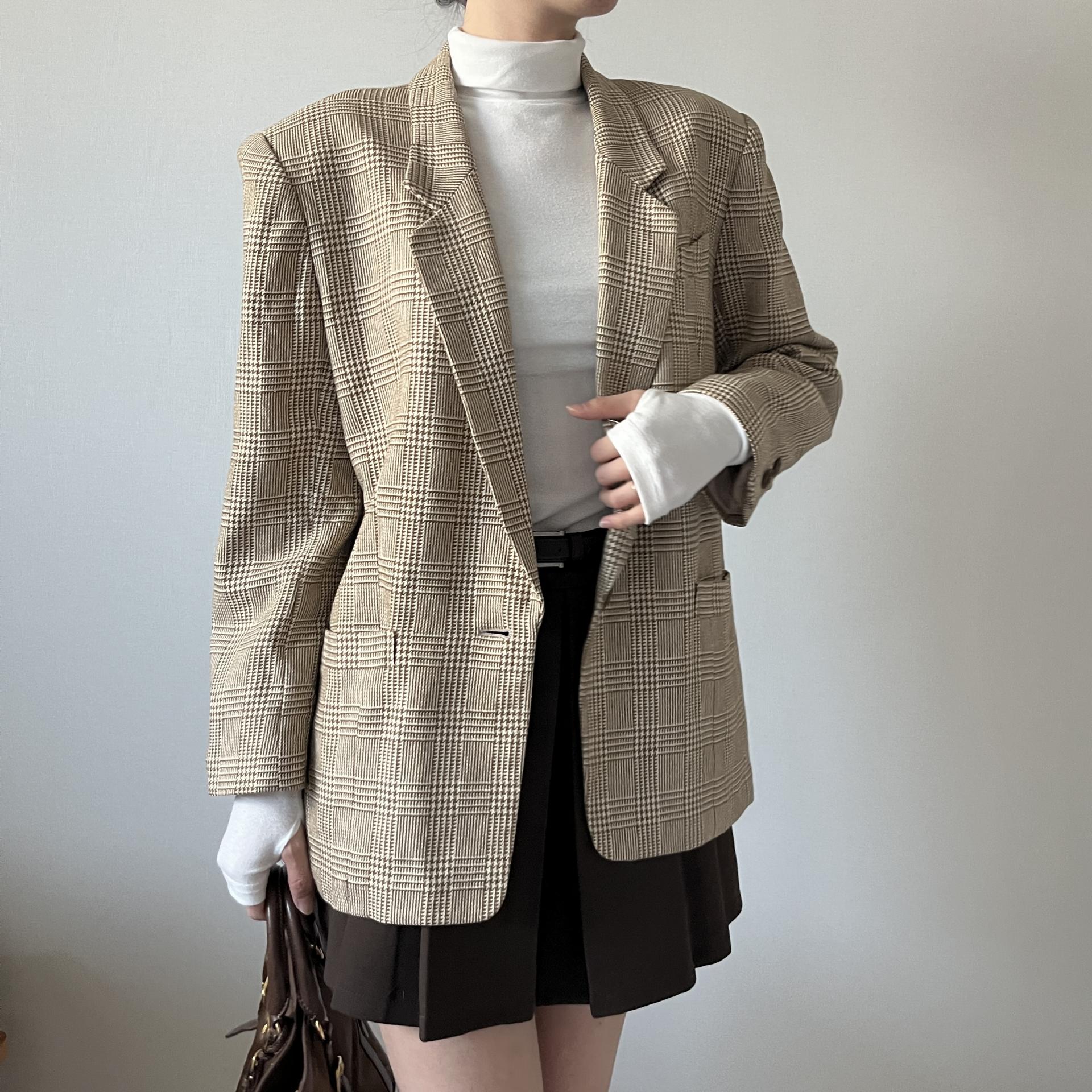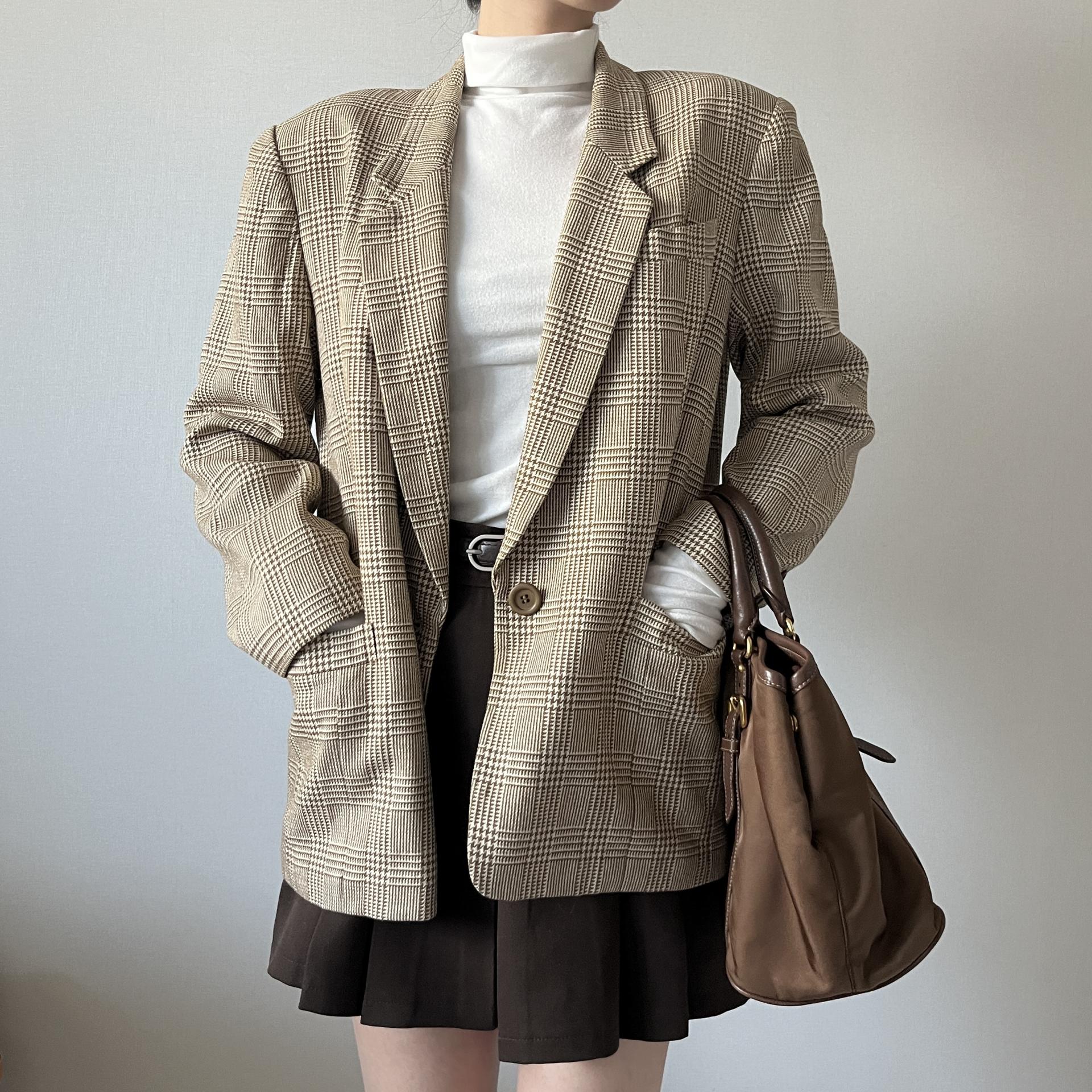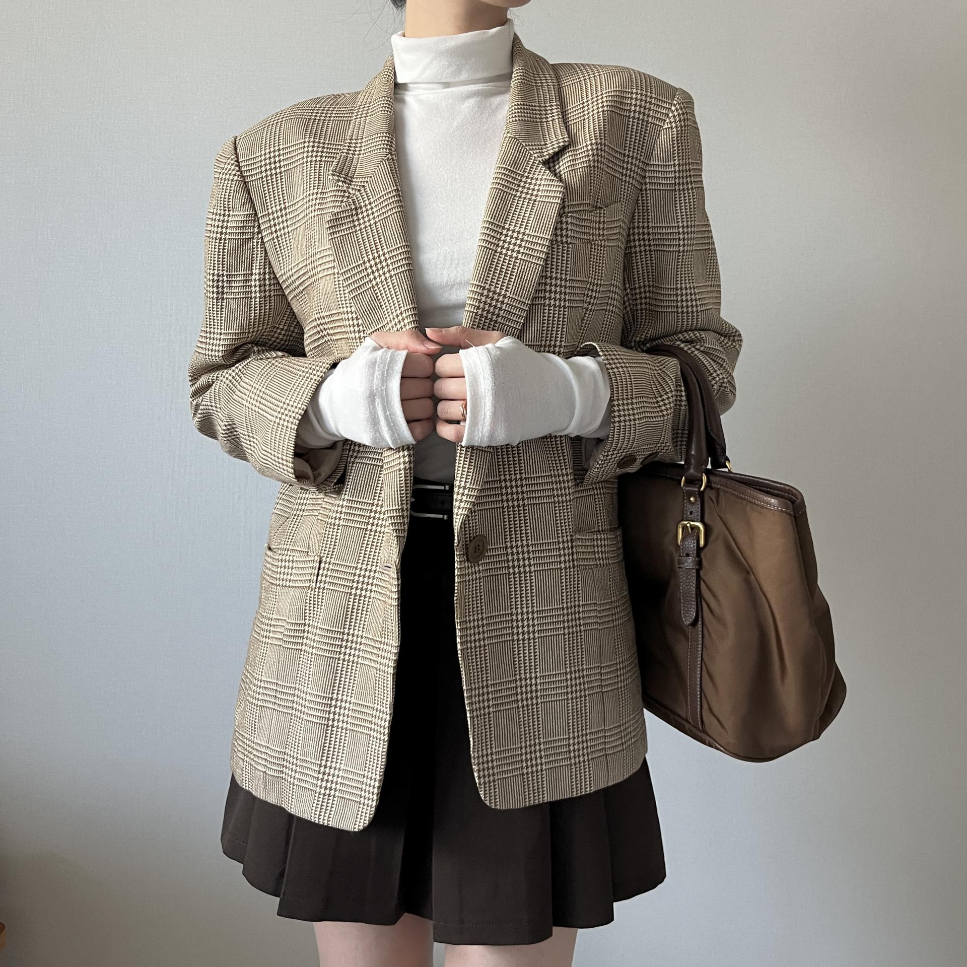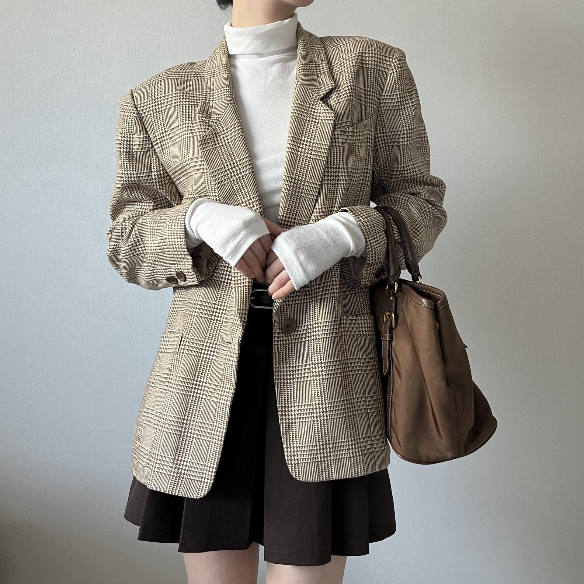 일본 현지 브랜드 MAKELET의 울 & 실크 체크 자켓 상품입니다.