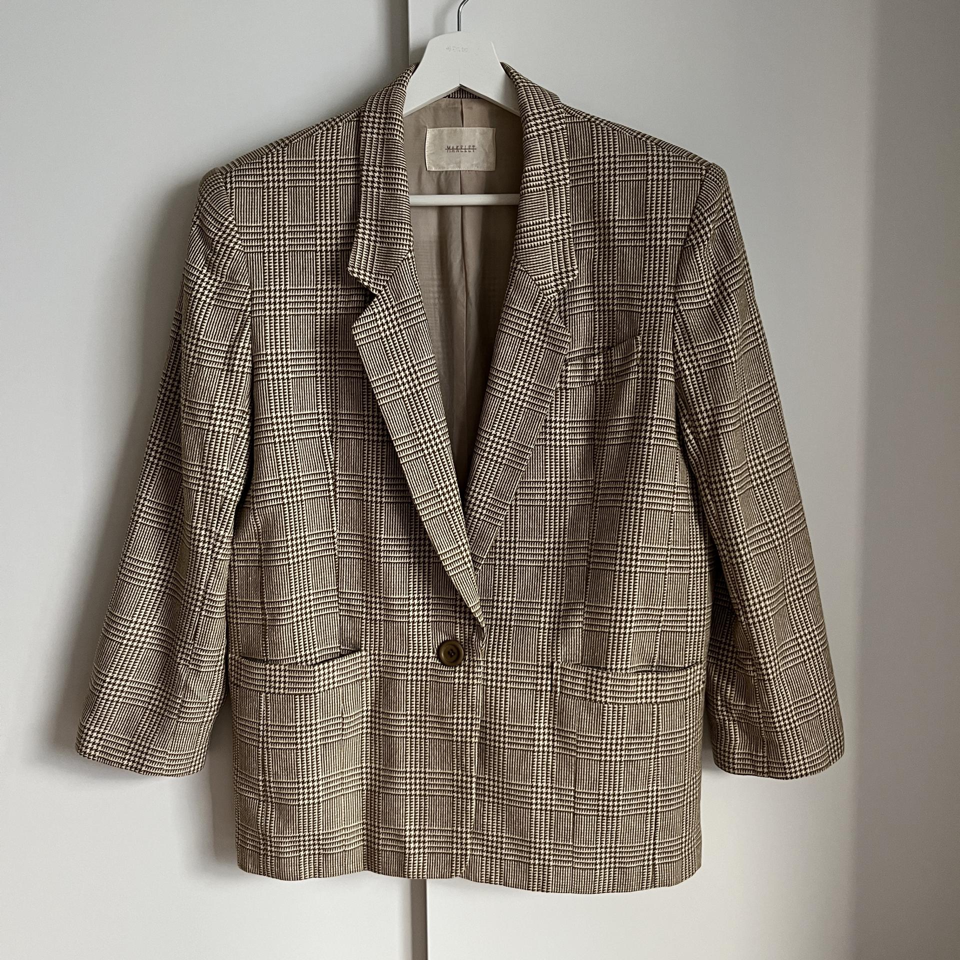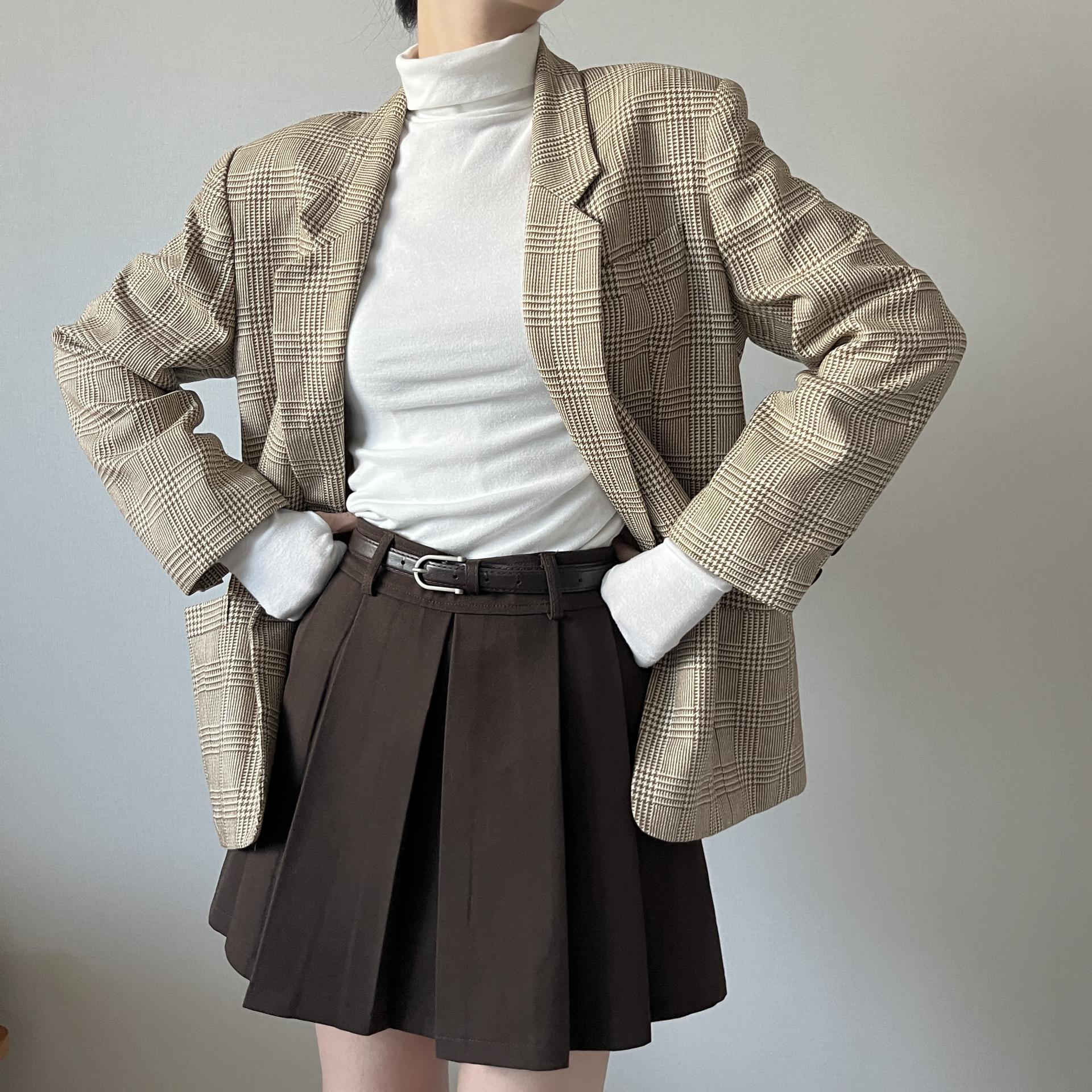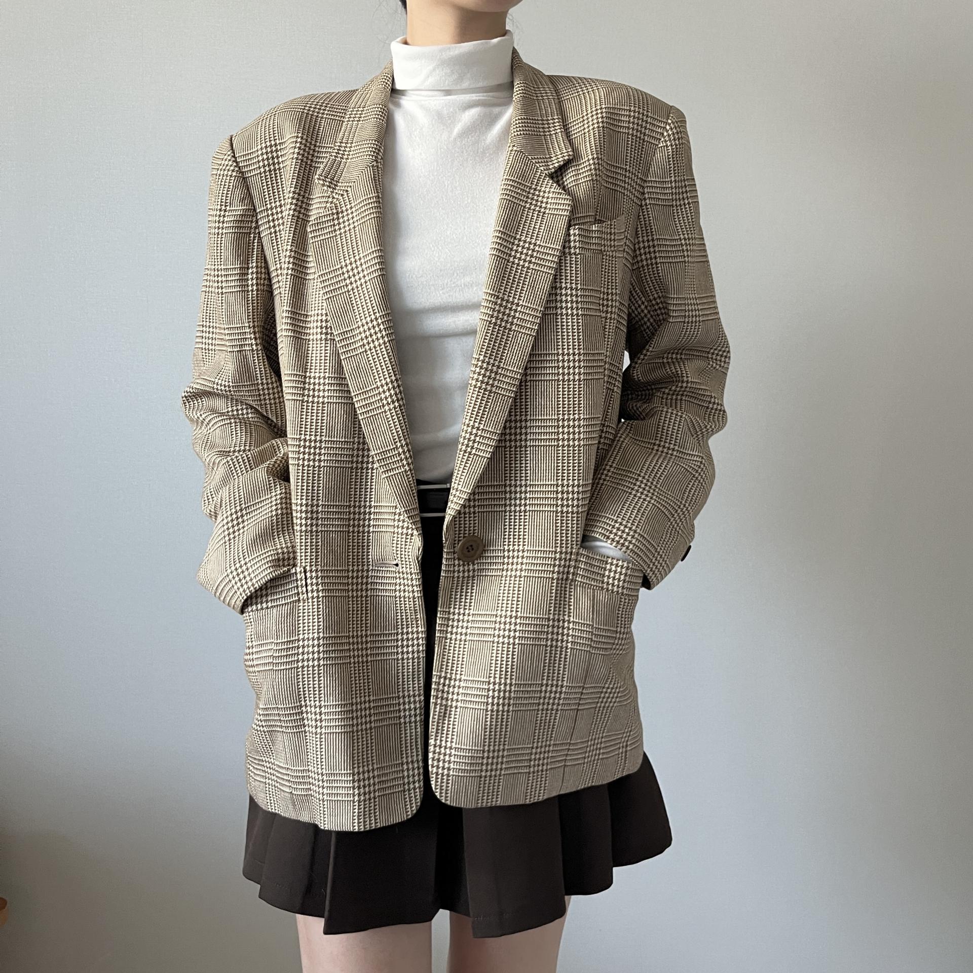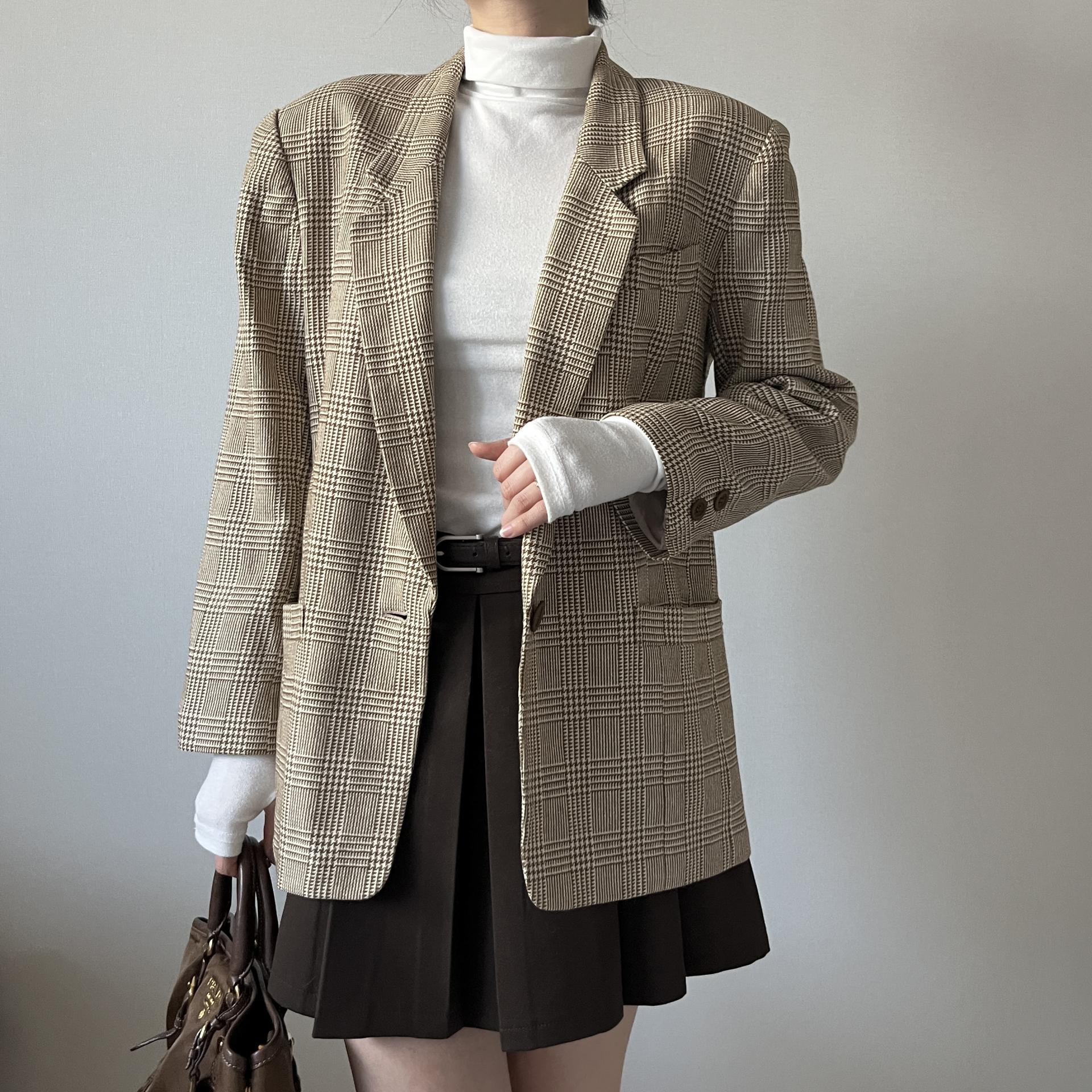 일본 현지 브랜드 MAKELET의 울 & 실크 체크 자켓 상품입니다.