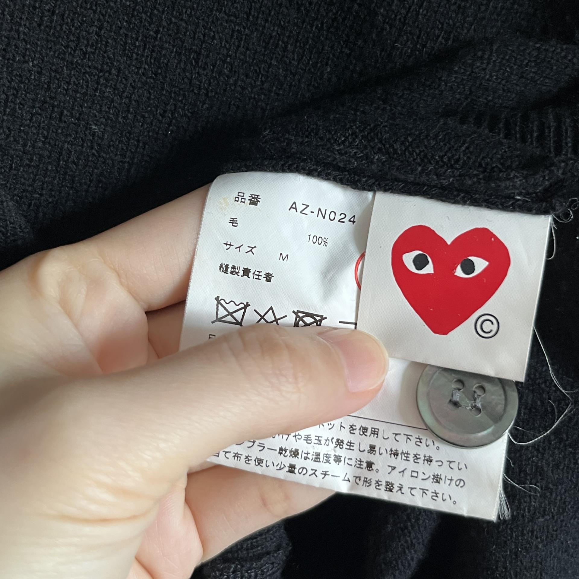 꼼데가르송의 블랙 하트 와펜 가디건 상품입니다.