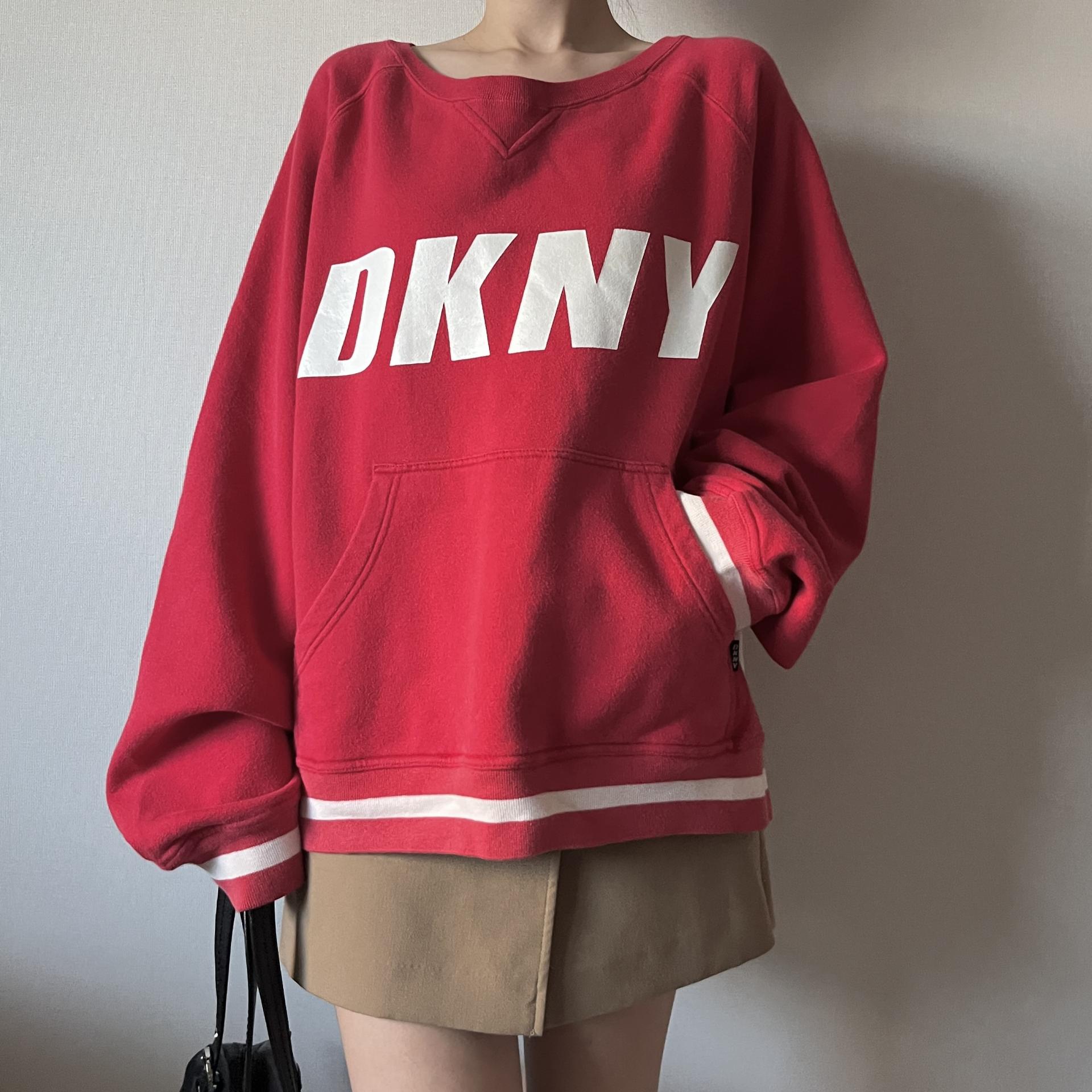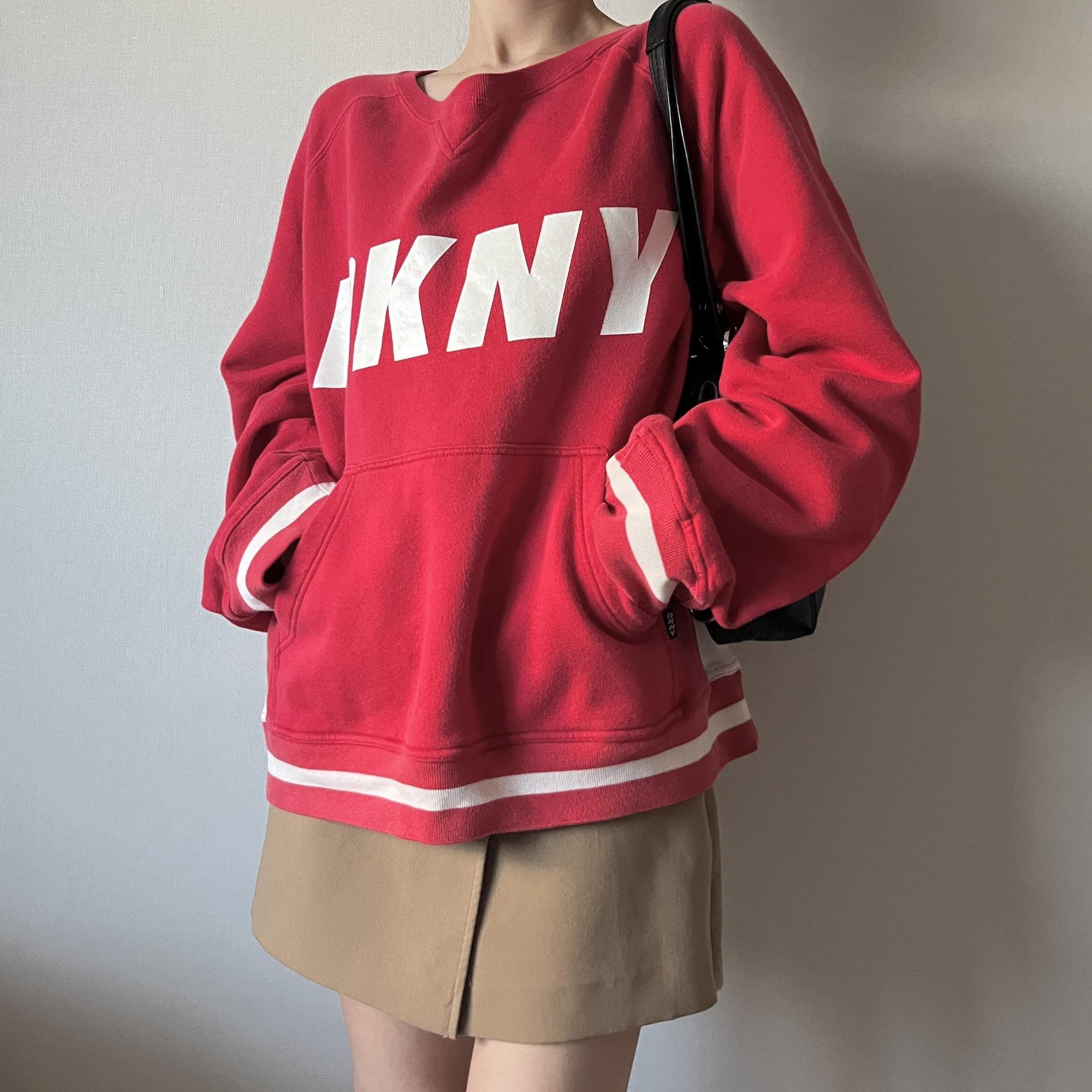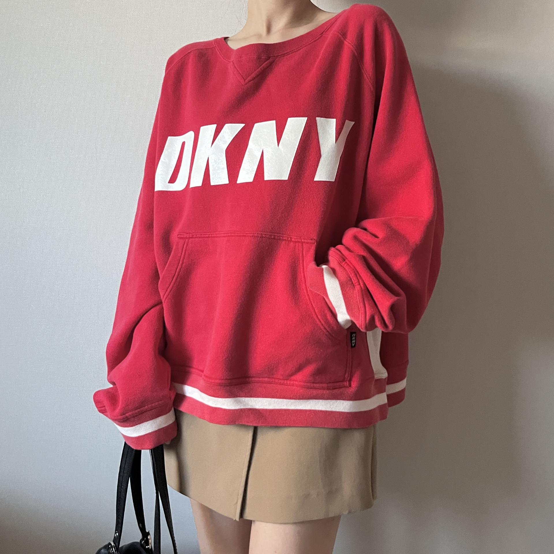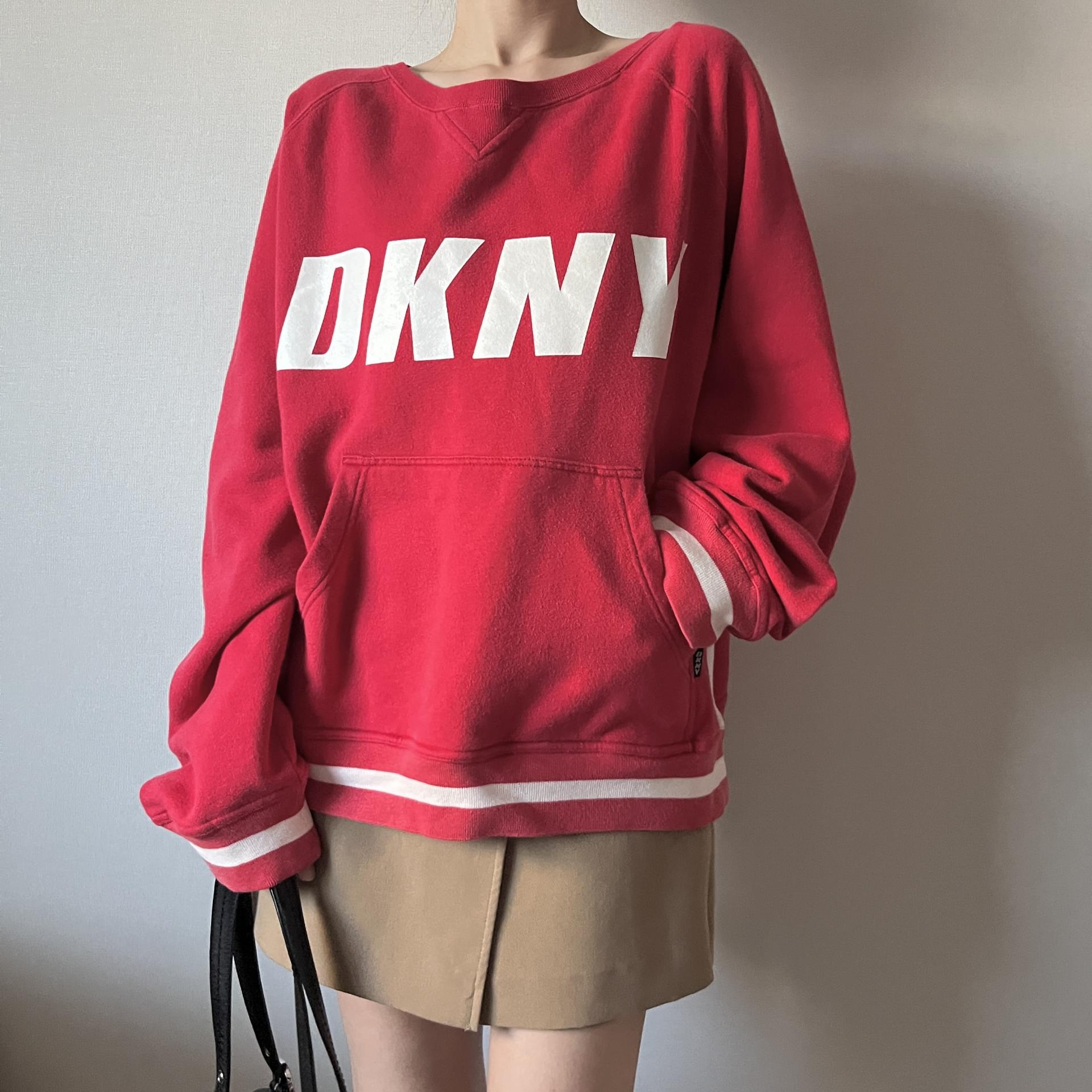 90년대 특유의 무드가 느껴지는 실루엣과 자연스럽고 멋스러운 빈티지함이 돋보이는 DKNY의 90년대 스웻셔츠 상품입니다.