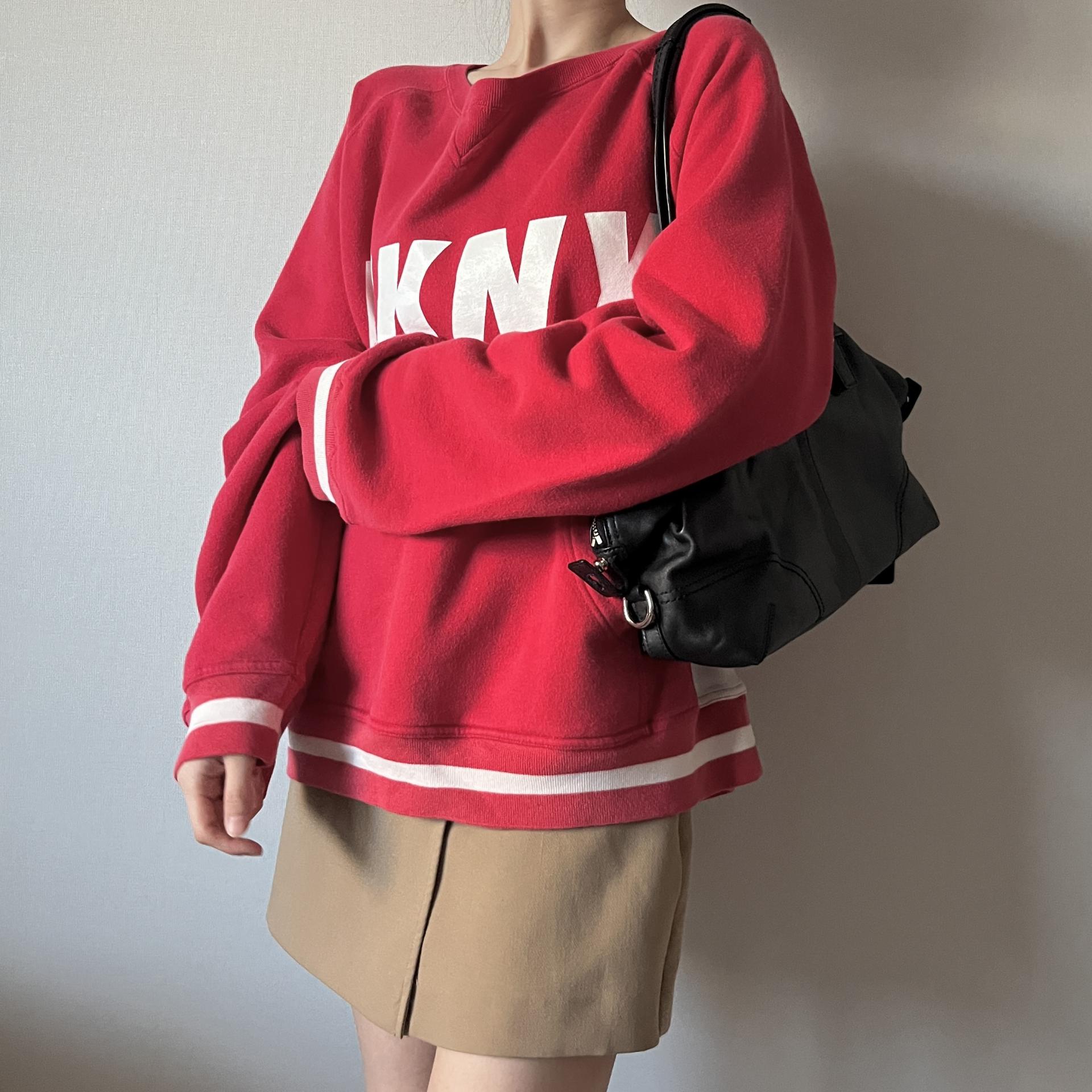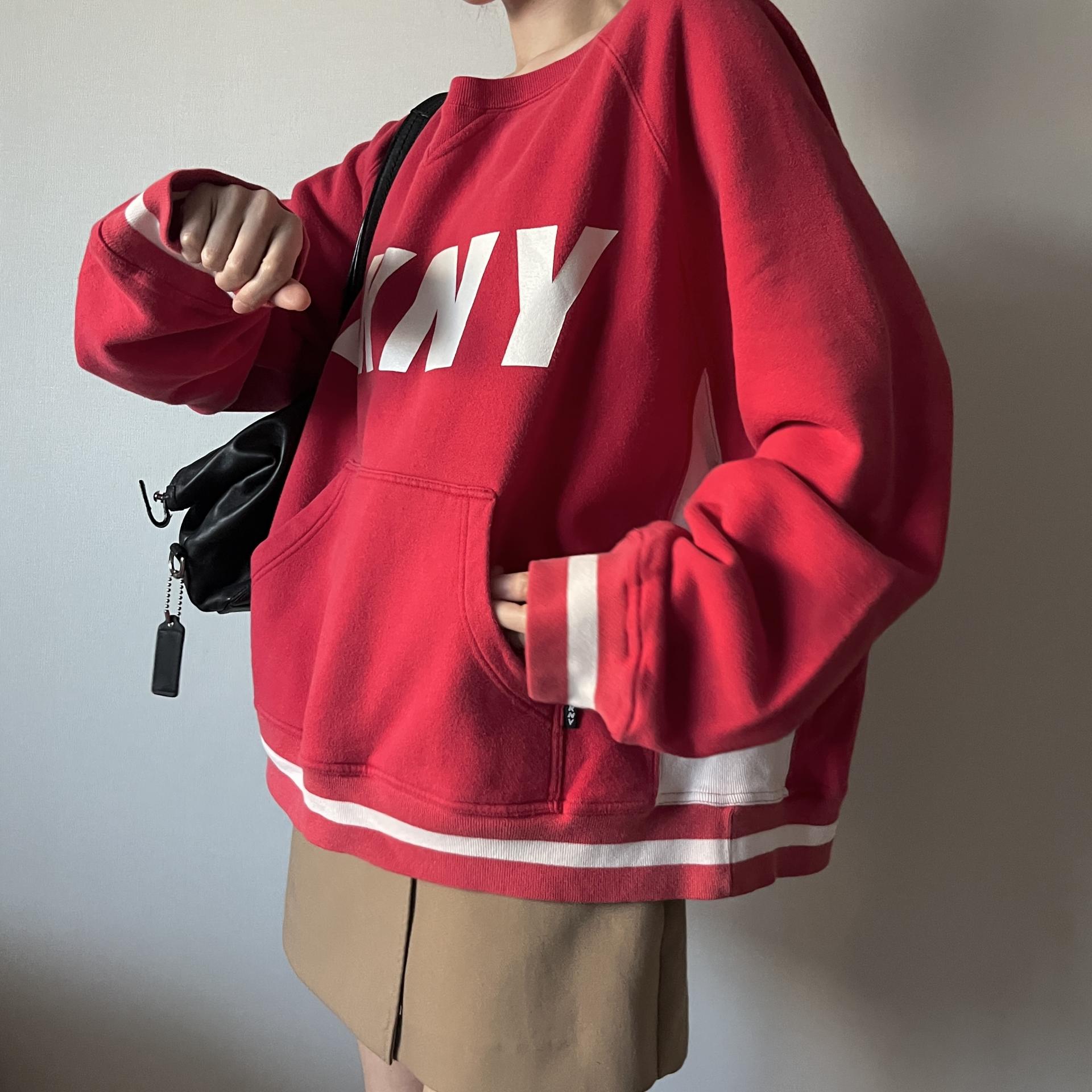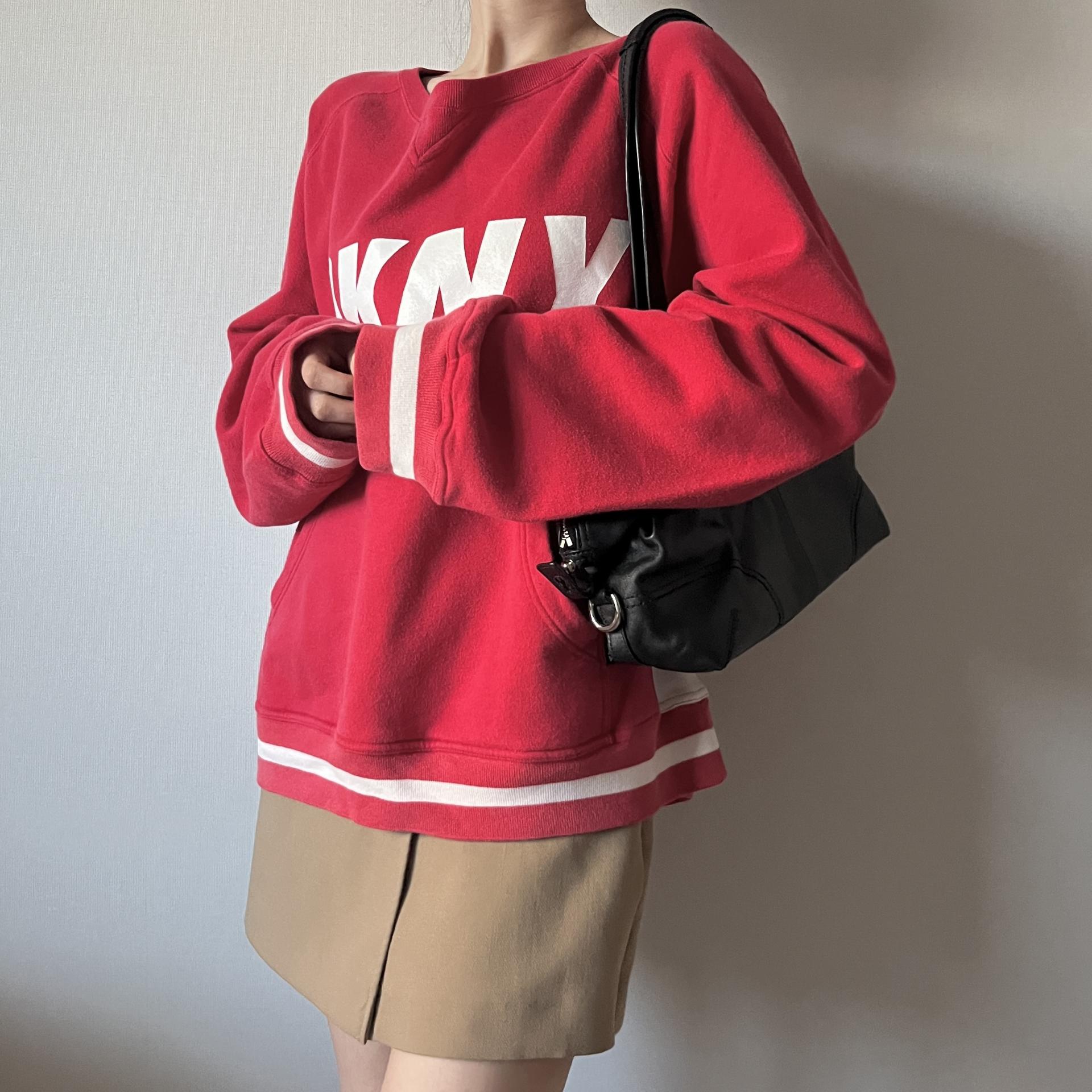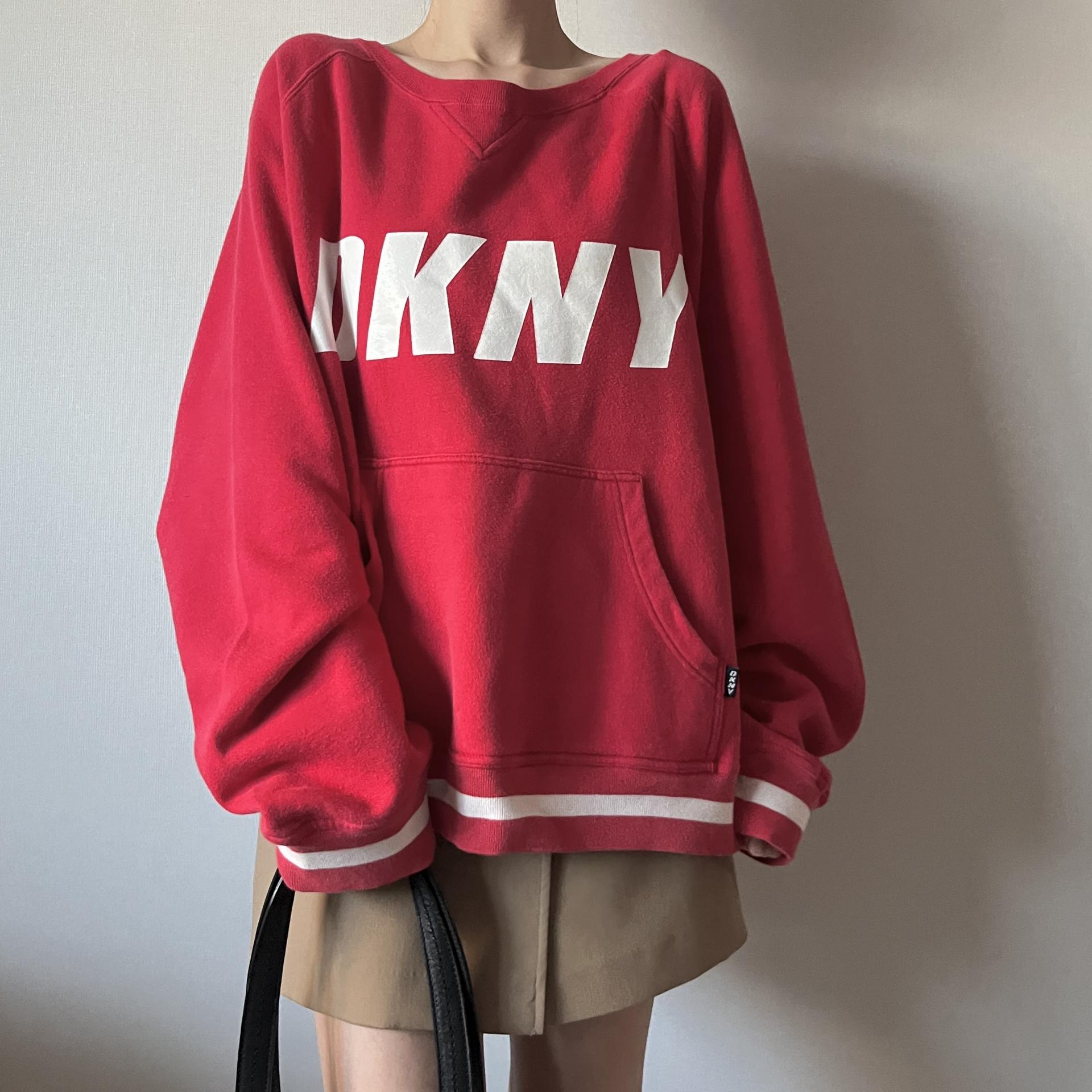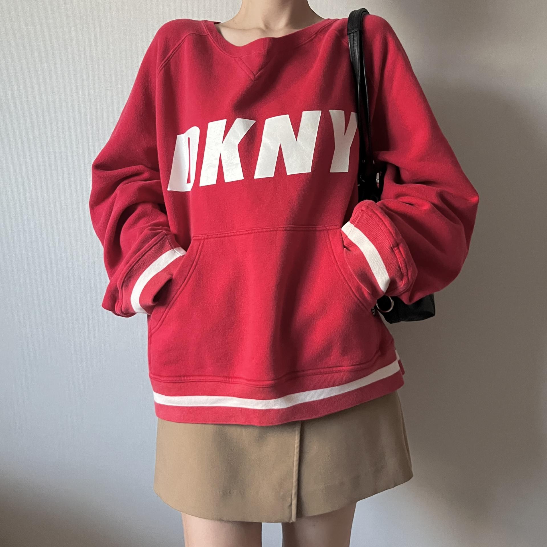 90년대 특유의 무드가 느껴지는 실루엣과 자연스럽고 멋스러운 빈티지함이 돋보이는 DKNY의 90년대 스웻셔츠 상품입니다.