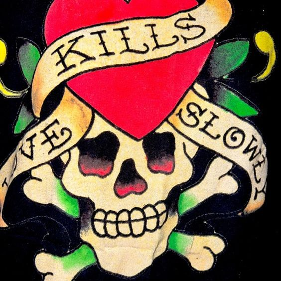 에드 하디는 미국 타투 아티스트 Don Ed Hardy의 작품에서 영감을 받아 브랜드가 시작되었습니다. 그의 디자인 특징 중 하나는 과감하고 화려한 타투 스타일의 이미지입니다.