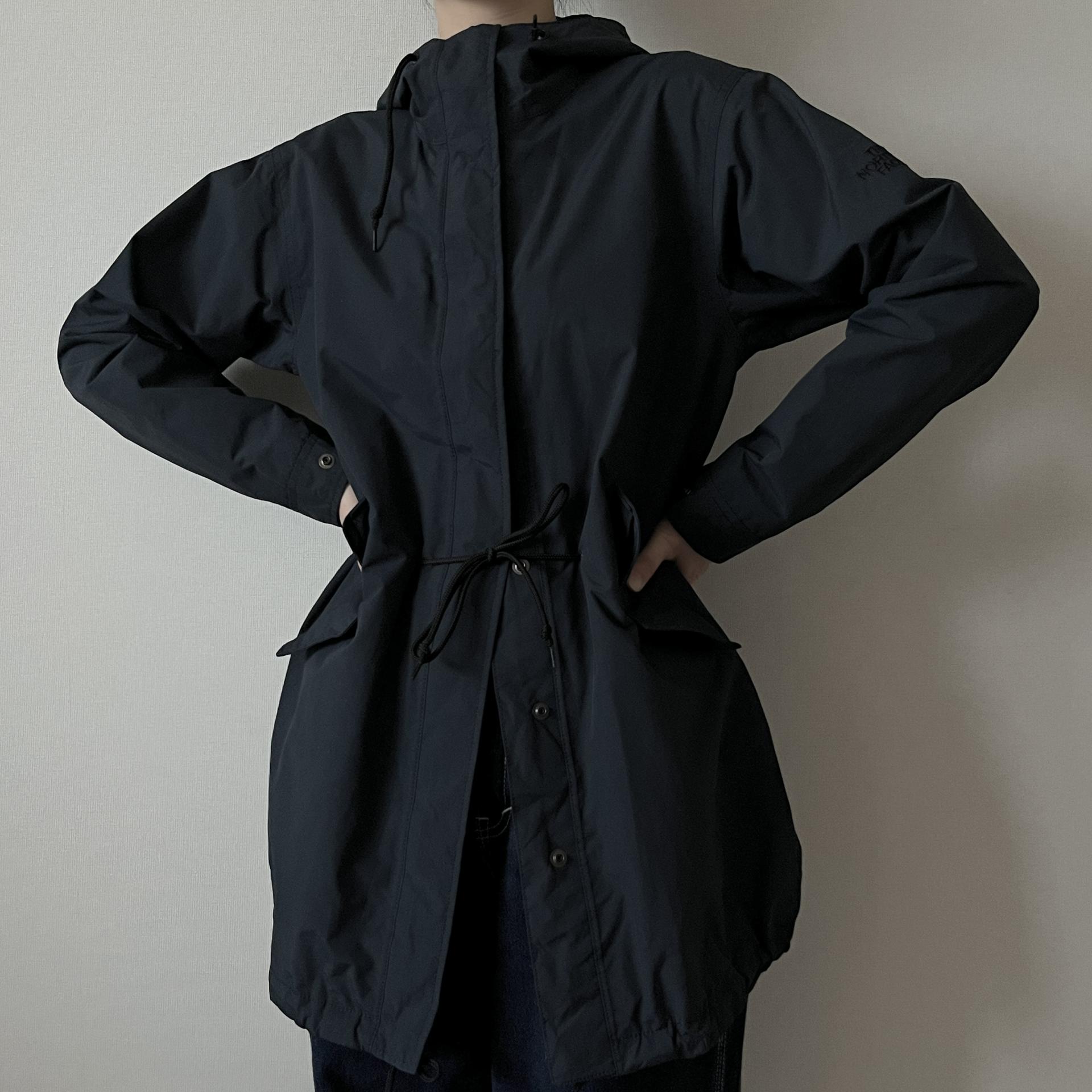 허리부분을 끈으로 조절하여 몸에 맞게 착용할 수 있으며, 소매부분에 노스페이스 로고자수 포인트가 존재하며