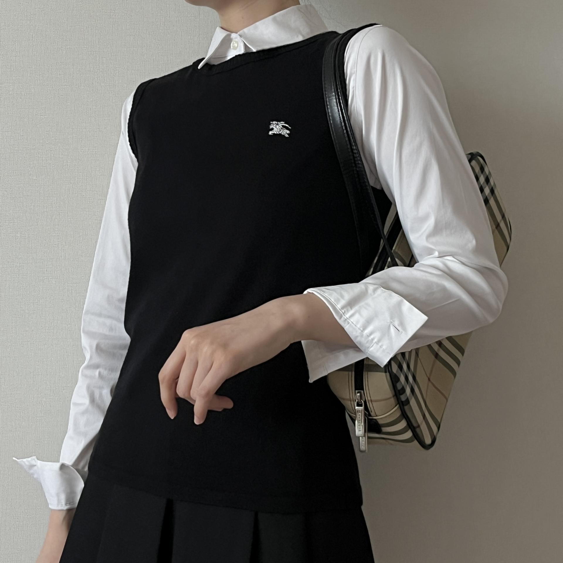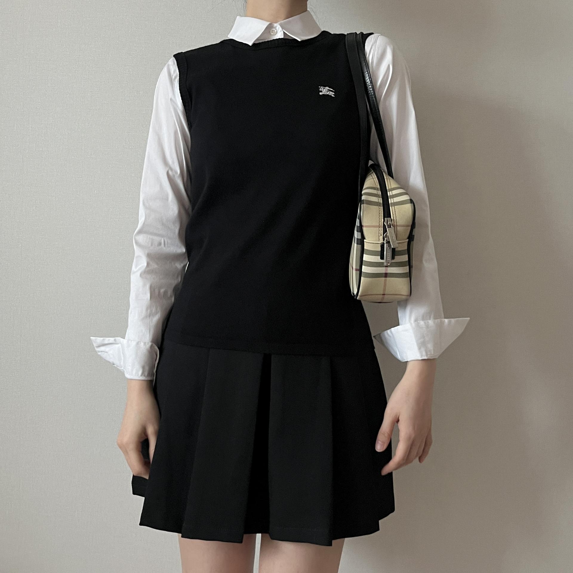 가슴 쪽 버버리 자수포인트가 화이트색상으로 되어 있어 블랙컬러와 대비되어 더욱 깔끔하면서도 매력적이라 손이 자주 갈 것 같은 제품입니다.