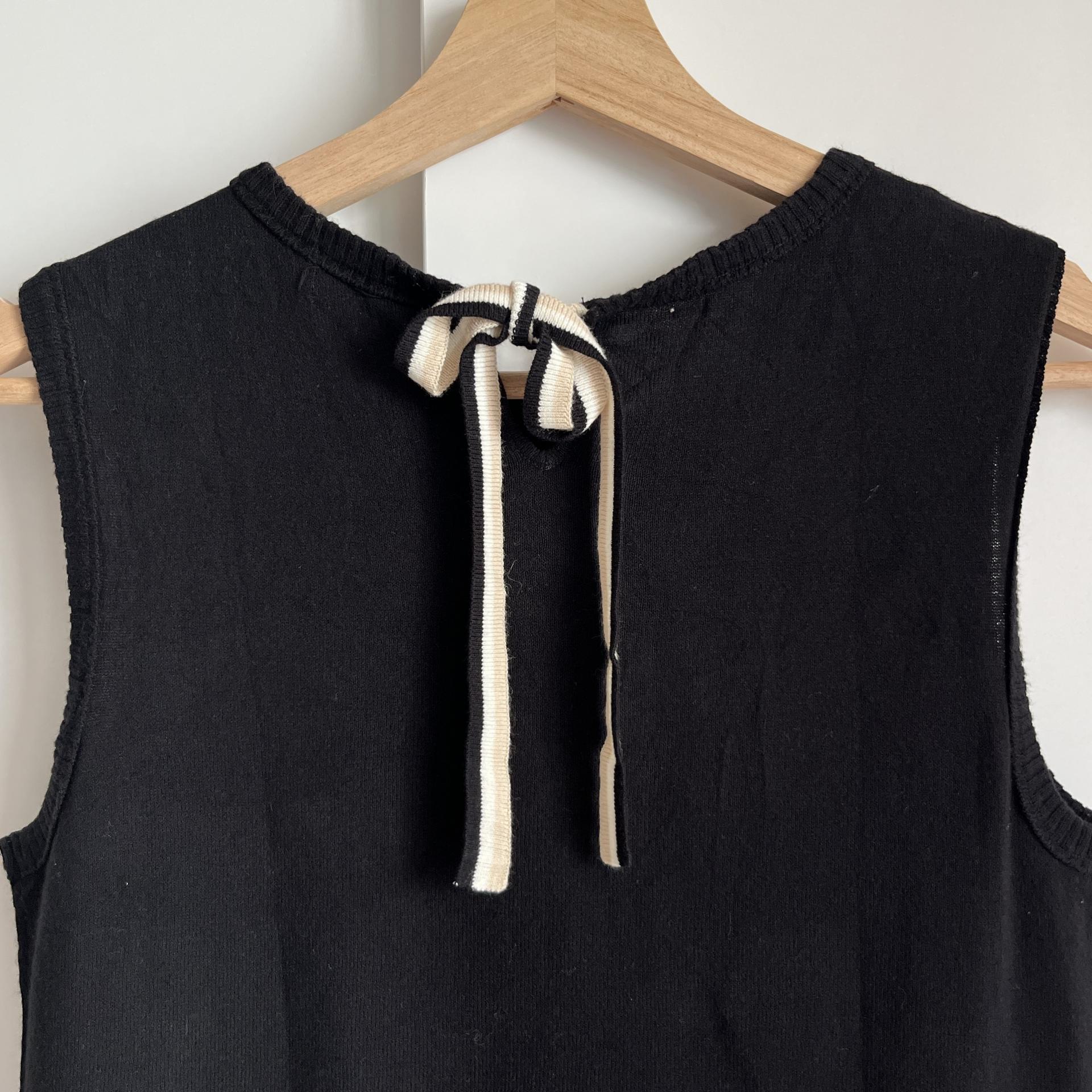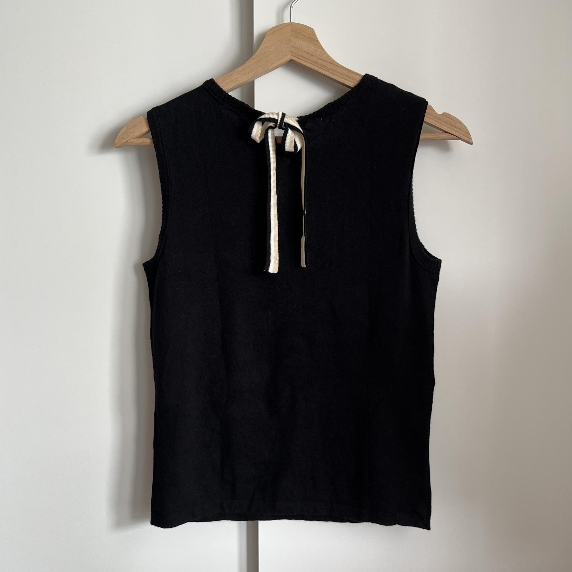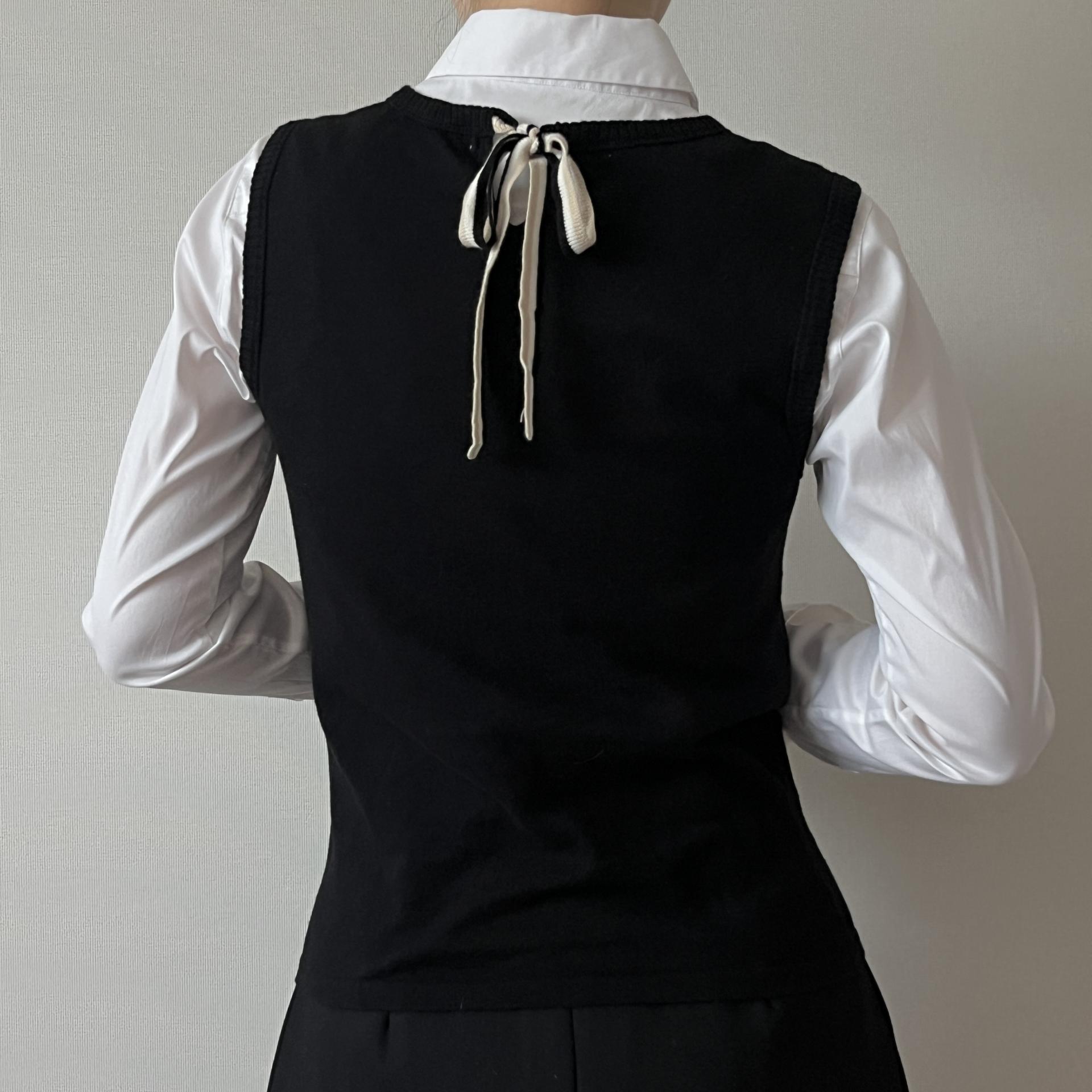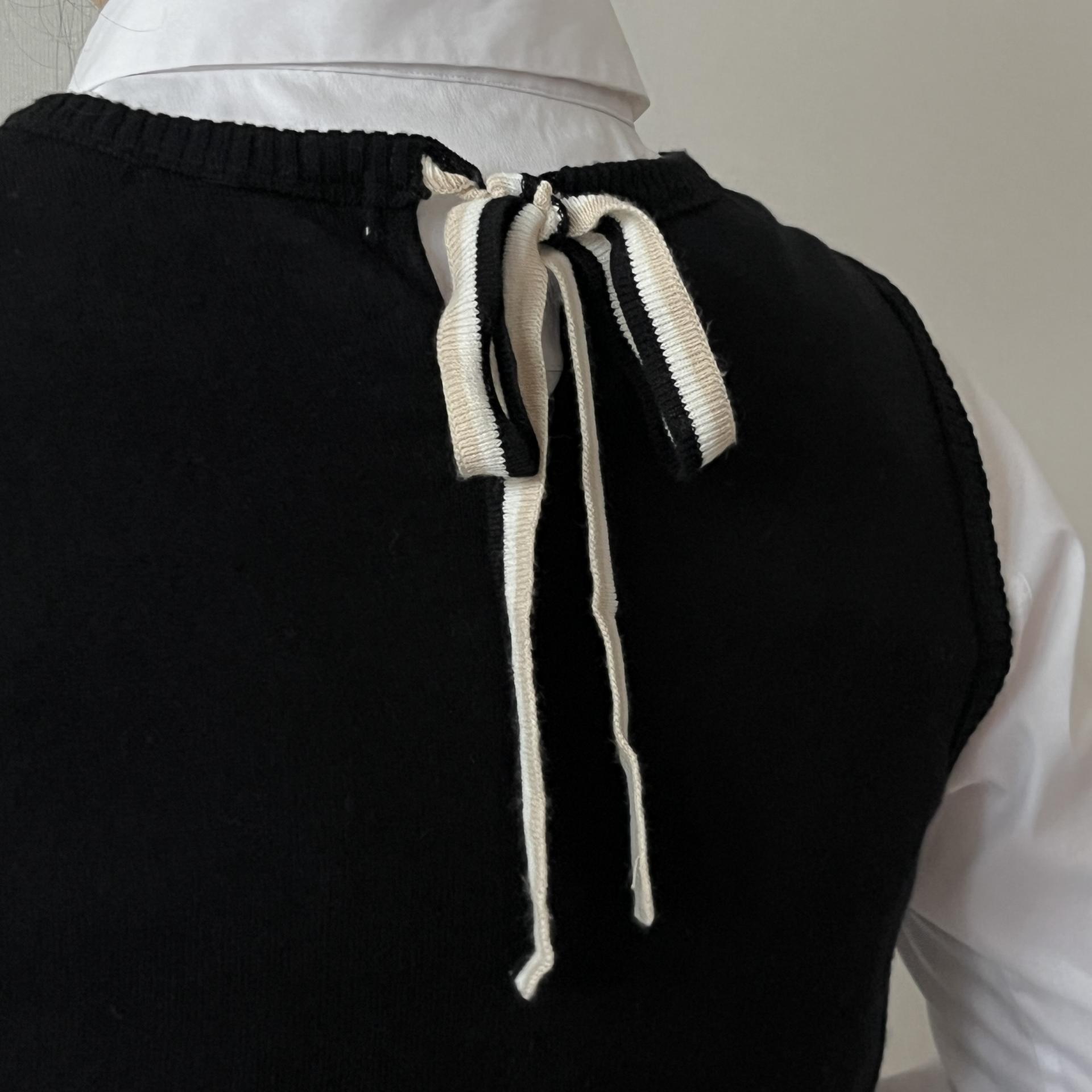 클래식한 디자인에 넥라인 뒷부분에 끈으로 묶어 포인트를 주는 빈티지한 매력까지 가져다주는 니트 탑 상품입니다.