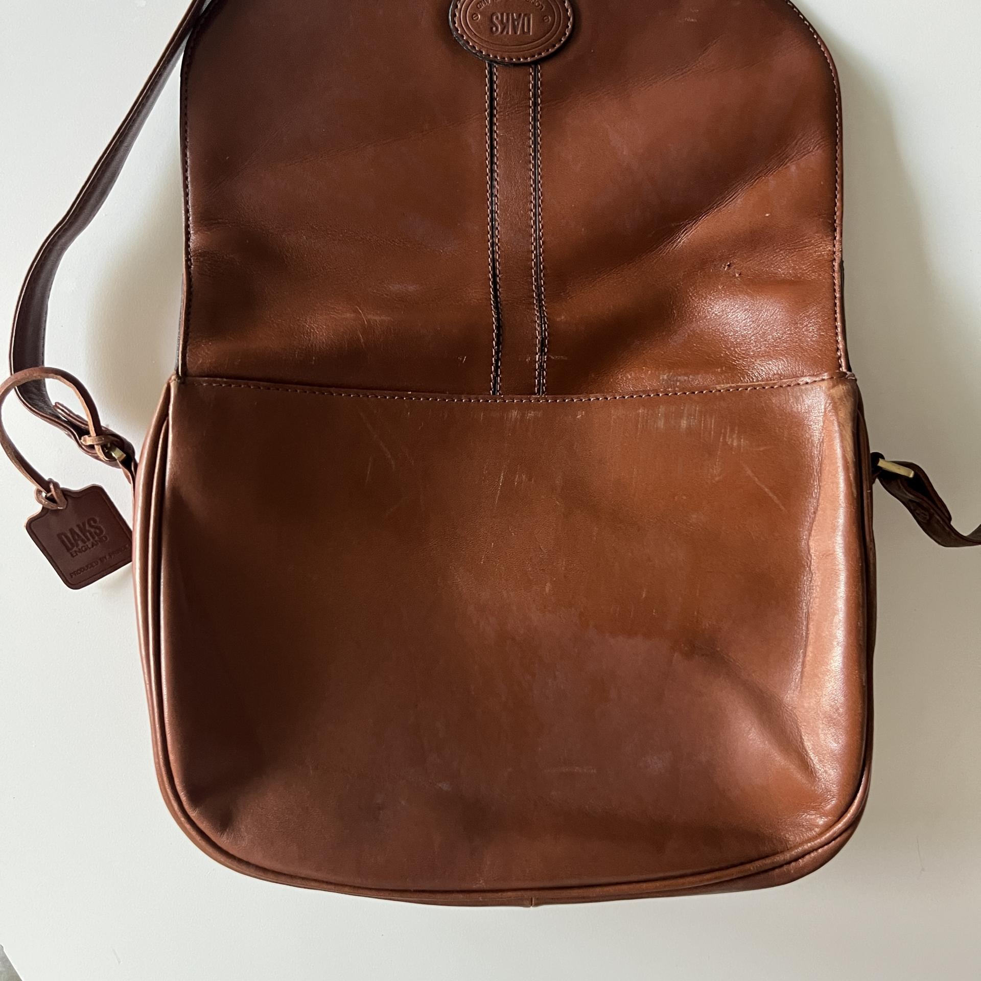 클래식한 무드와 색감이 매력적인 90년대 닥스 레더 메신저백 제품입니다.