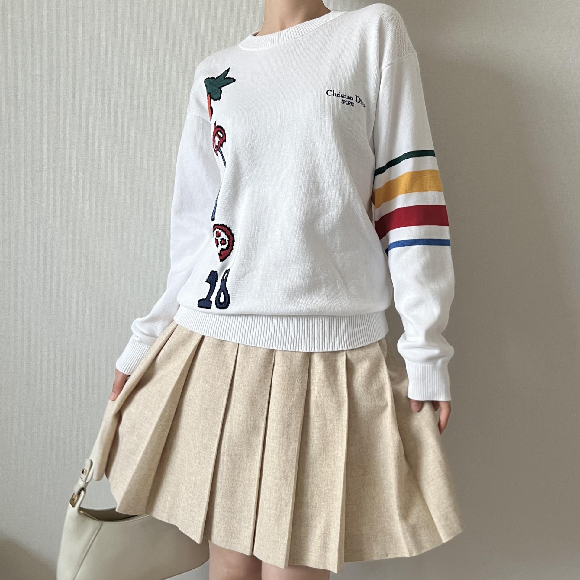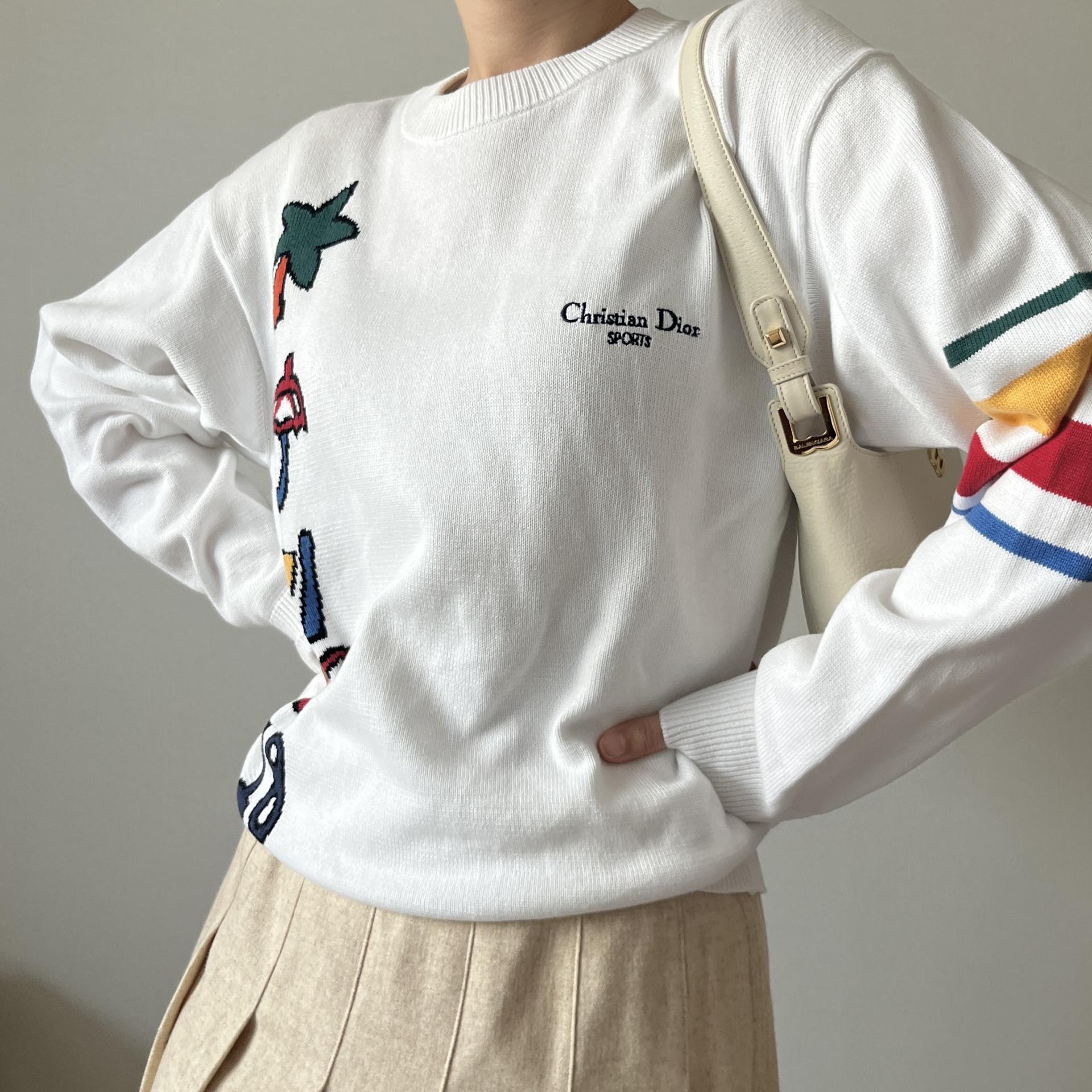 전체적으로 화이트 컬러의 라운드 넥 디자인이며, 가슴 쪽 크리스찬 디올의 로고자수까지 포인트로 있어 더욱 희귀한 제품!