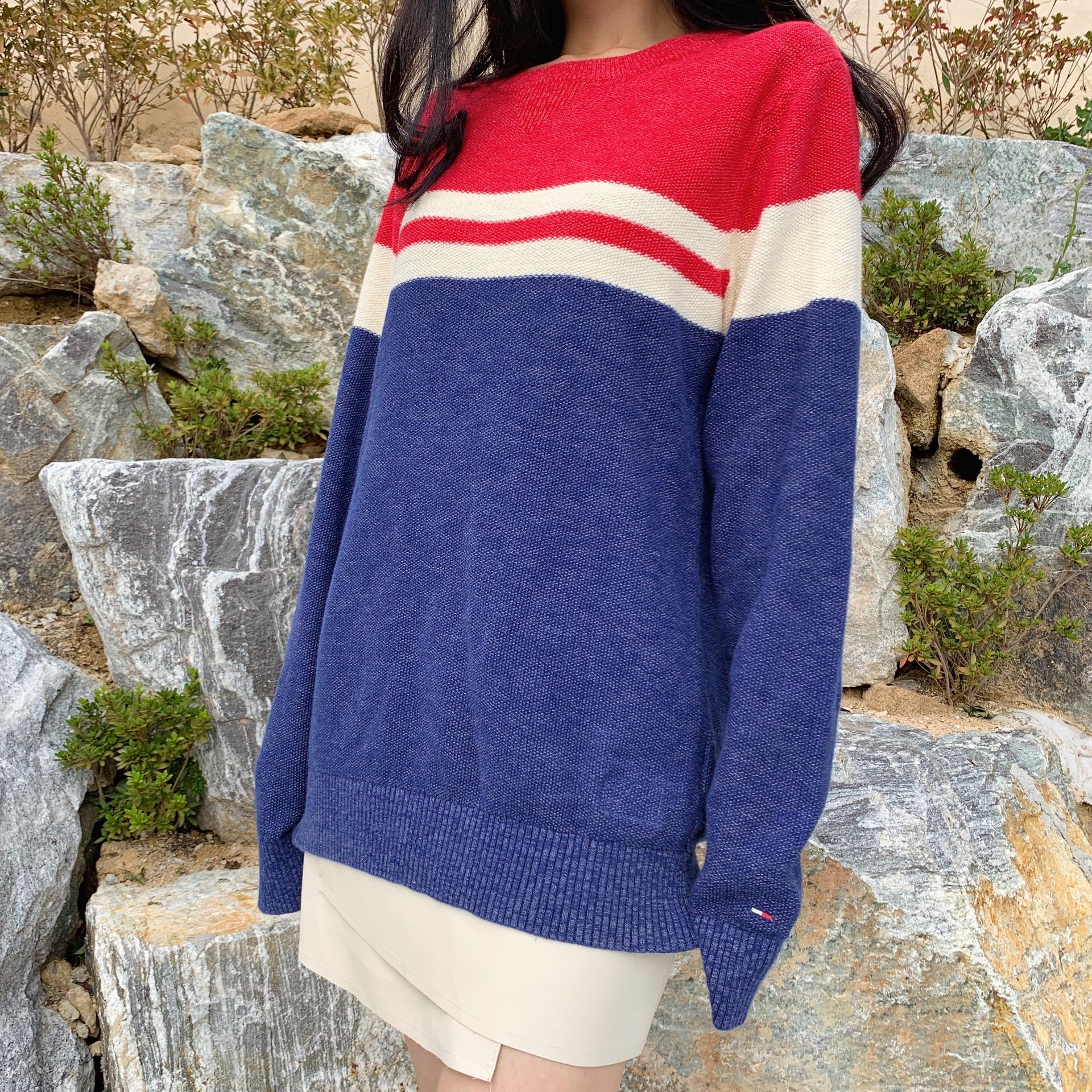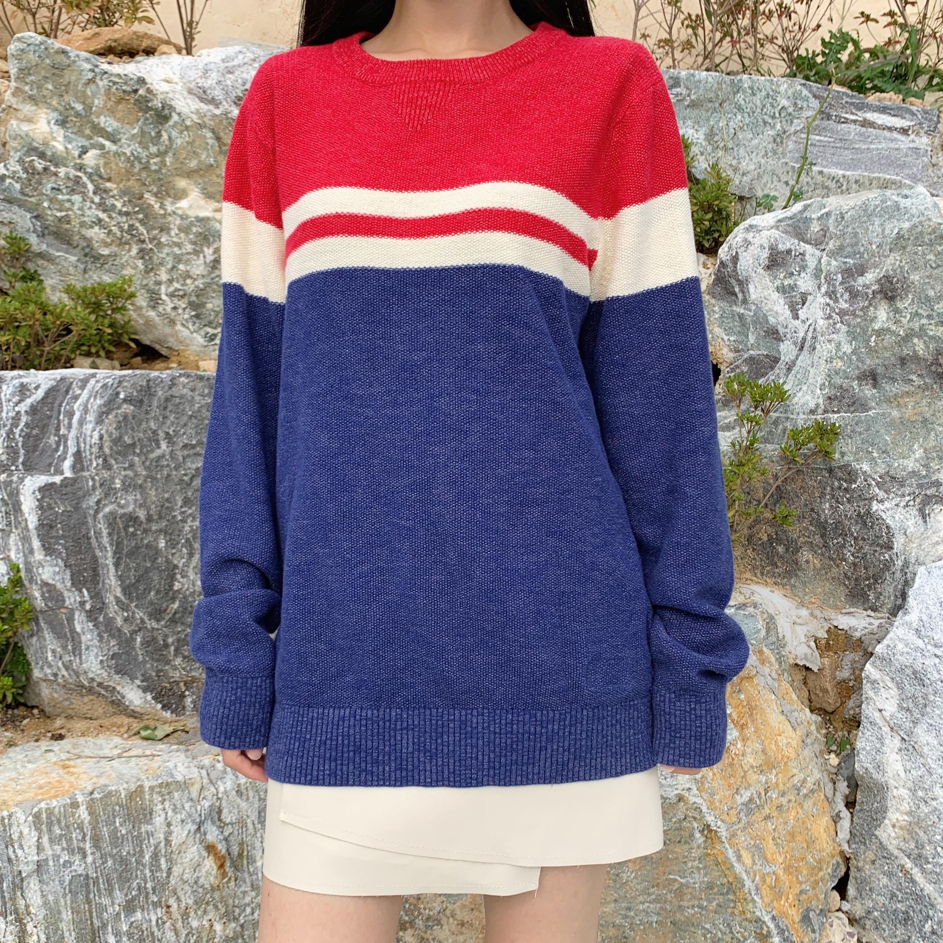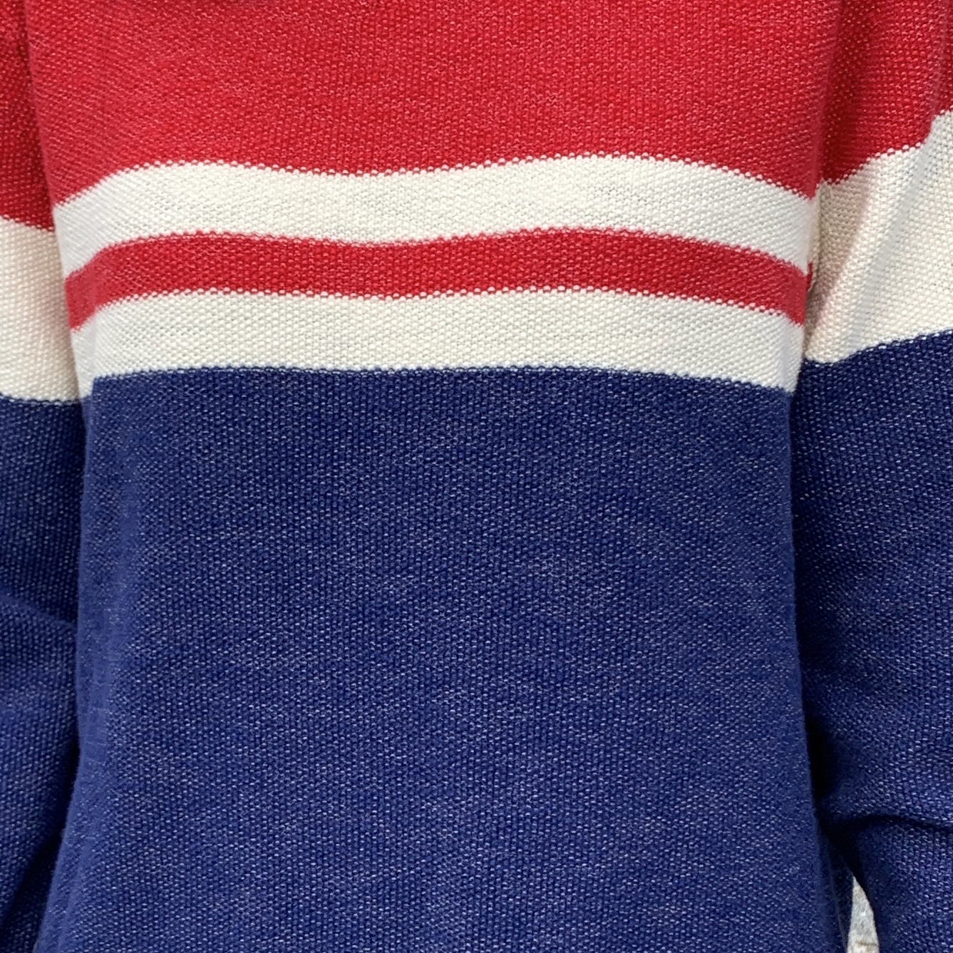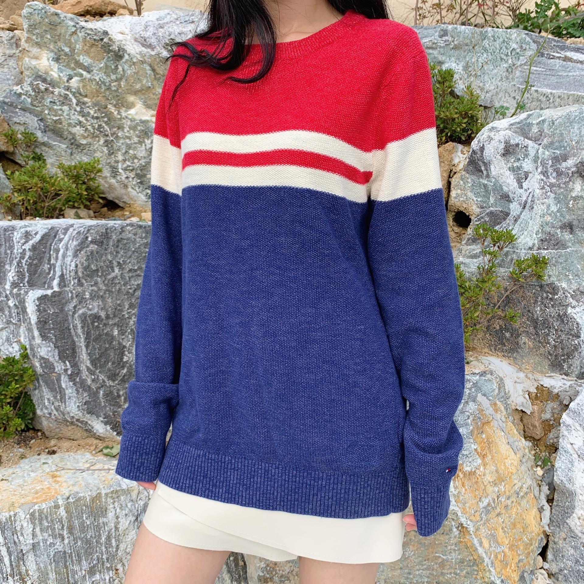 예쁜 크레용 색감이 느껴지는 단가라 패턴 코튼 니트 제품입니다.