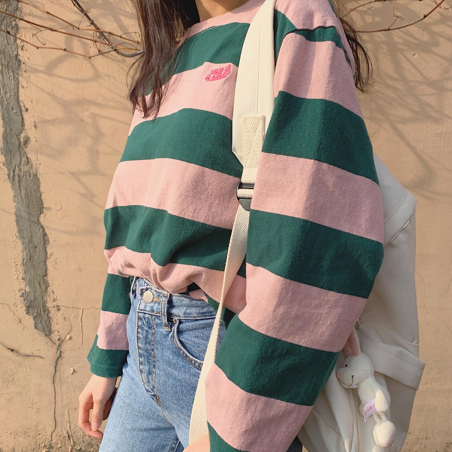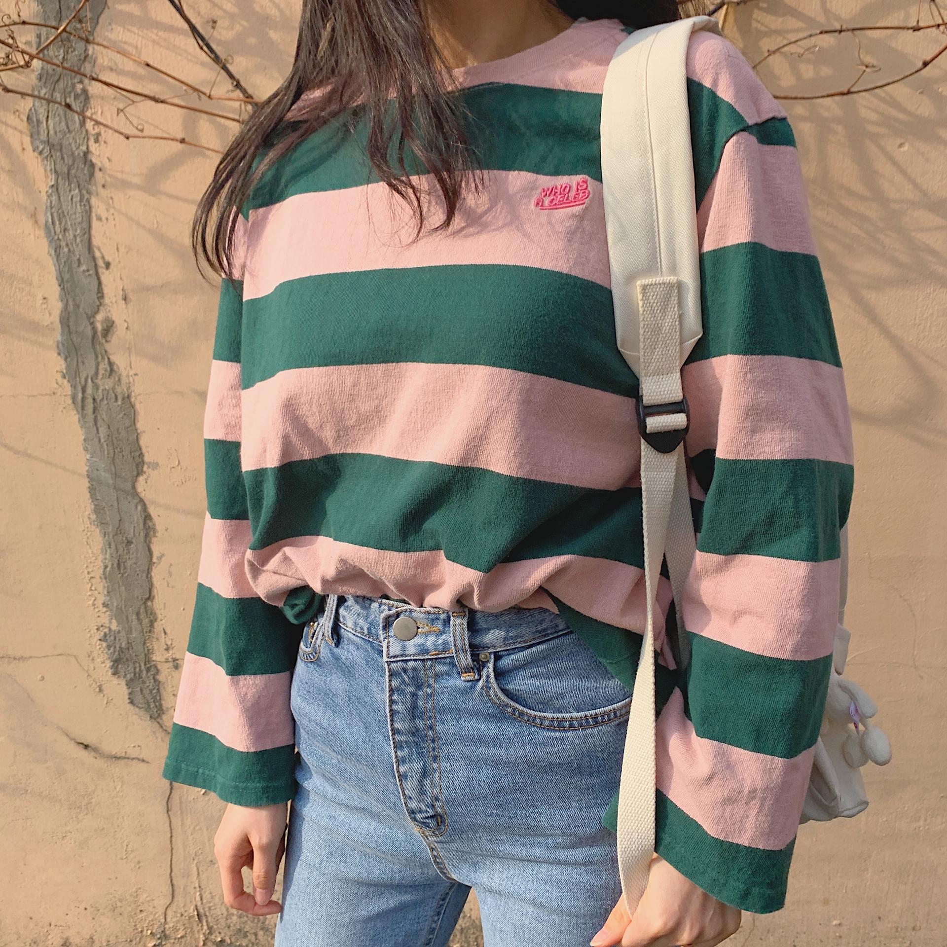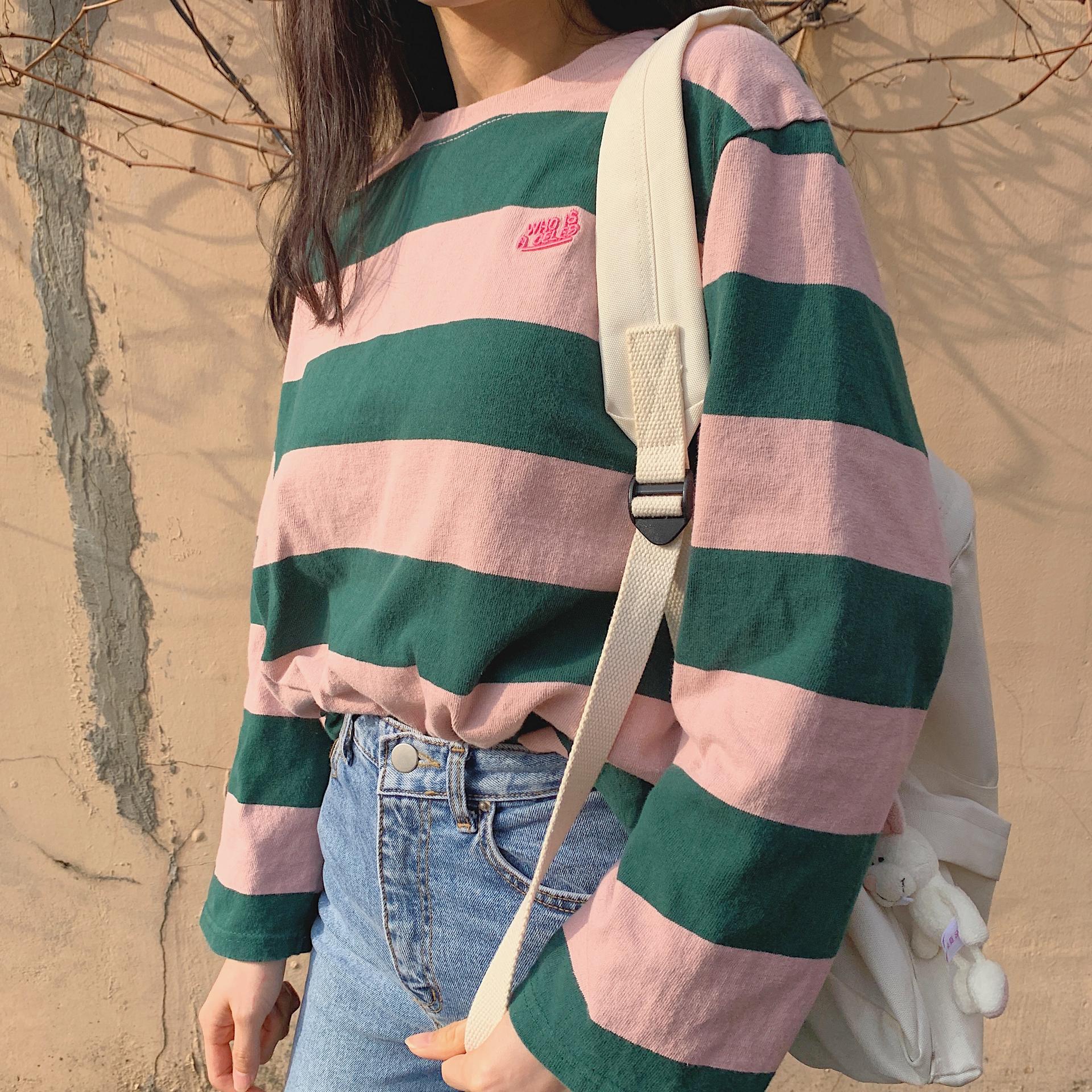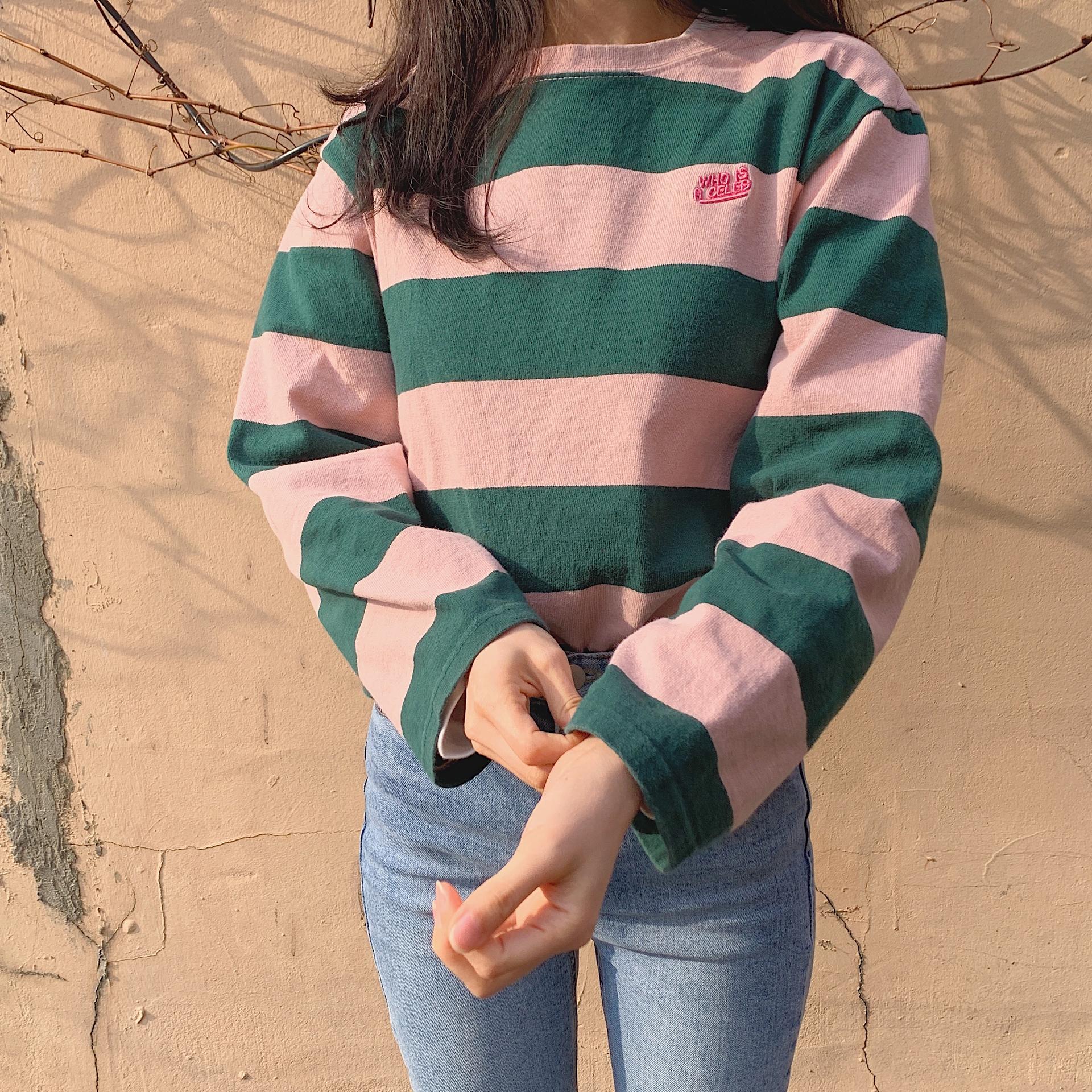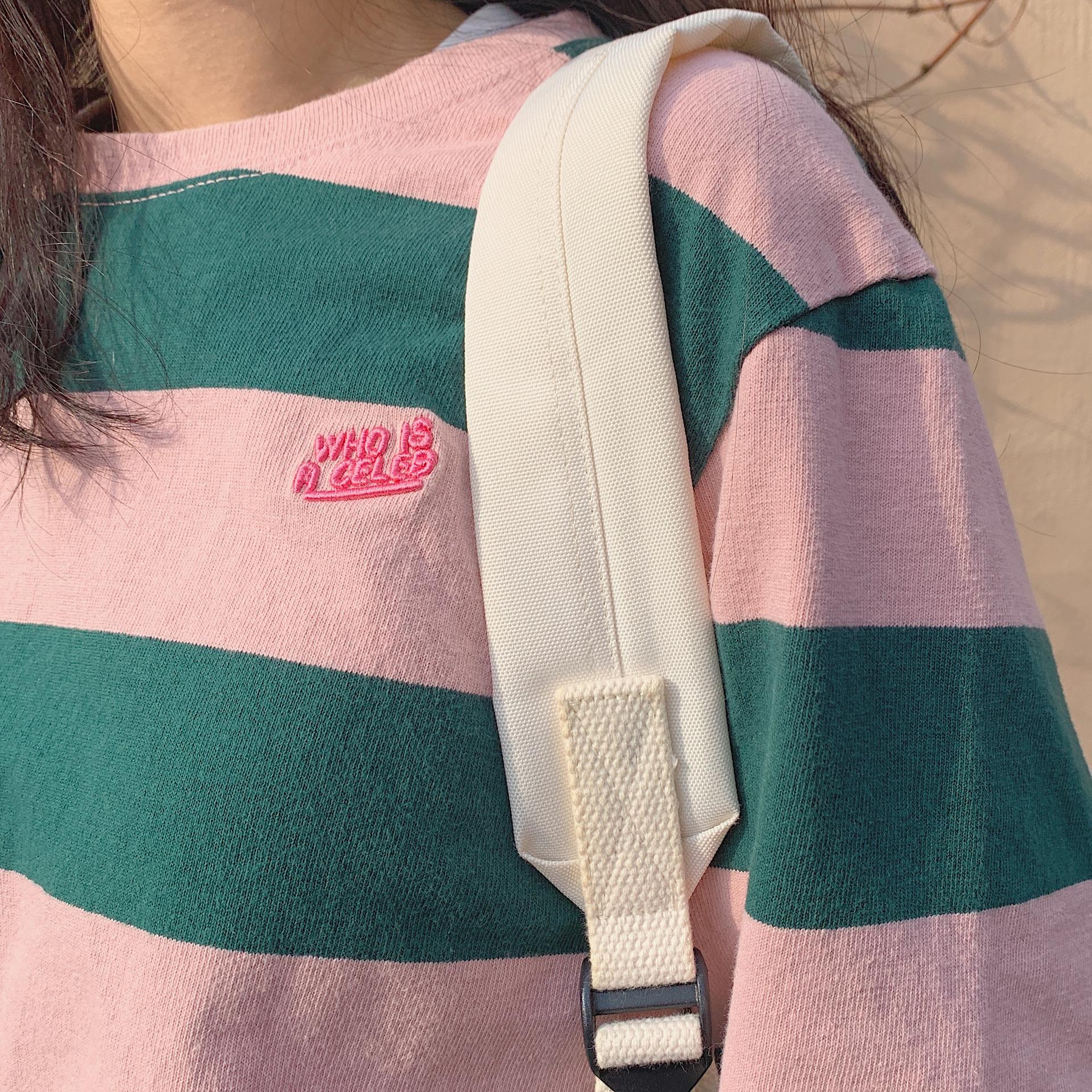 상큼 발랄한 색감과 분위기의 단가라 패턴과 가슴에 자수로 새겨진 레터링 포인트가 포인트!!