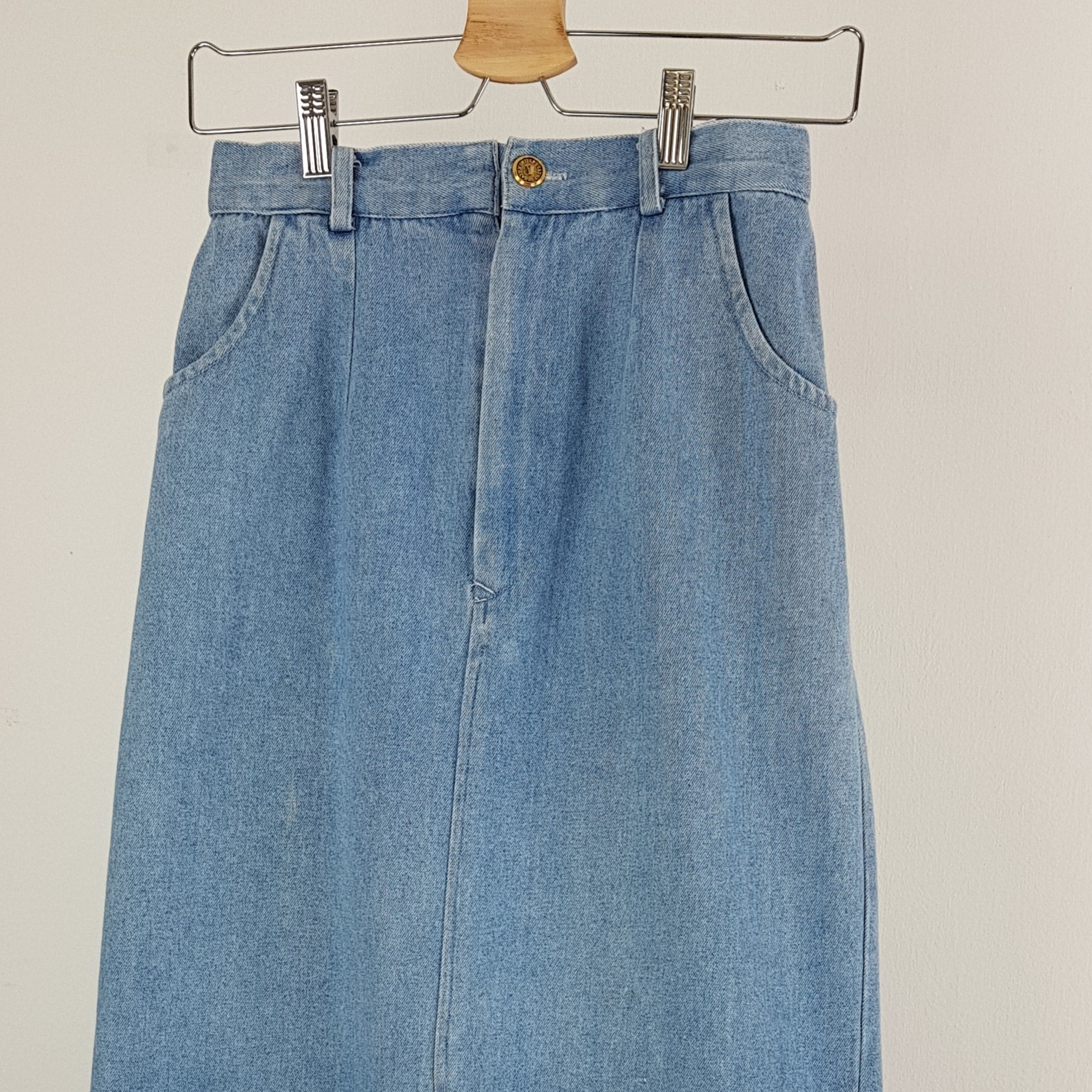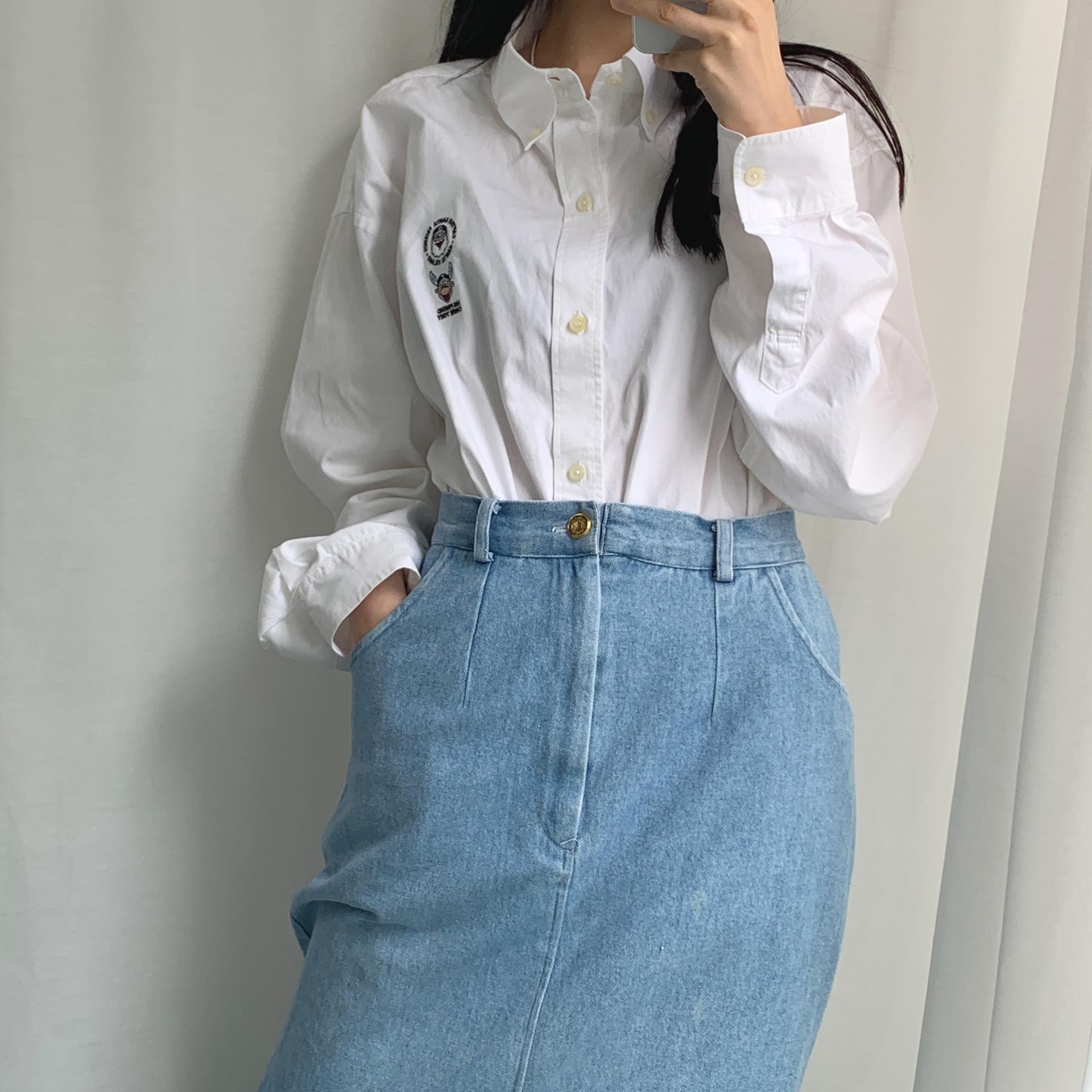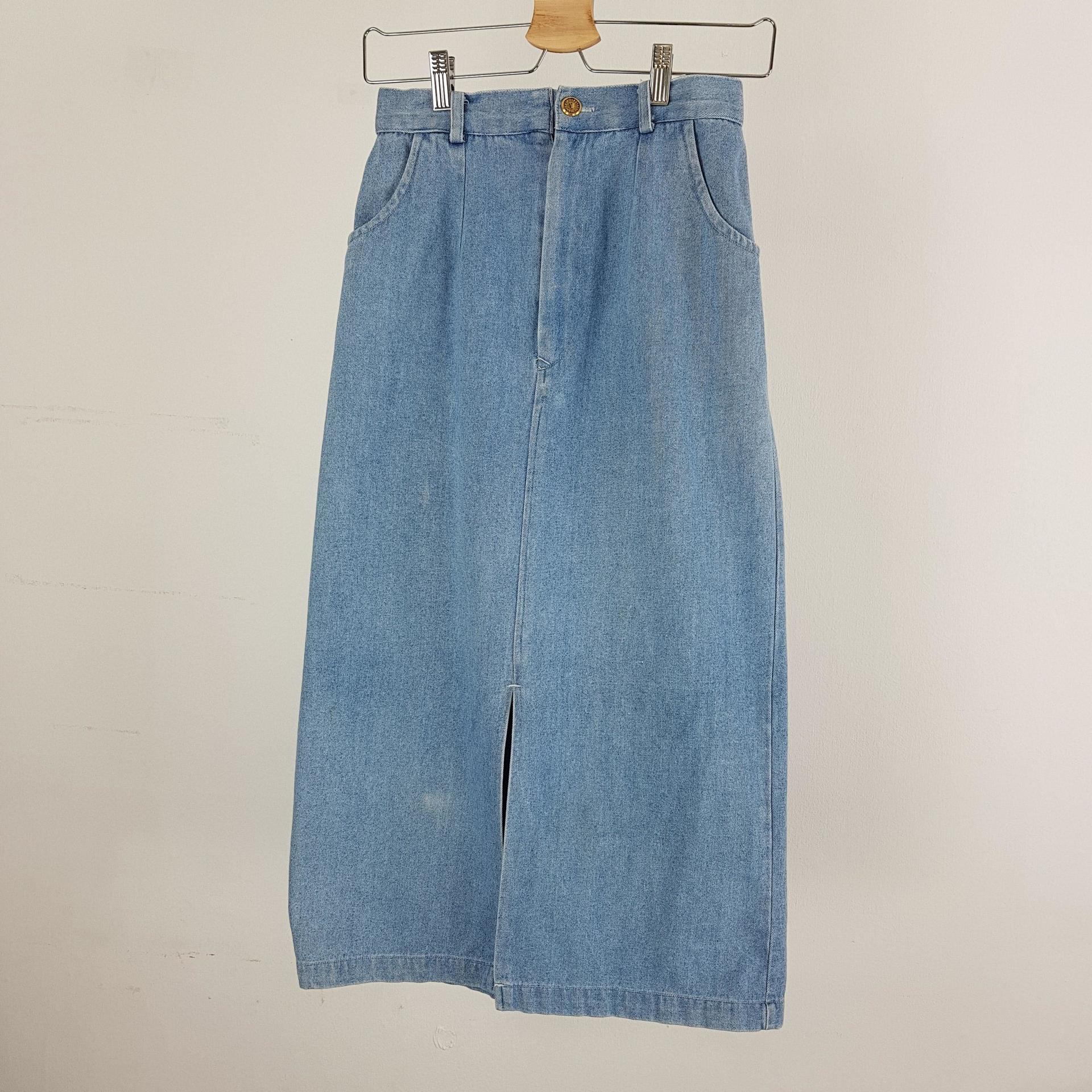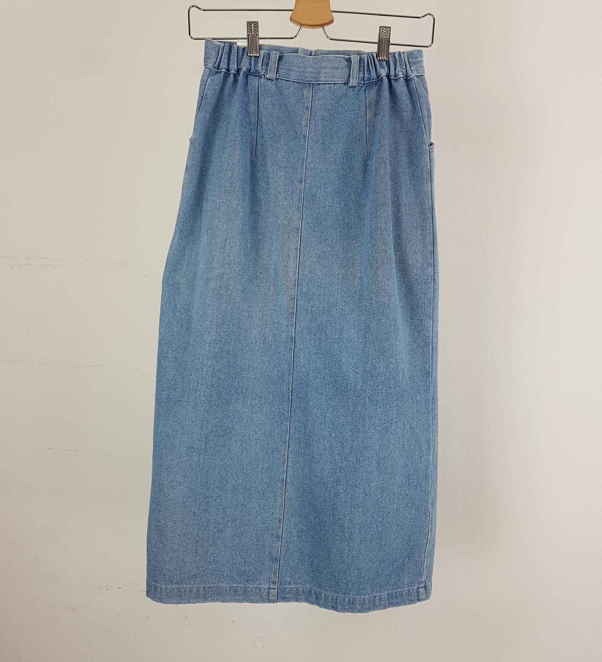 편안한 착용감과 빈티지한 연청 데님 컬러를 자랑하는 스커트 아이템