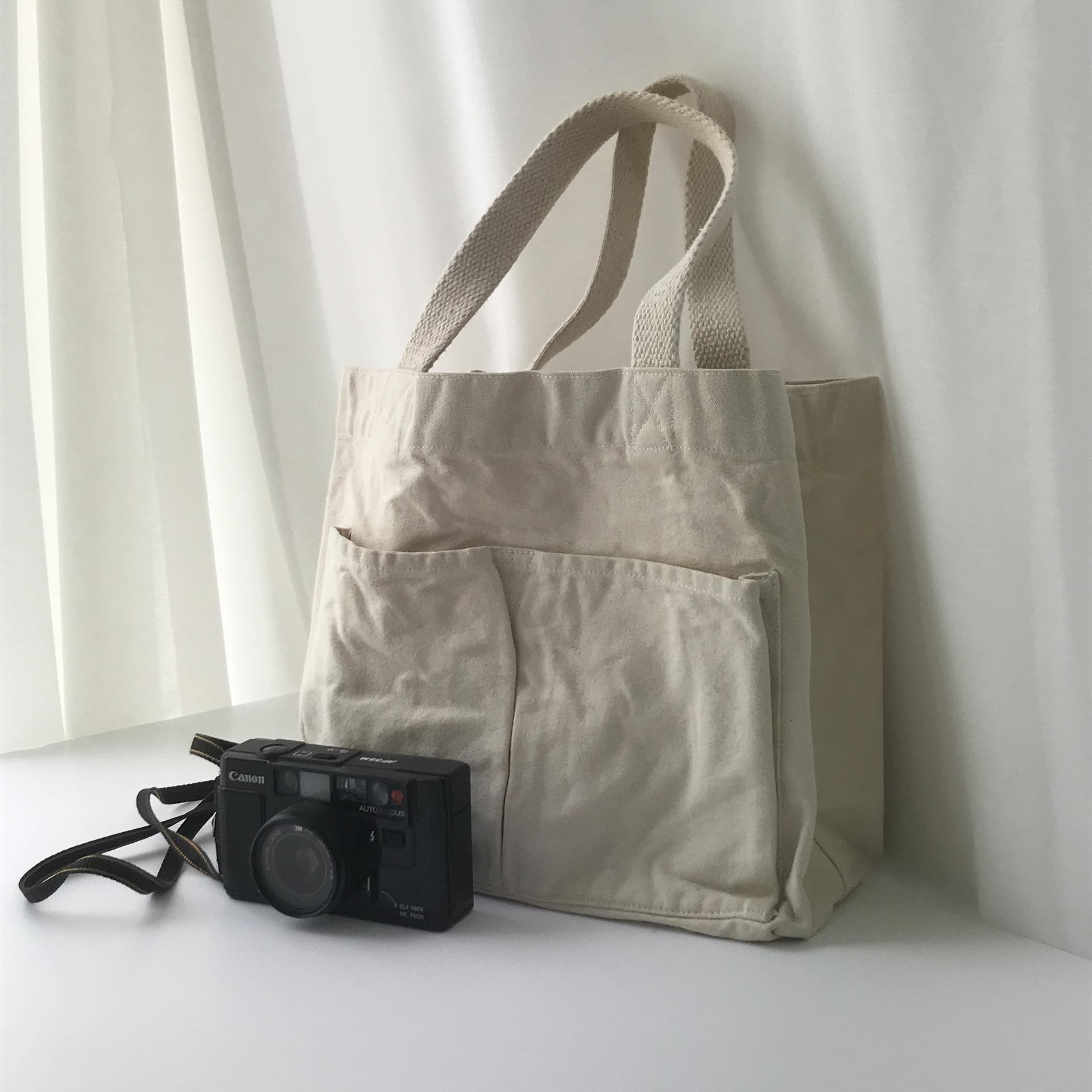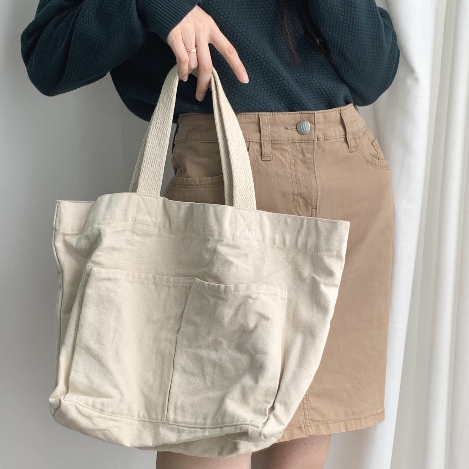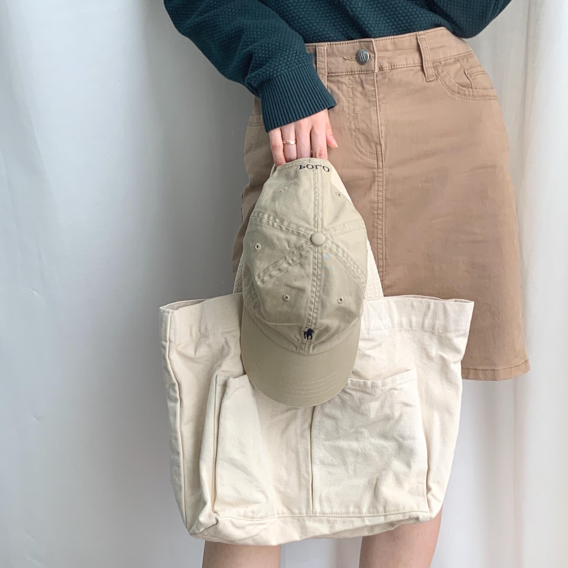 플랫 한 색감과 탄탄한 면 소재를 갖춘 피크닉 백 :)