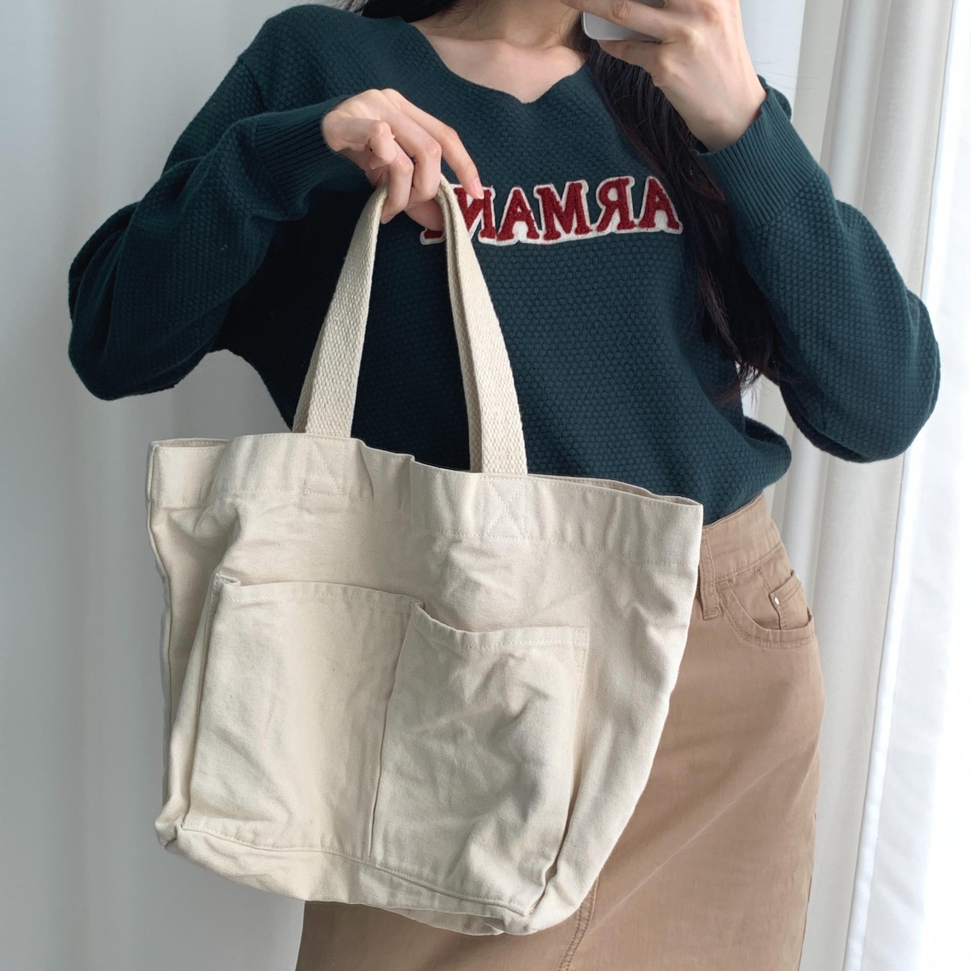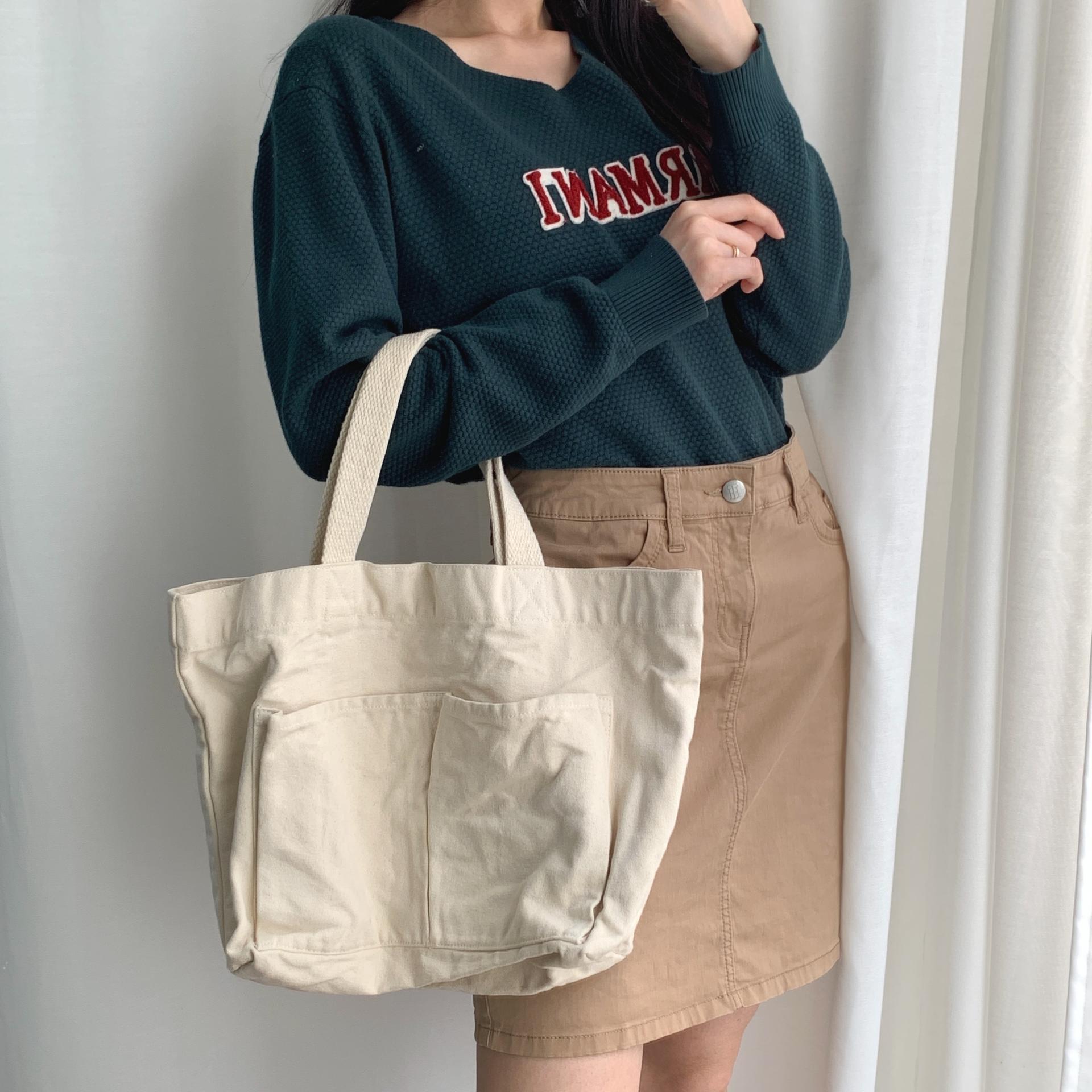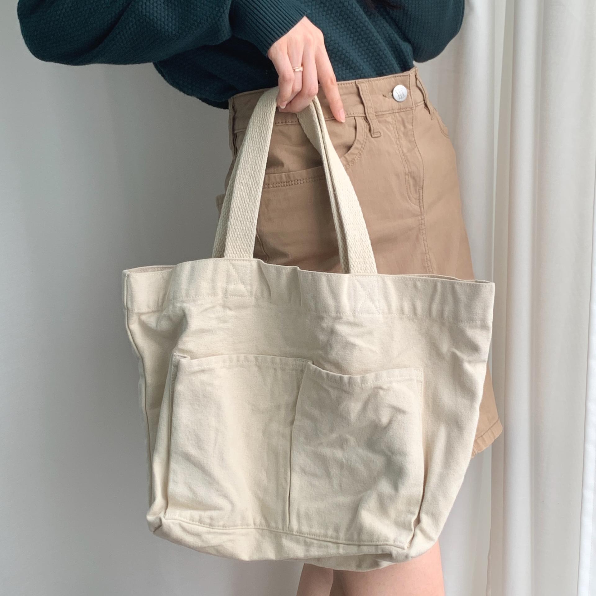 플랫 한 색감과 탄탄한 면 소재를 갖춘 피크닉 백 :)