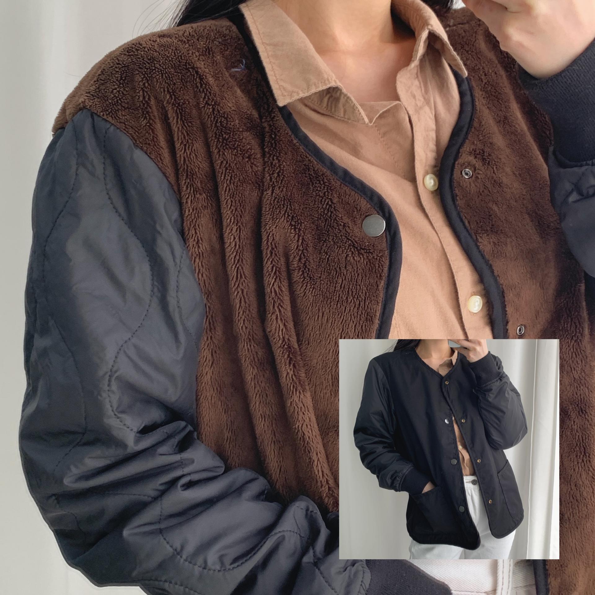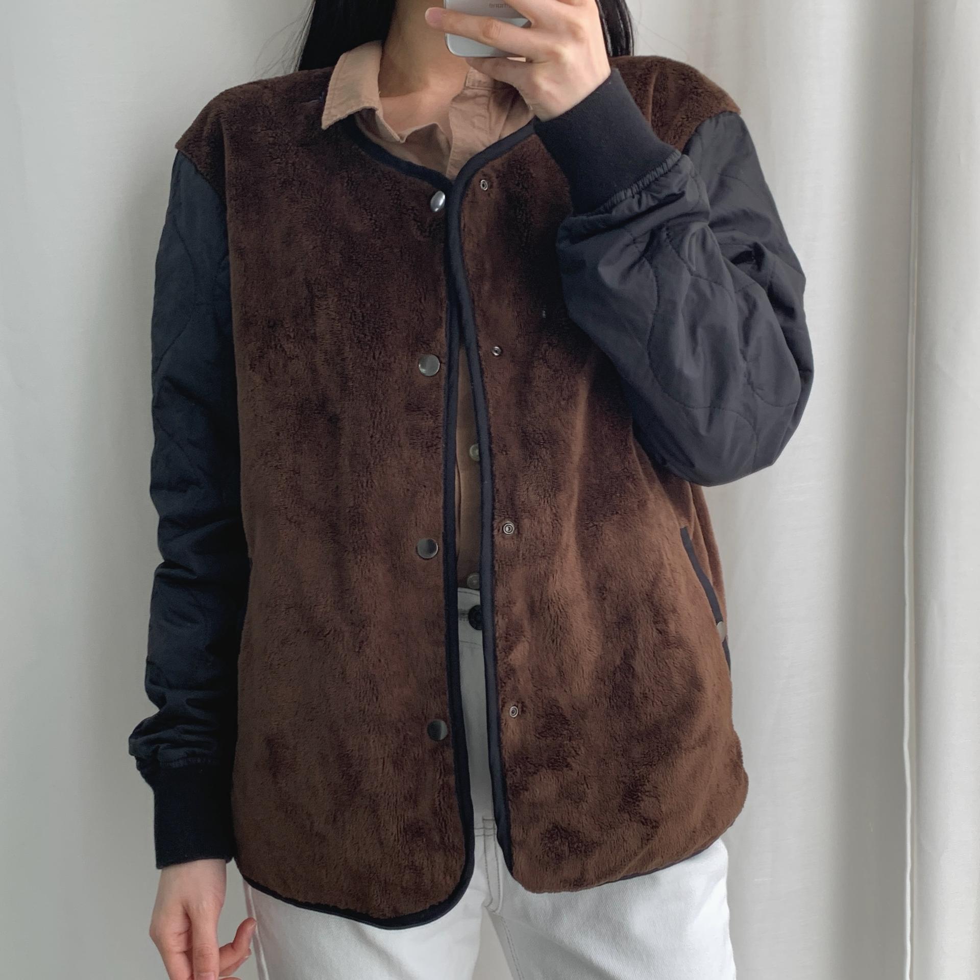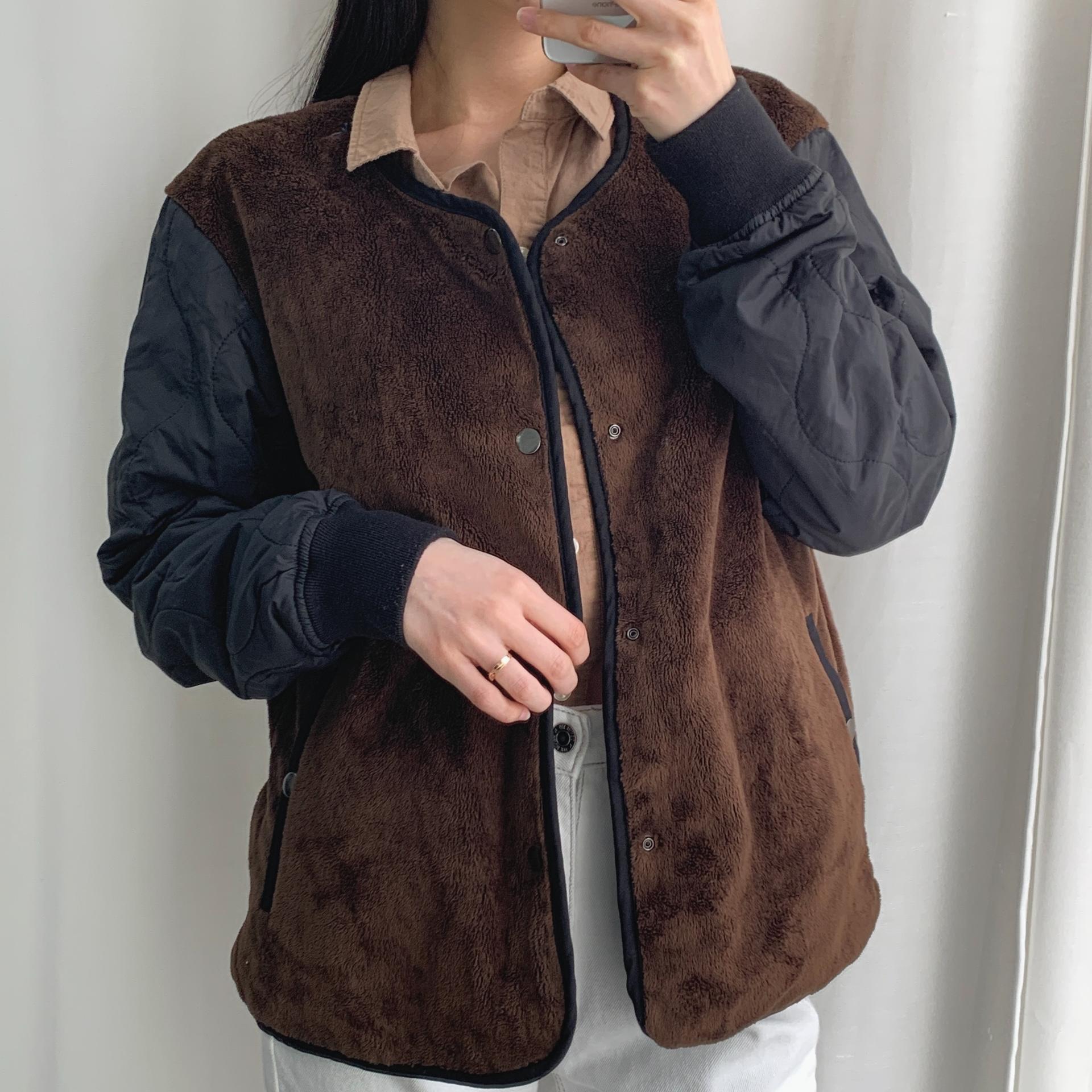 팔 부분은 퀄팅 마감이 되어 있으며, 부드럽고 따듯한 보아털이 겉면으로 드러납니다.
